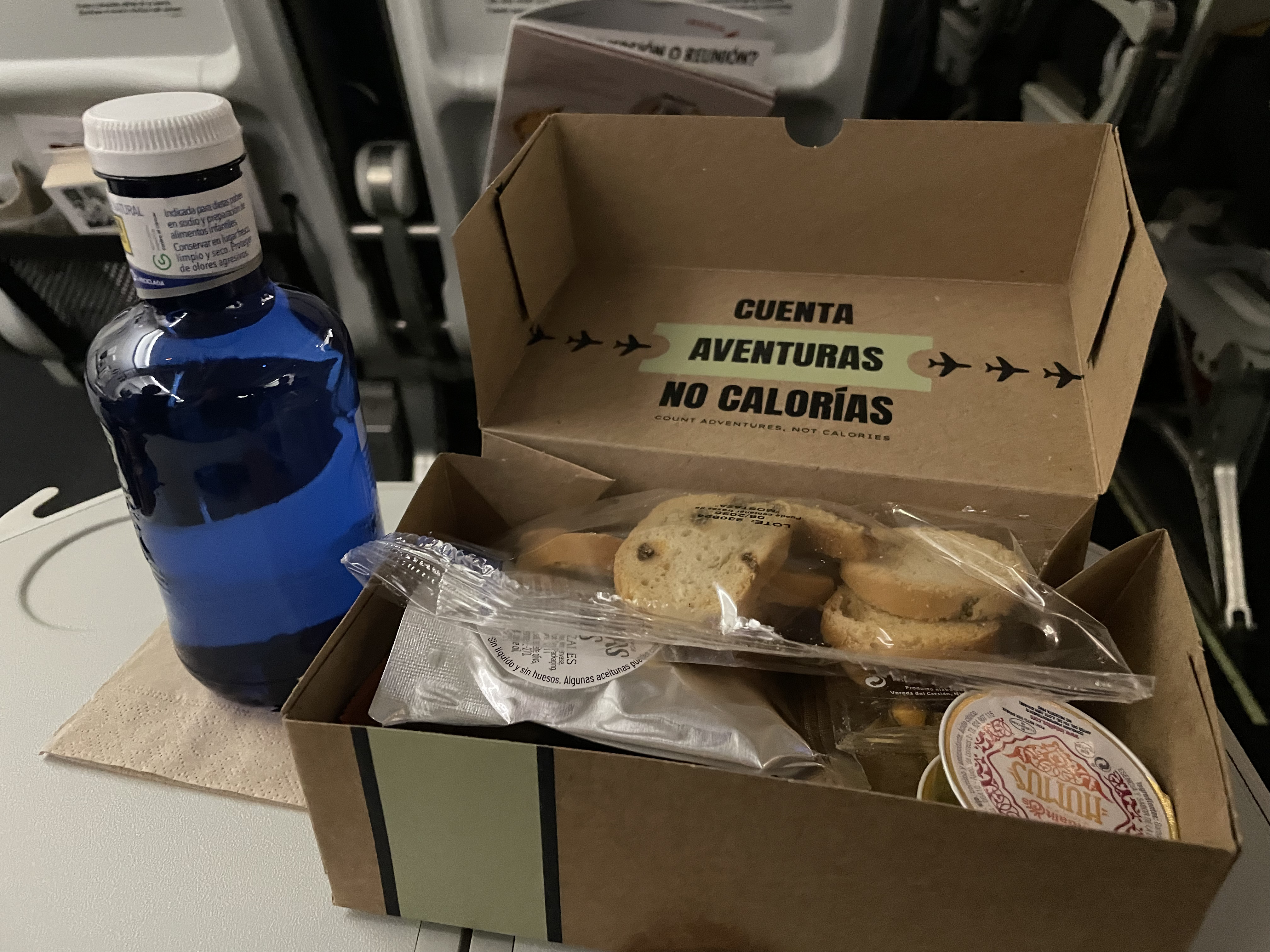 We were on a Finnair flight from Helsinki, flown by wet-leased Iberia planes. The setup was a refreshing change to Finnair's menu. I loved the wisdom, and my Mediterranean snack :-)