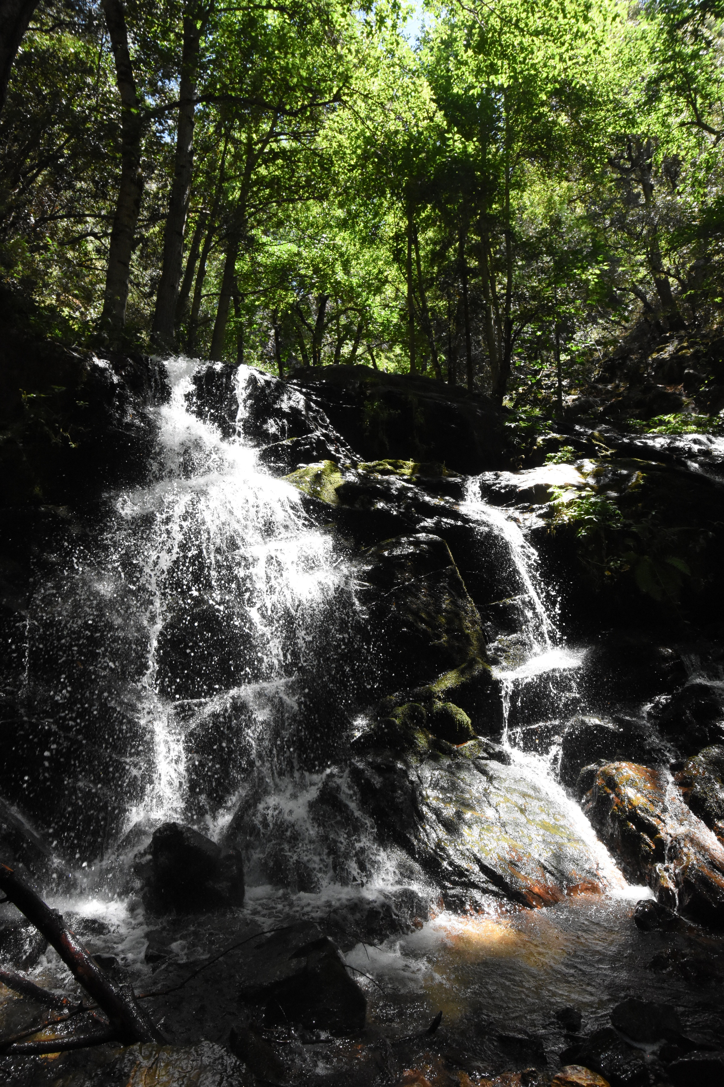 The hike down to the bottom of the ridge to the start of the cave was airy and offered nice views of waterfalls. Coming back you had to hike 100 m up.