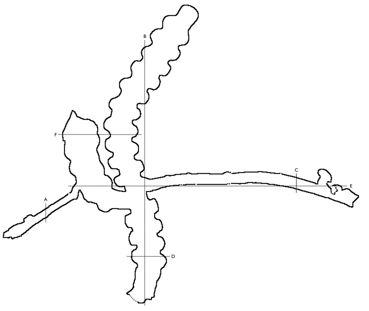 I also took the model and produced a map of the cave using my Cave Outliner software. The high-resolution PDF of the map is here, but a picture of the plan view is shown below:
