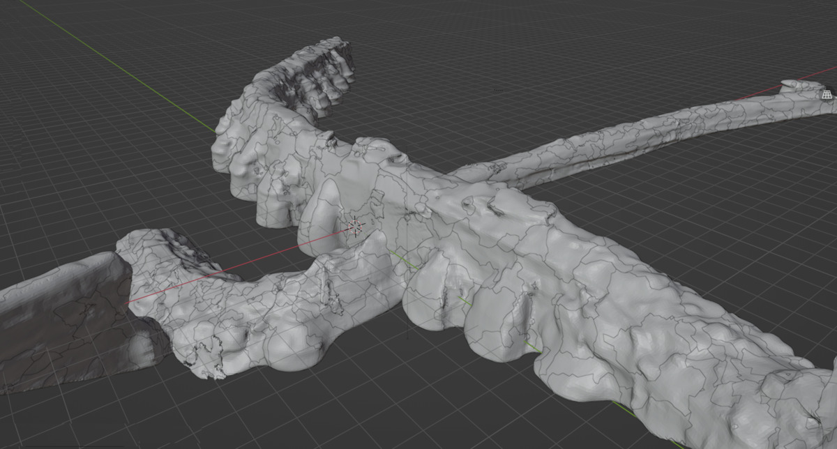 I also scanned the Cueva de Malvecino. The resulting 3D model can be downloaded here in GLB format and here in Blender format, and rotated on your browser screen here (reduced resolution). A screenshot of the full model is below: