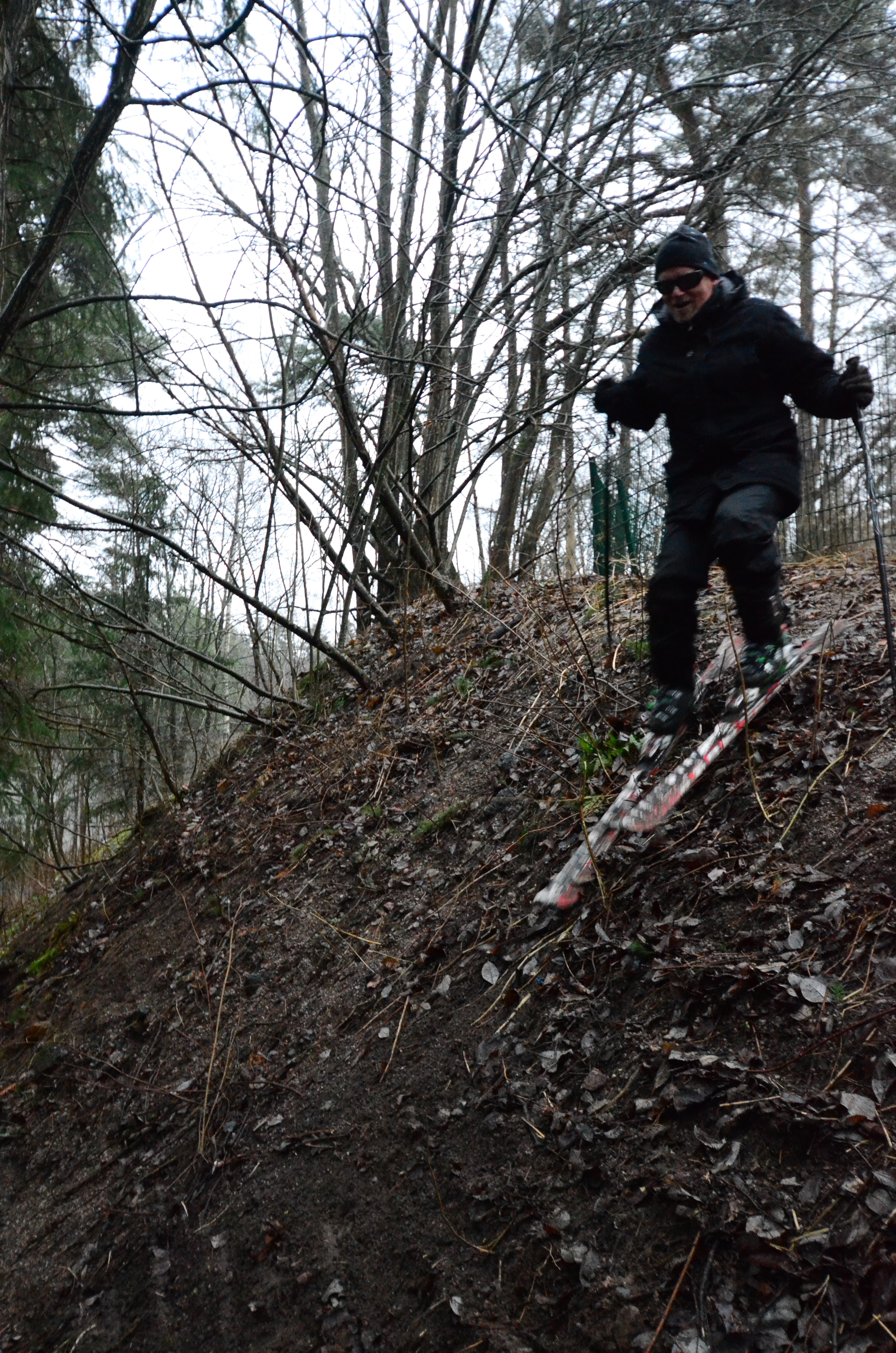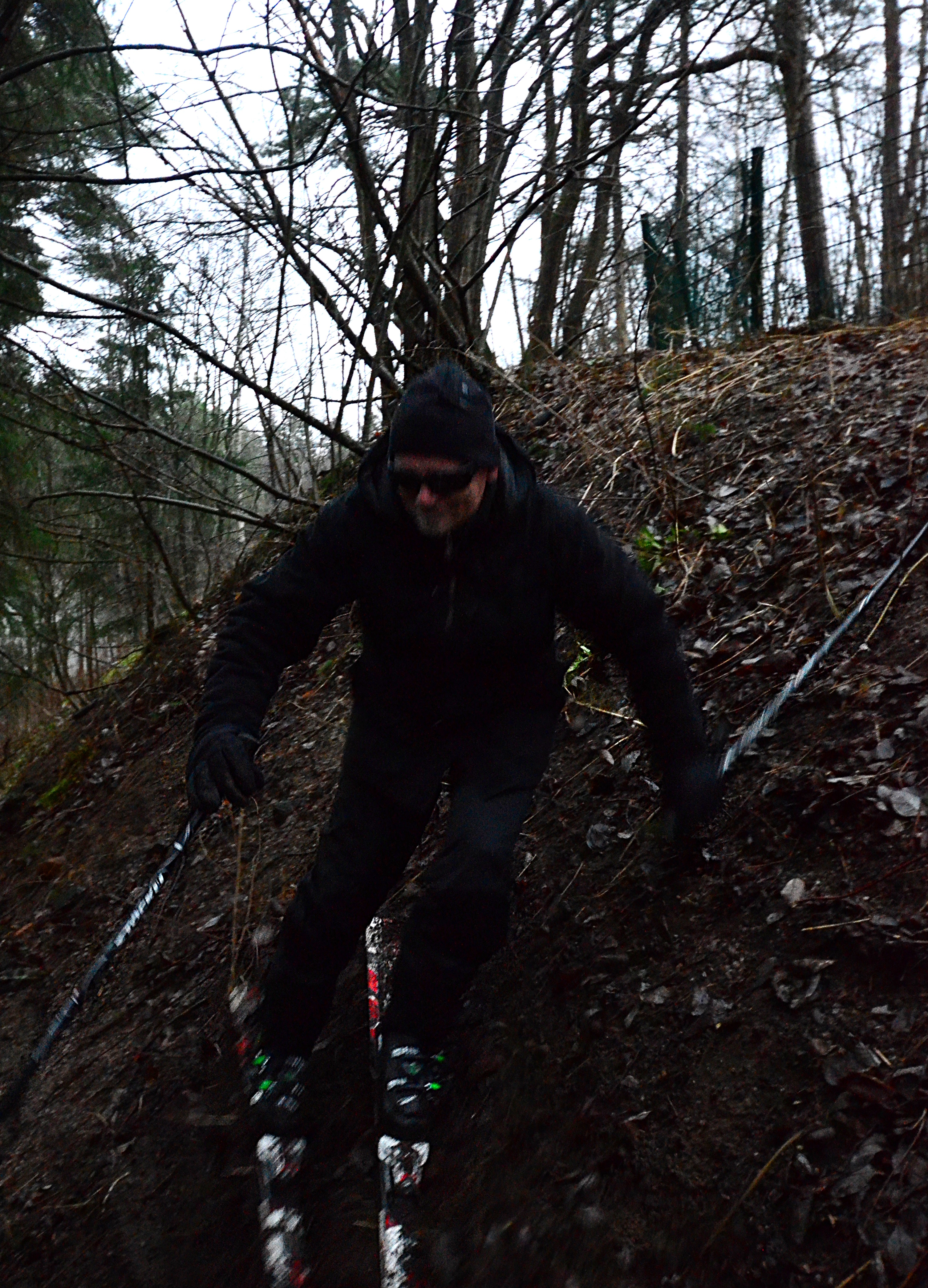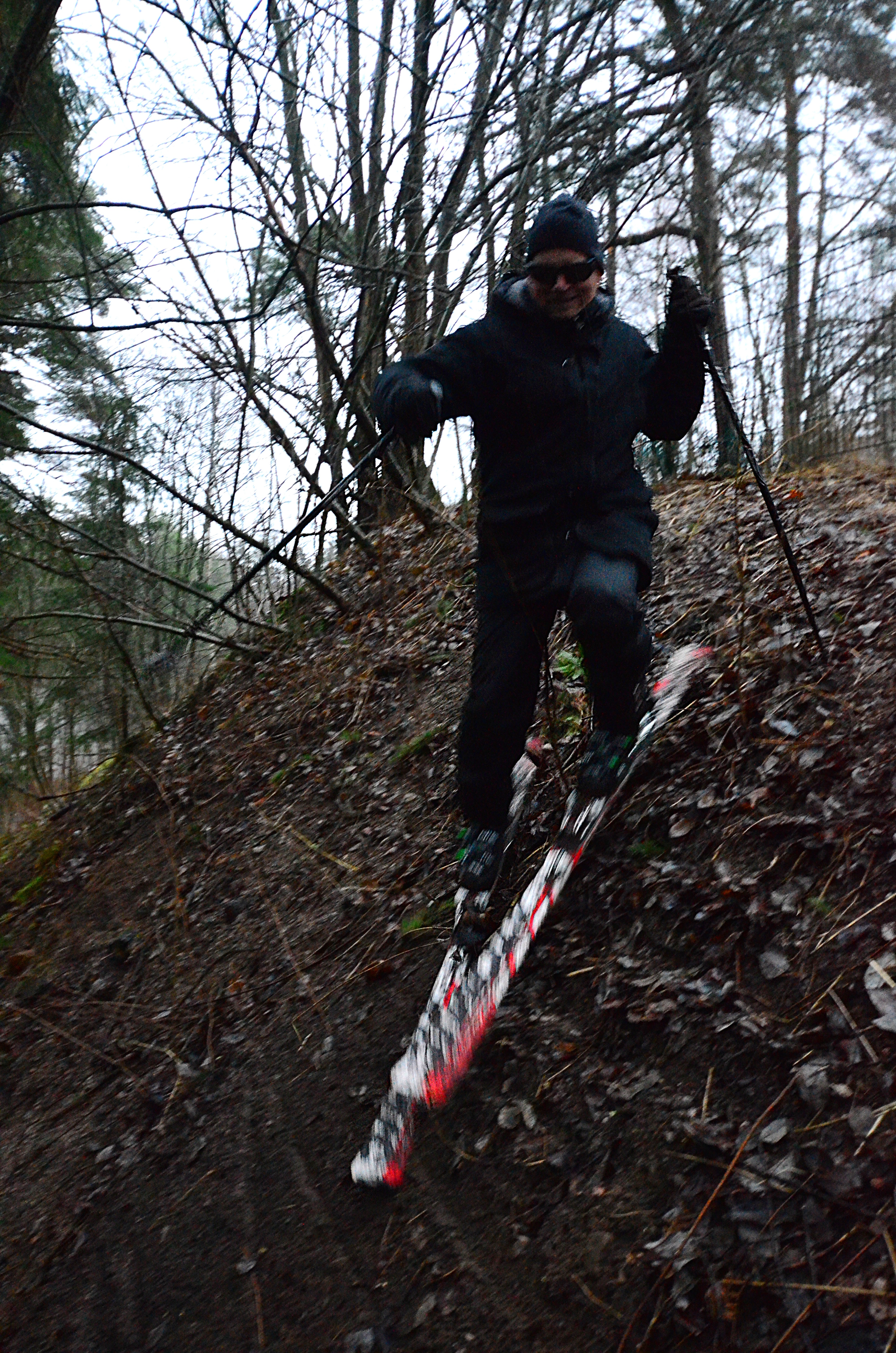 We call this the "musta joulu" or dark Christmas in Finland. No snow. But there is rain, darkness, and depression. No matter, I have found a steep, muddy hill in Kauniainen and I can go ski that. But what I really wonder is how to take good ski photos in this weather. Would rice help?
