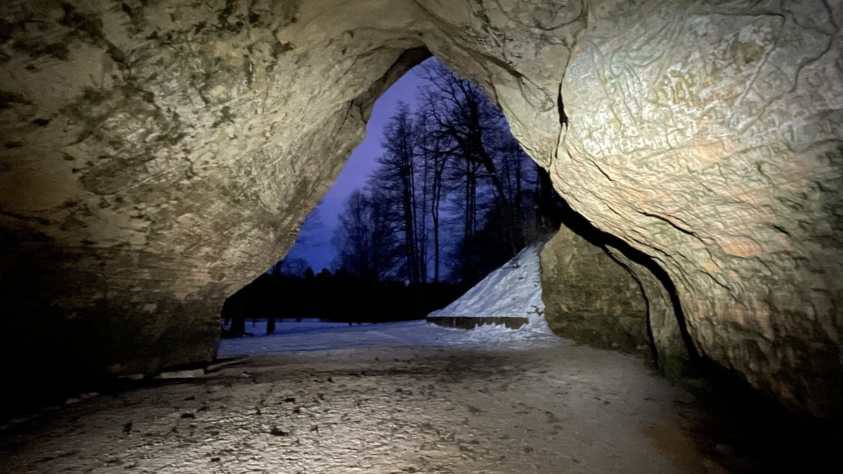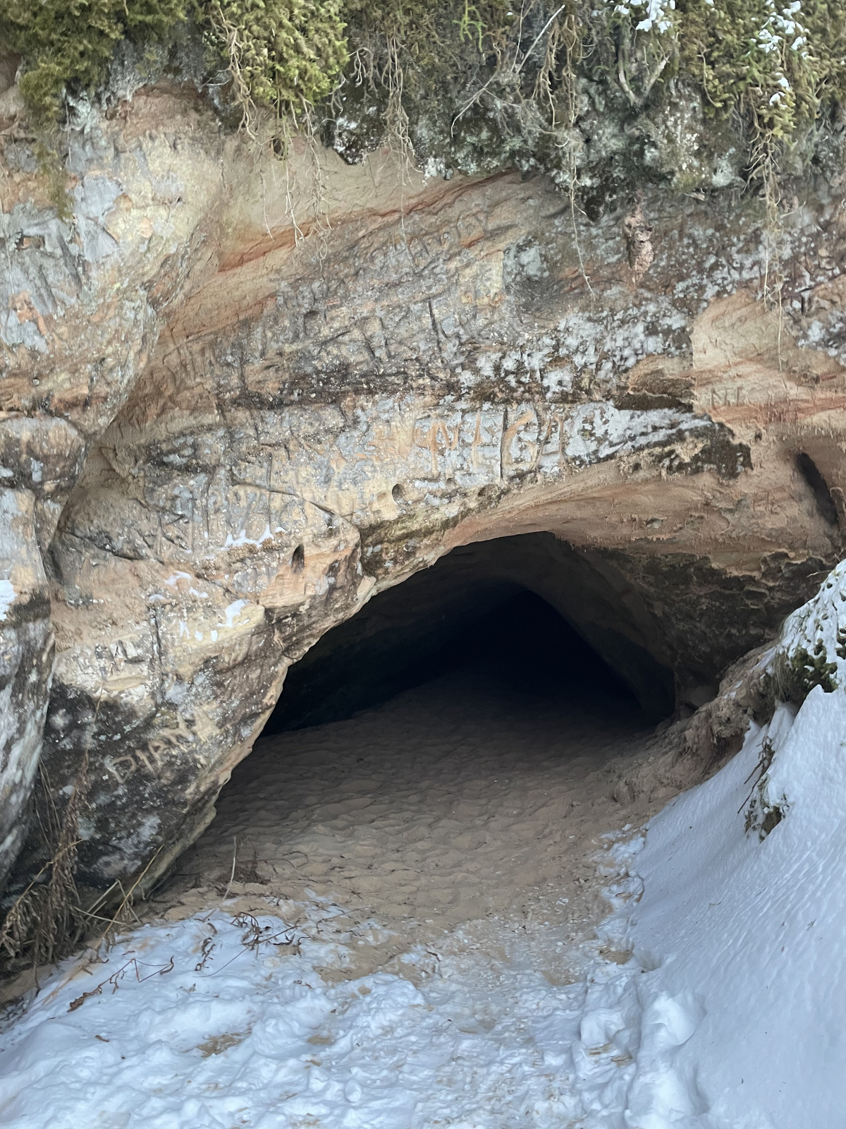 The first cave, Kalēja Ala, is a sandstone cave. It seemed it had formed in a hill with very soft sandstone, and I wasn't sure how it was fully holding up... sand dripping from the roof. However, there was no exploring of this cave as in the winter season the bats need their rest... while there were many footprints to the cave, I stayed at the entrance, just took a photo towards the insides. It would have been a spectacular cave to visit, though, I need to come back in the summer! This cave also had a short side cave higher up on the hill.