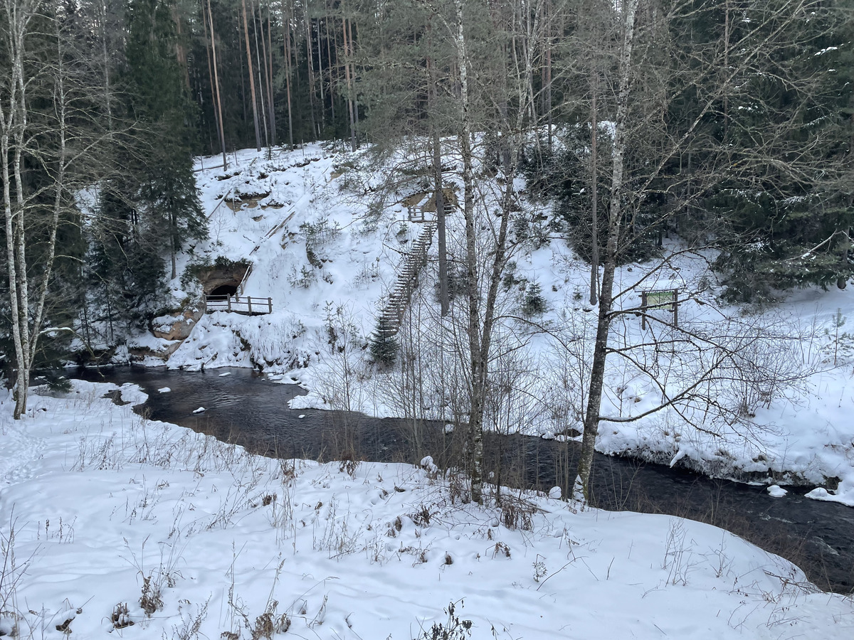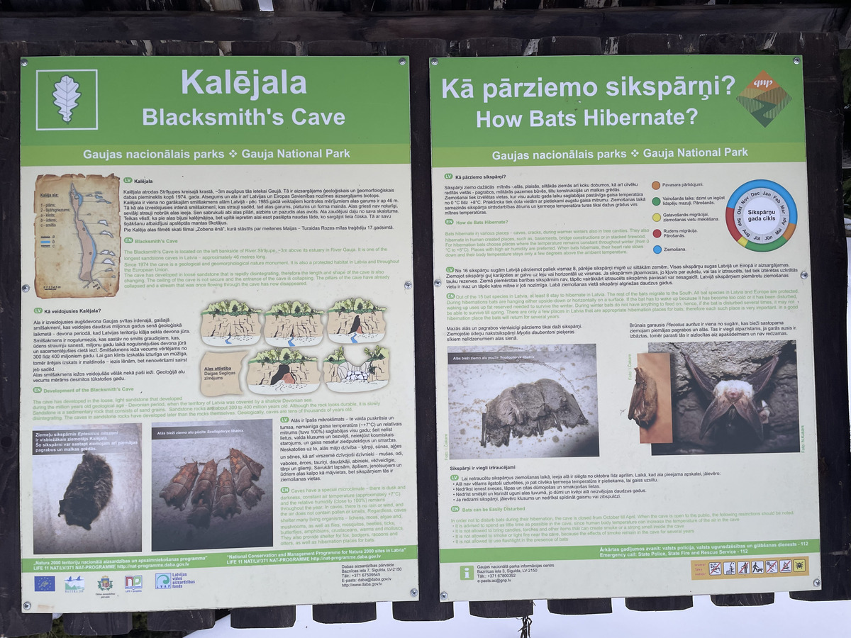 Once I left these caves, I drove towards Riga and found the second pair of caves, including Latvia's largest cave, Gūtmaņa Ala. Massive cave, in volume but not that long. A hole on the mountainside, and with a spring at the end. Nice, and easy to visit. And open all year along :-) This one also had a side cave that was much smaller, and this time much more cave-like.