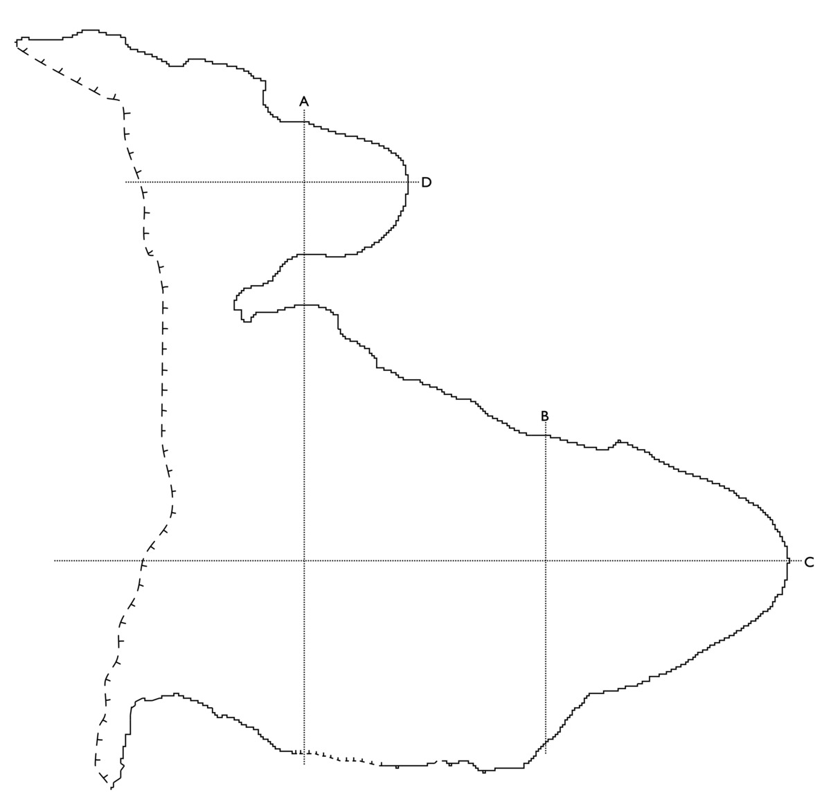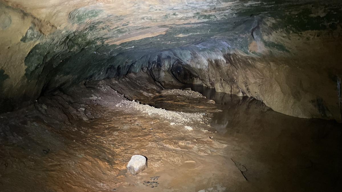 Kalēja Sānu Ala. Side cave to the above. Coordinates N 57.3795475 E 25.262771. The cave is 6 meters long. This one I was able to scan with my scanning pole, the model is loadable here, can be rotated on your browser screen here, and the high-resolution map can be downloaded here.