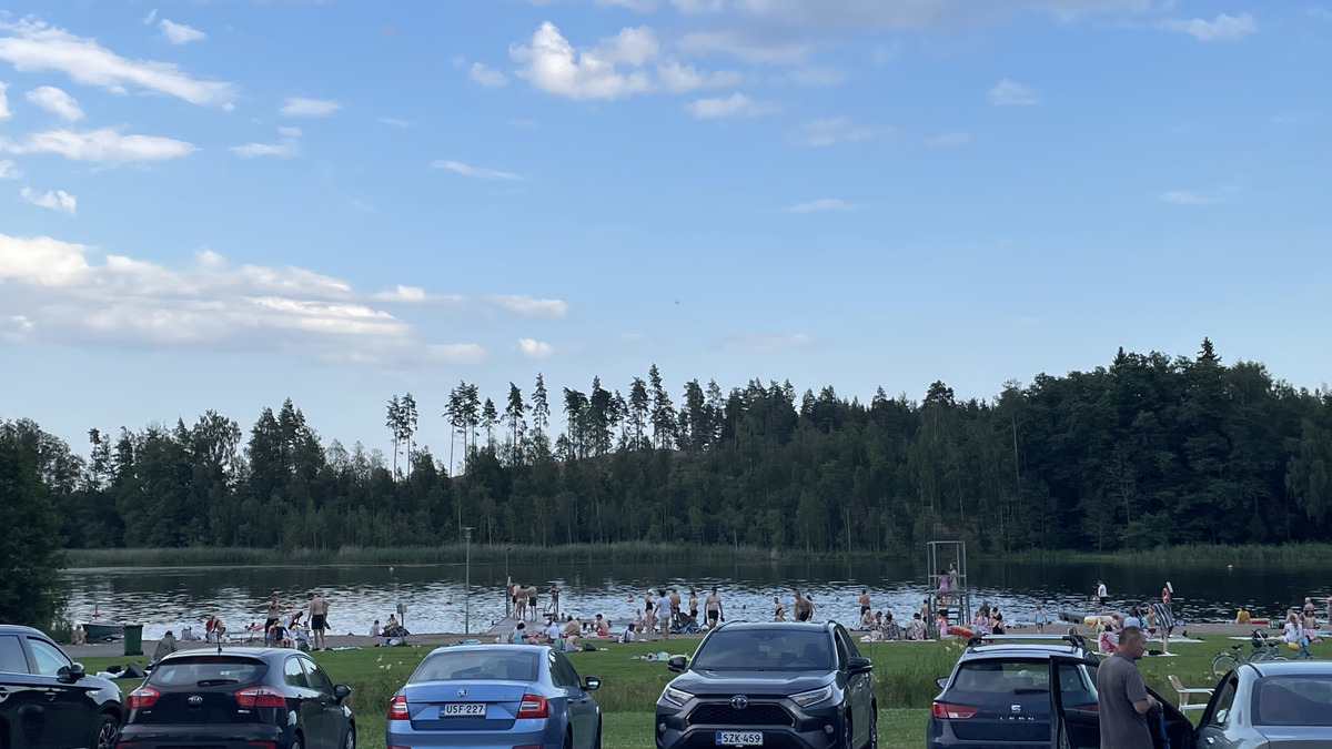 Syväjärven uimaranta, Kirkkonummi. A beach on the "deep lake" (Syväjärvi). In reality the lake is pretty small though. I doubt about its deepness either. Anyway, with almost thirty degrees and one of the rare sunshine-filled days of the summer, everybody and their kids appear to be at the lake. So am I!