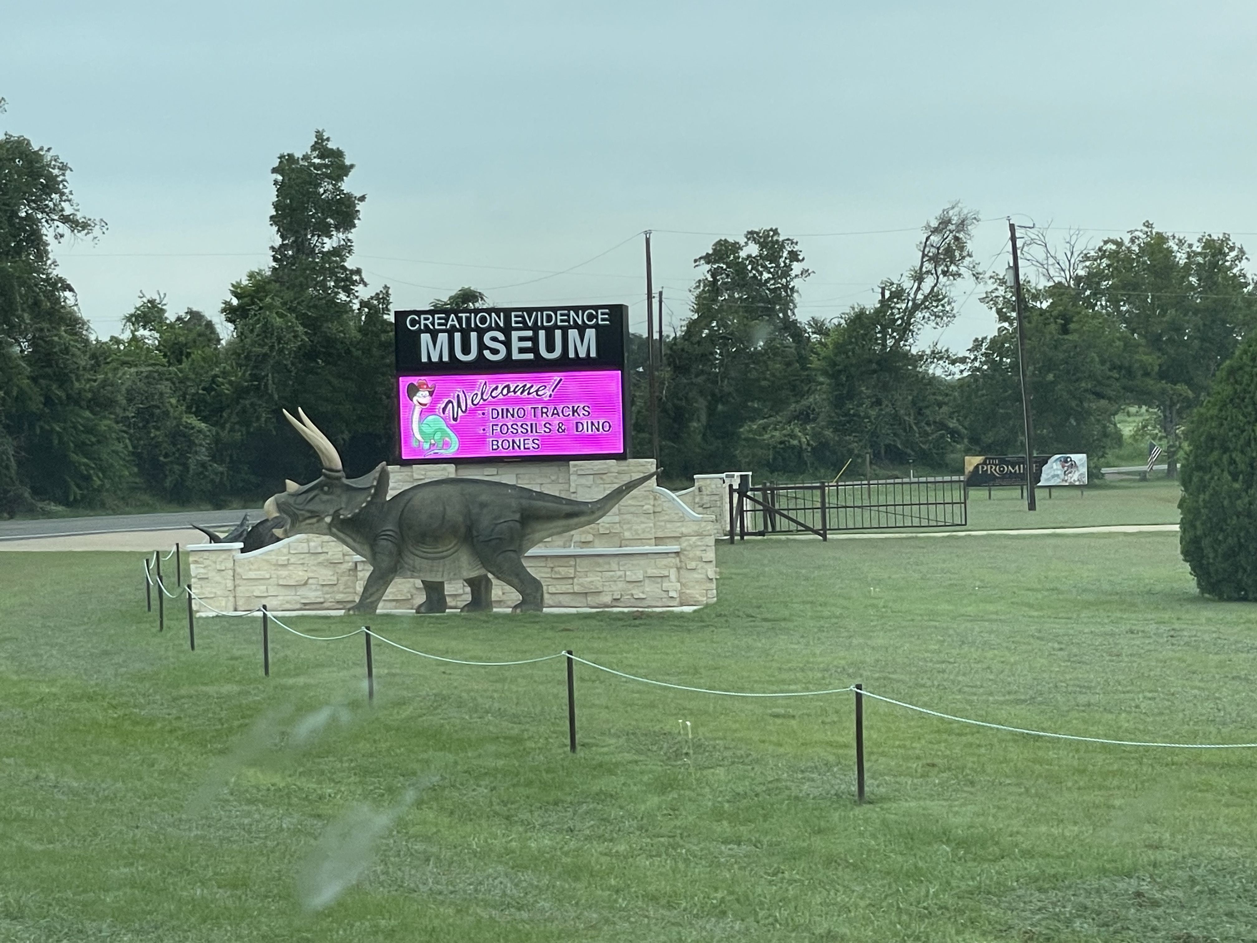 It is also interesting that just before entering the park, over-religious Texans have put up a "Creation Evidence Museum", this one purportedly showing evidence of divine creation of the earth six thousand years ago. Again, not so... there may have been creation, but clearly there's been evolution on earth for a much longer time, including periods of animals such as dinosaurs that are extinct today.
