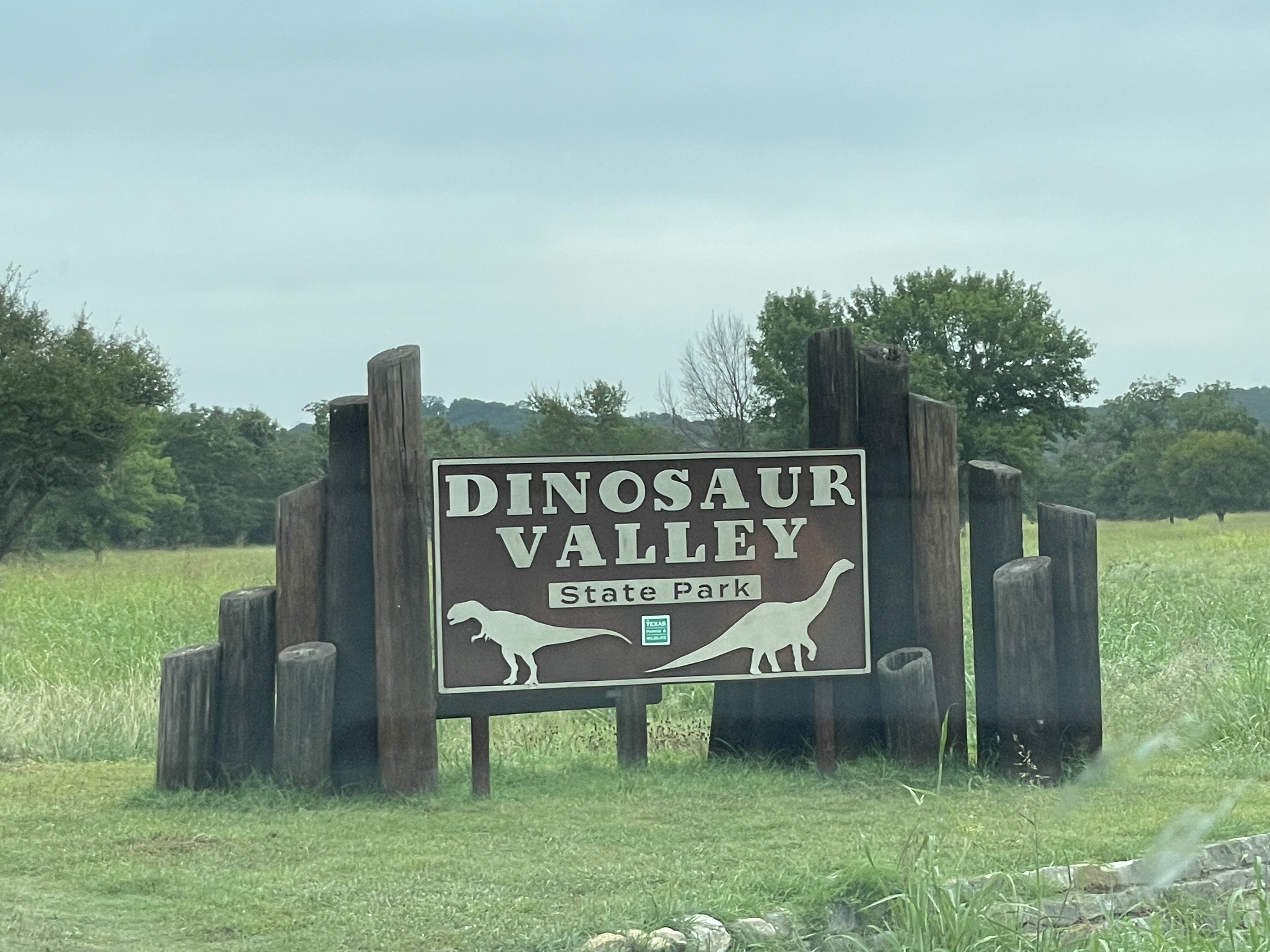 Dinosaur Valley State Park is a national park service area hosting easily viewable dinosaur footprints. Much recommended! The park is in Glen Rose, Texas, about 130 km from the Dallas Forth Worth airport, about 1.5 hour drive if there's no traffic.