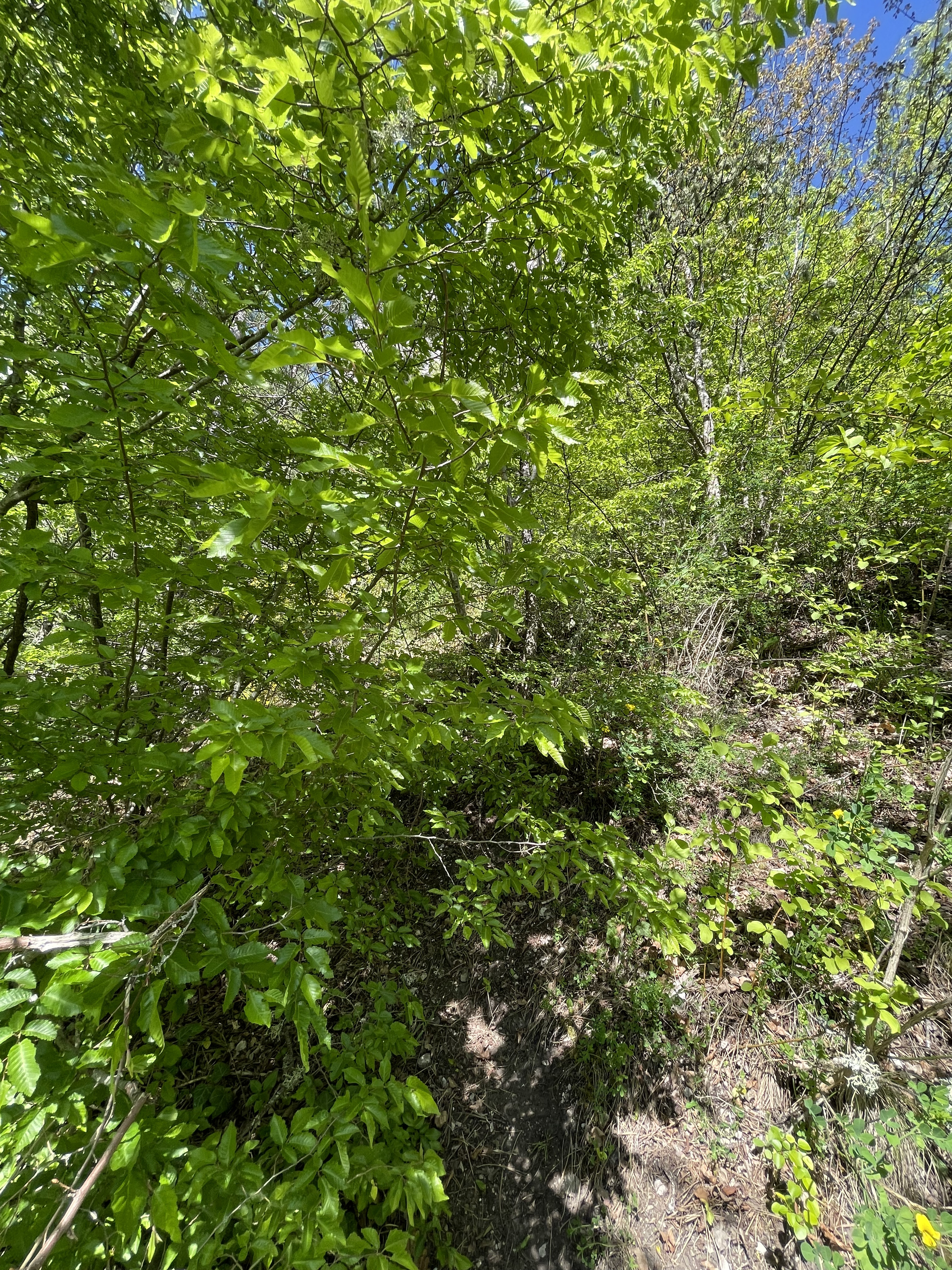It was a good try. I think. Or maybe I should have pushed harder. But ... it was getting difficult to stay on the slope, even with some smaller trees around me. But in the end I turned around, and did not reach the Dobrun cave in the mountains of eastern Bosnia and Herzegovina... the slope was loose gravel, and getting steeper on every step. No sign of paths. I do wonder though, I could *see* the cave but not reach it! And reportedly monks have lived in the cave, is there another path?