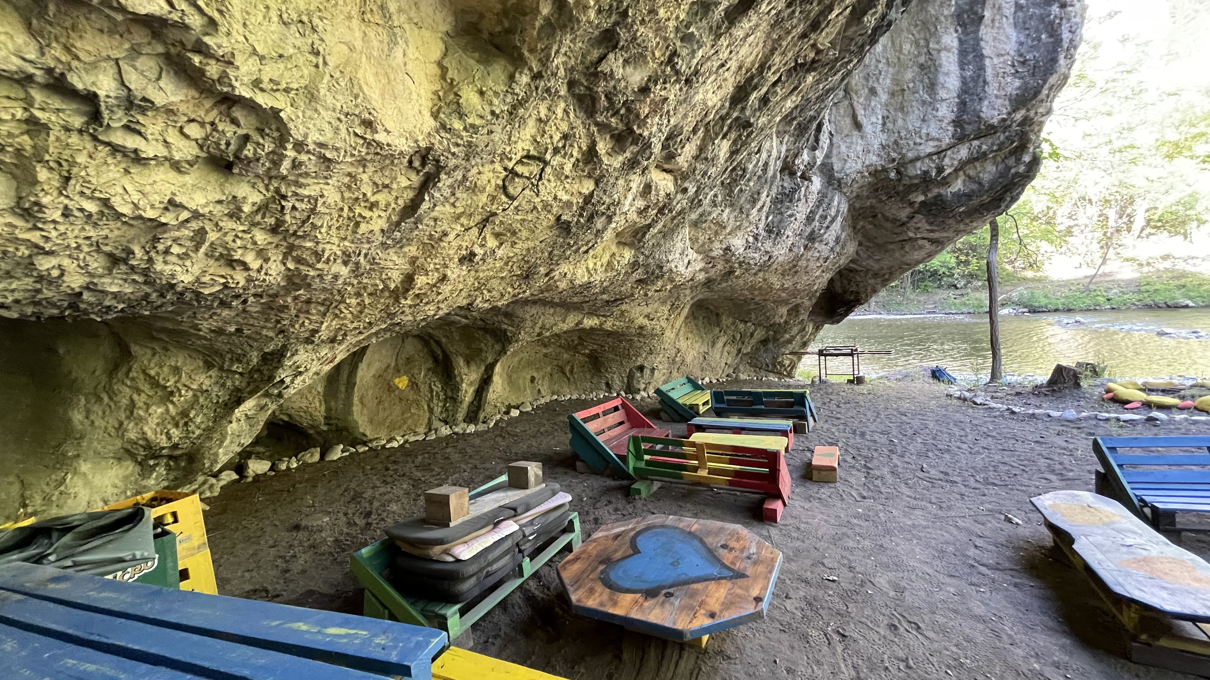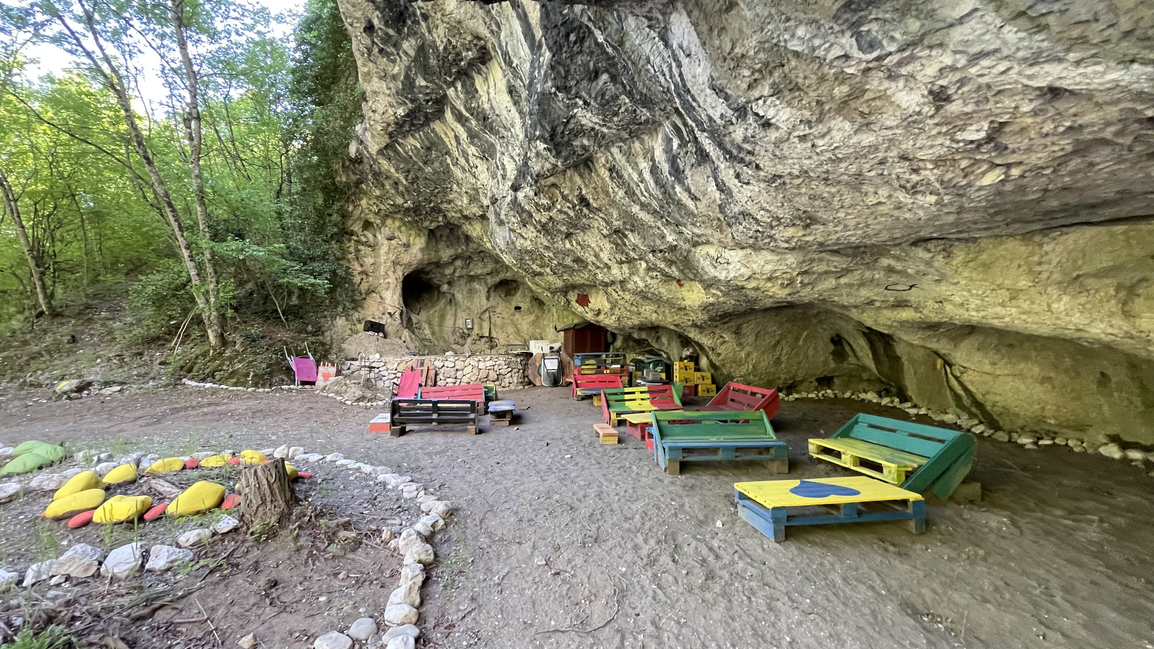 This cave was used as a party place, so filled with human stuff, chairs, bar tables, even a stage... interesting. Let's call it the Dobrun Party Cave! But all done for the love and fun in mind.