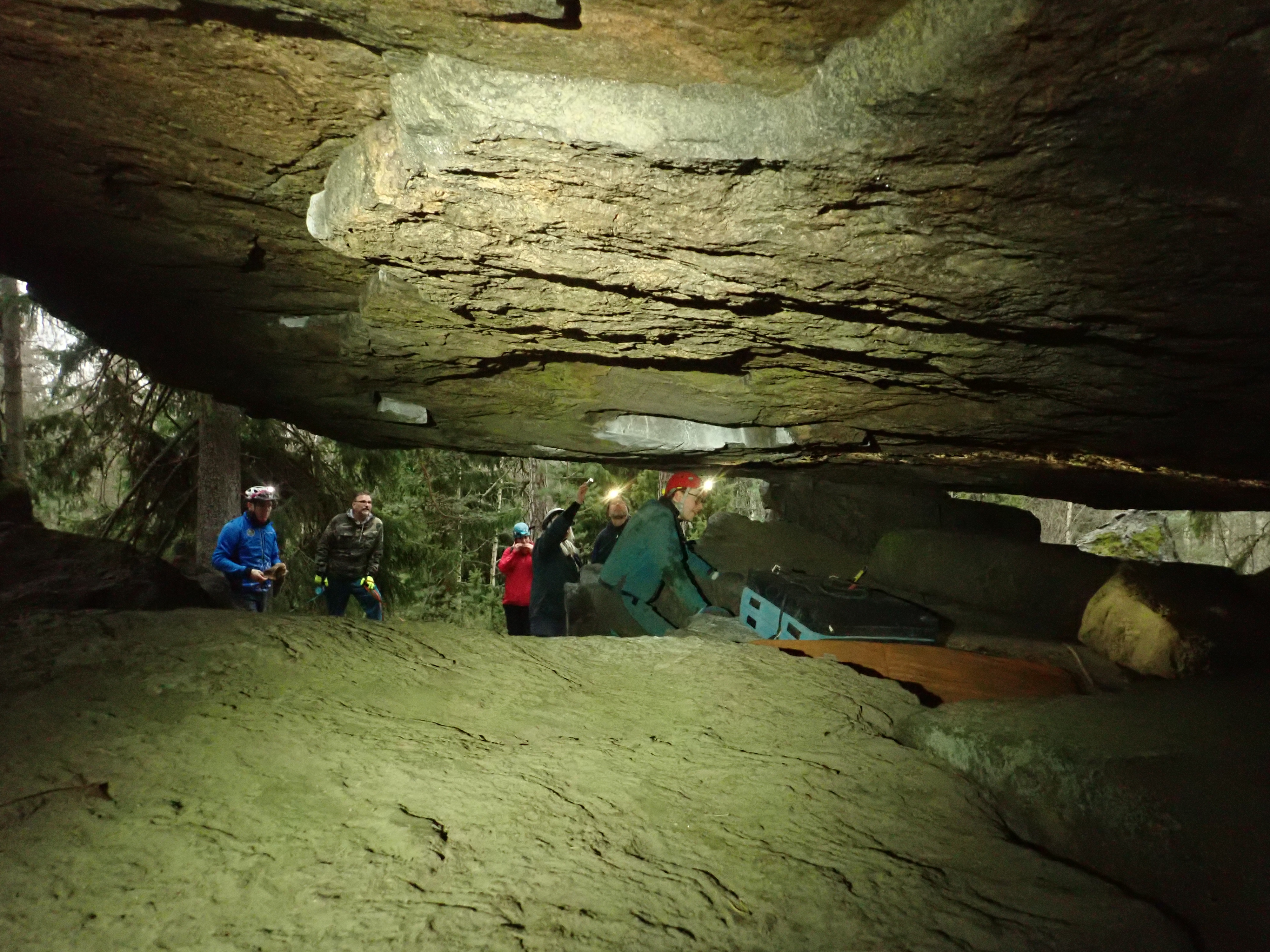Jouni had organized a tour of the Löpärö island in Sipoo for us, with the local guide Jukka showing us the cave locations. I think all of us were expecting a nice walk but small caves. But we were really impressed by what we found! Just take a look at these photos by Jarmo Ruuth! (Also some by Jari or Elena.)