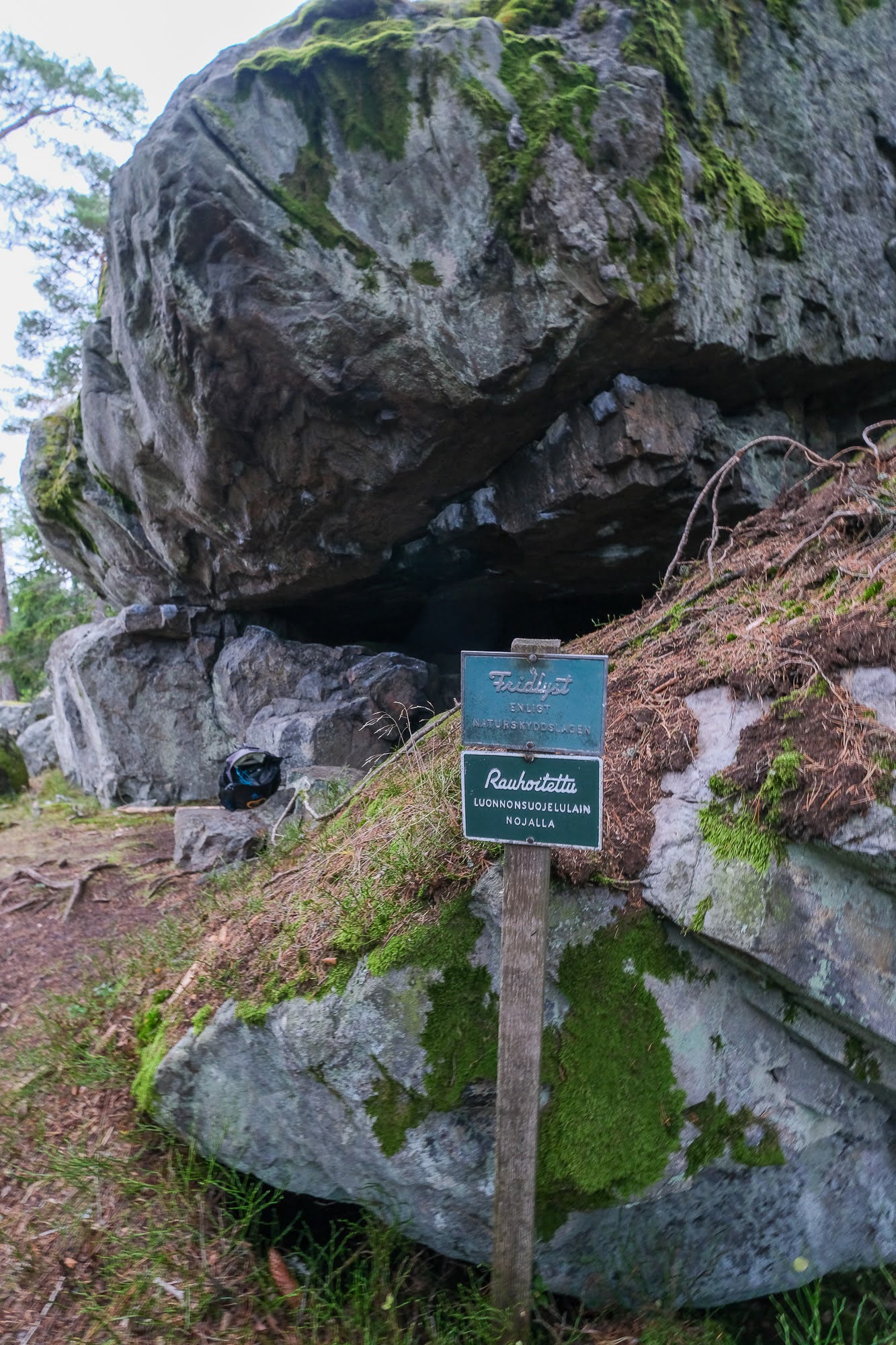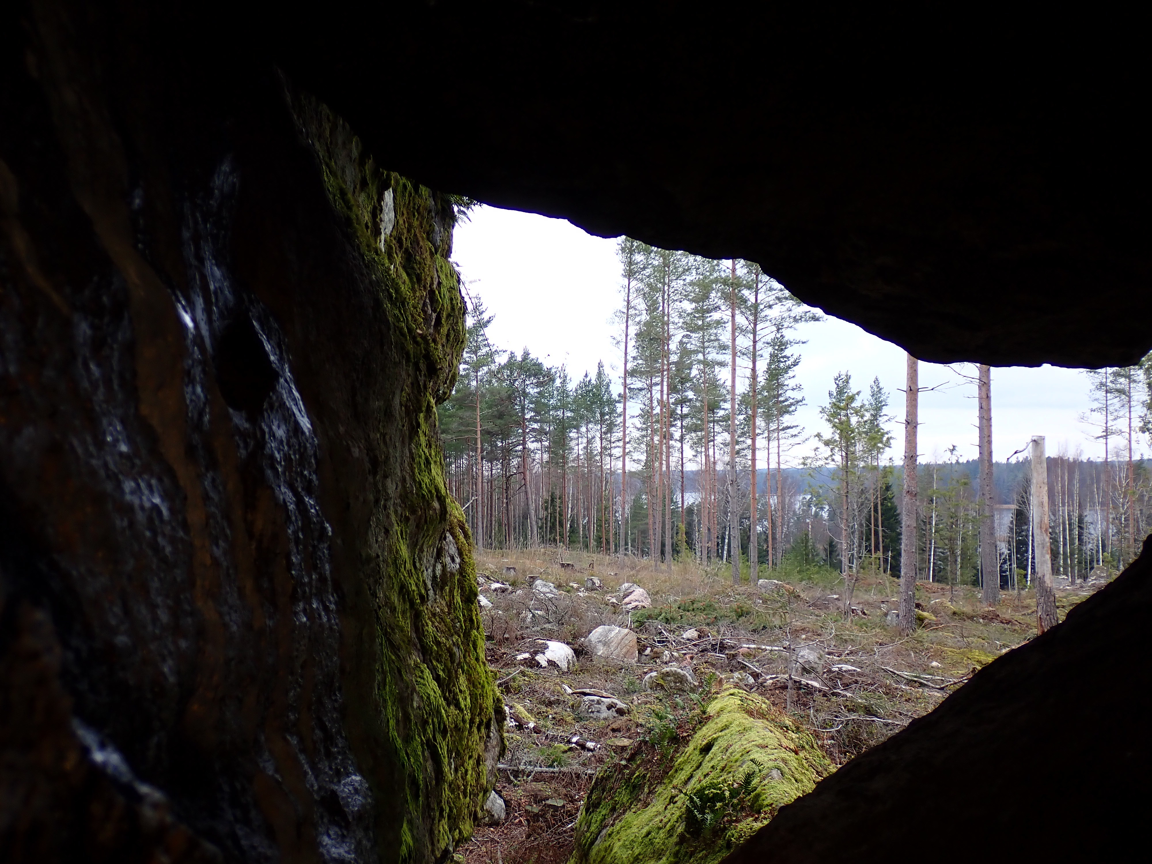 The Finnish book of caves lists caves in one cliff area on the west side of the island, but the Finnish registry of historic artefacts lists another one on the north side. We visited both.