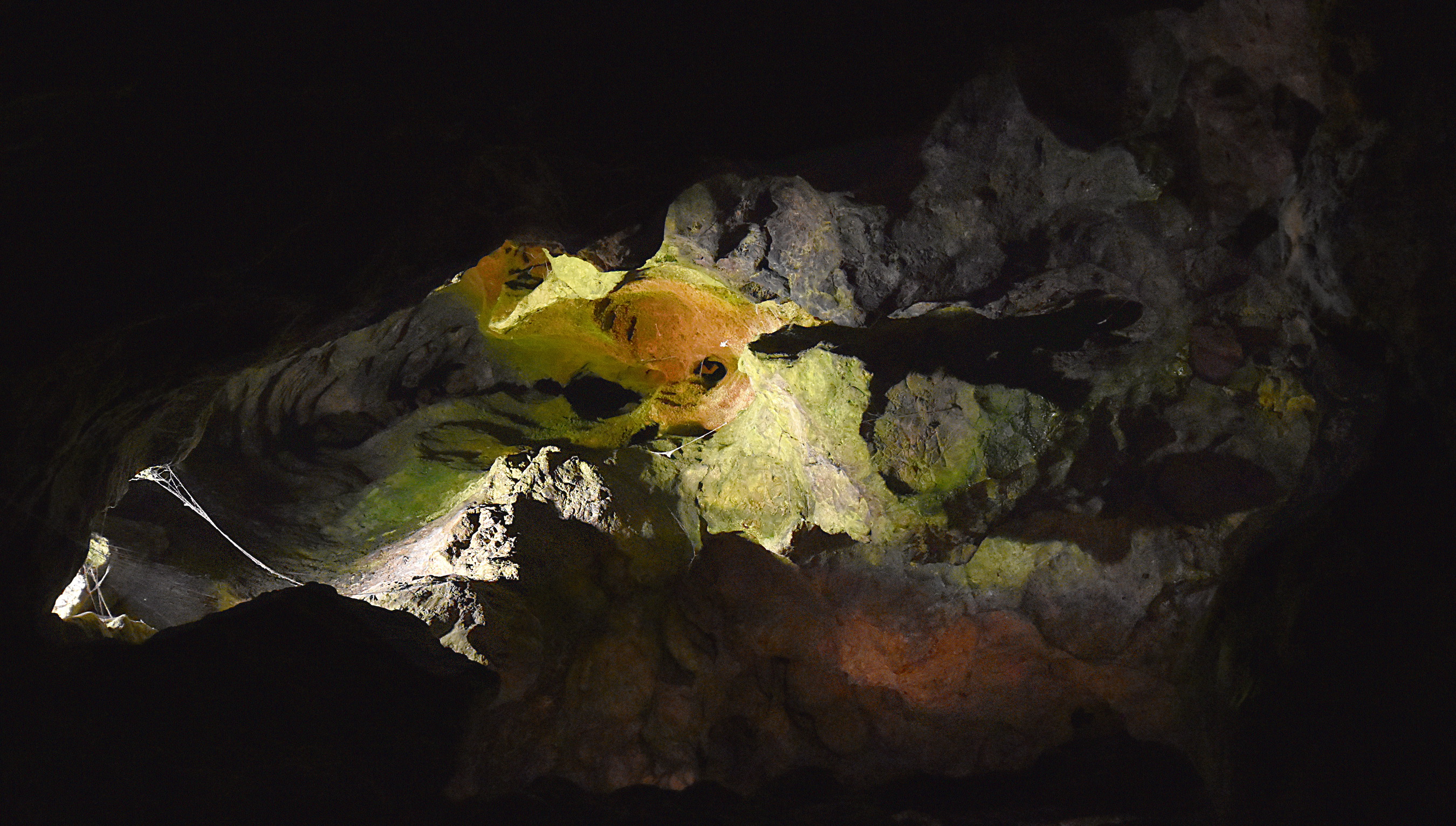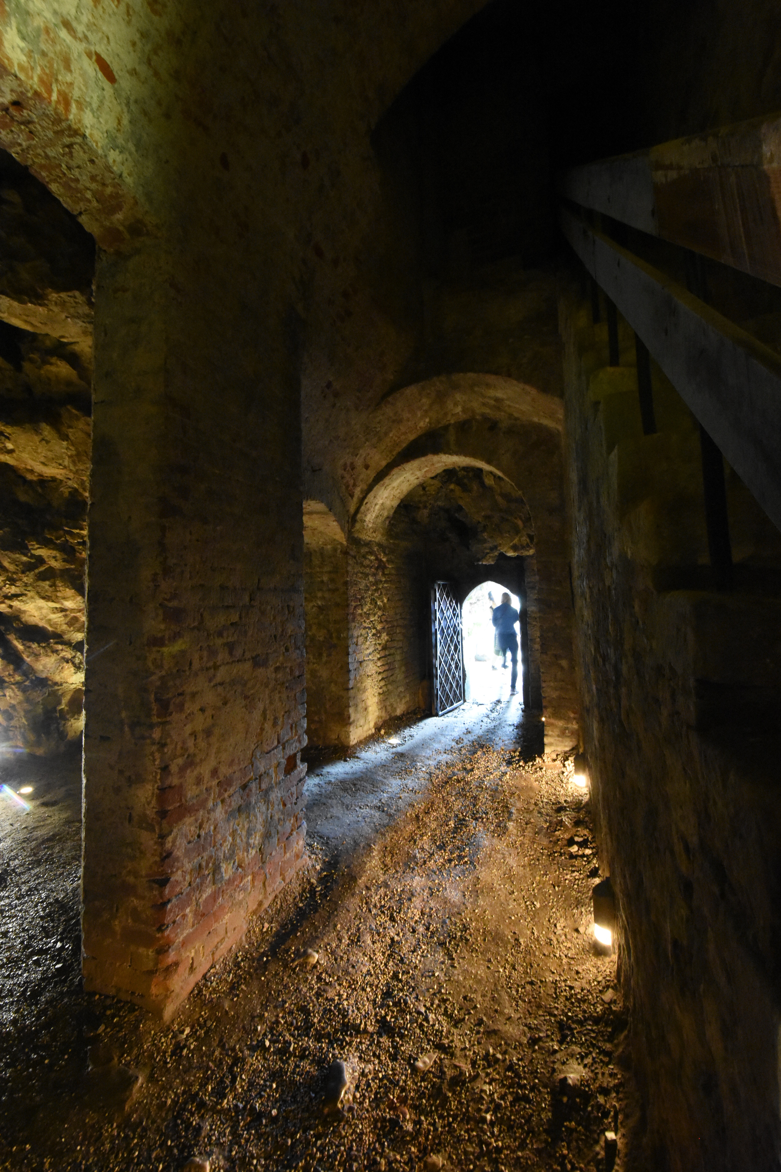 Dragon's Den is at the centre of Krakow, Poland, under the Wawel Royal Castle, going through the rocky Wawel hill and exiting near the river bank. The cave is altogether 270 meters long, and 85 meters of it are open to the public. The entrance is at the top of the hill, on the yard of the castle, where one descends through a tower to the cave. There are a number of other entrances to different parts of the castle as well. Those entrances are primarily on the long side tunnel that is closed off from the area open to the tourists. But there are a number of small holes in the porous limestone, so fun to explore. Read more about the history of the cave from Wikipedia. A map of the cave can be found here.