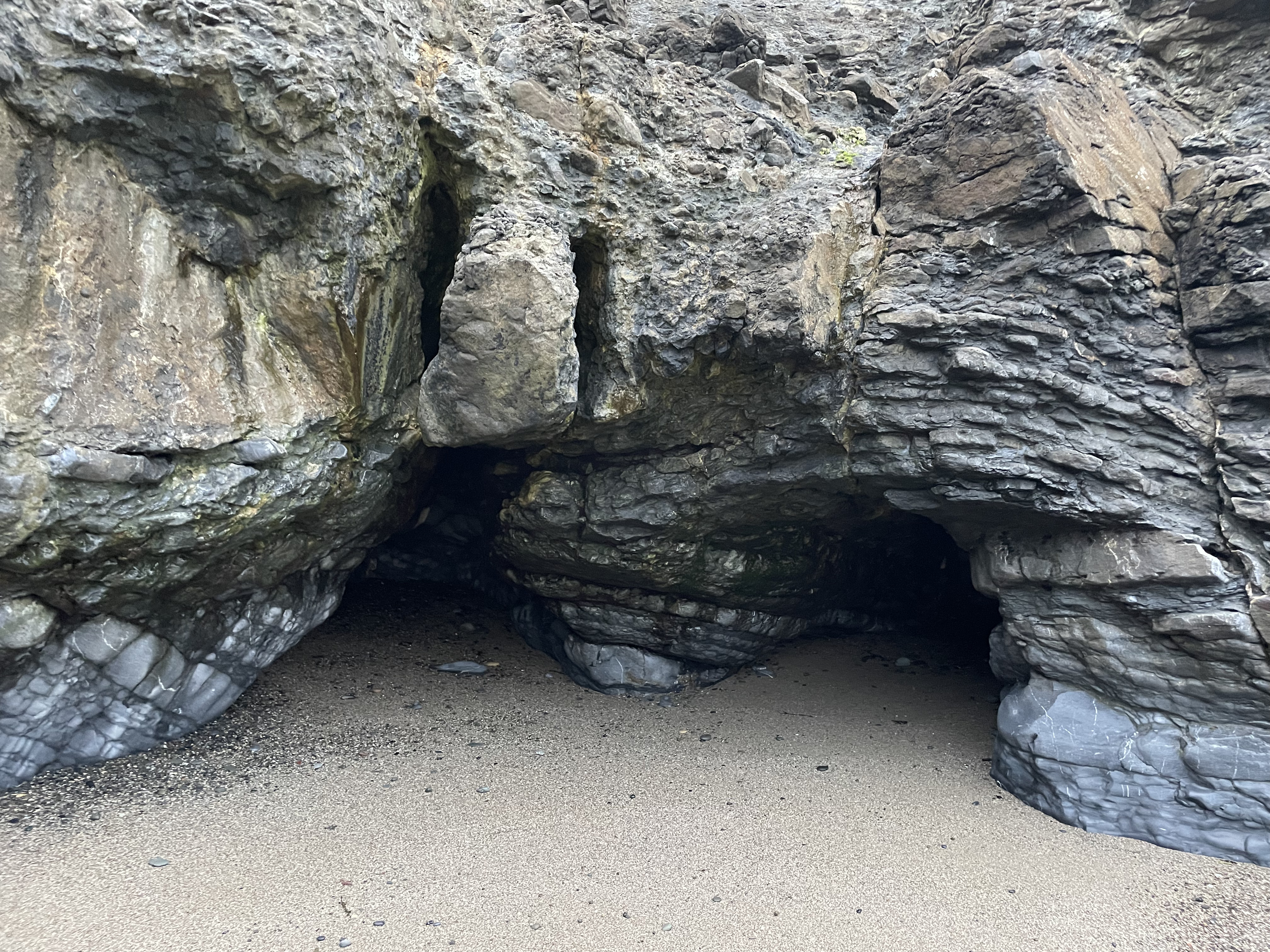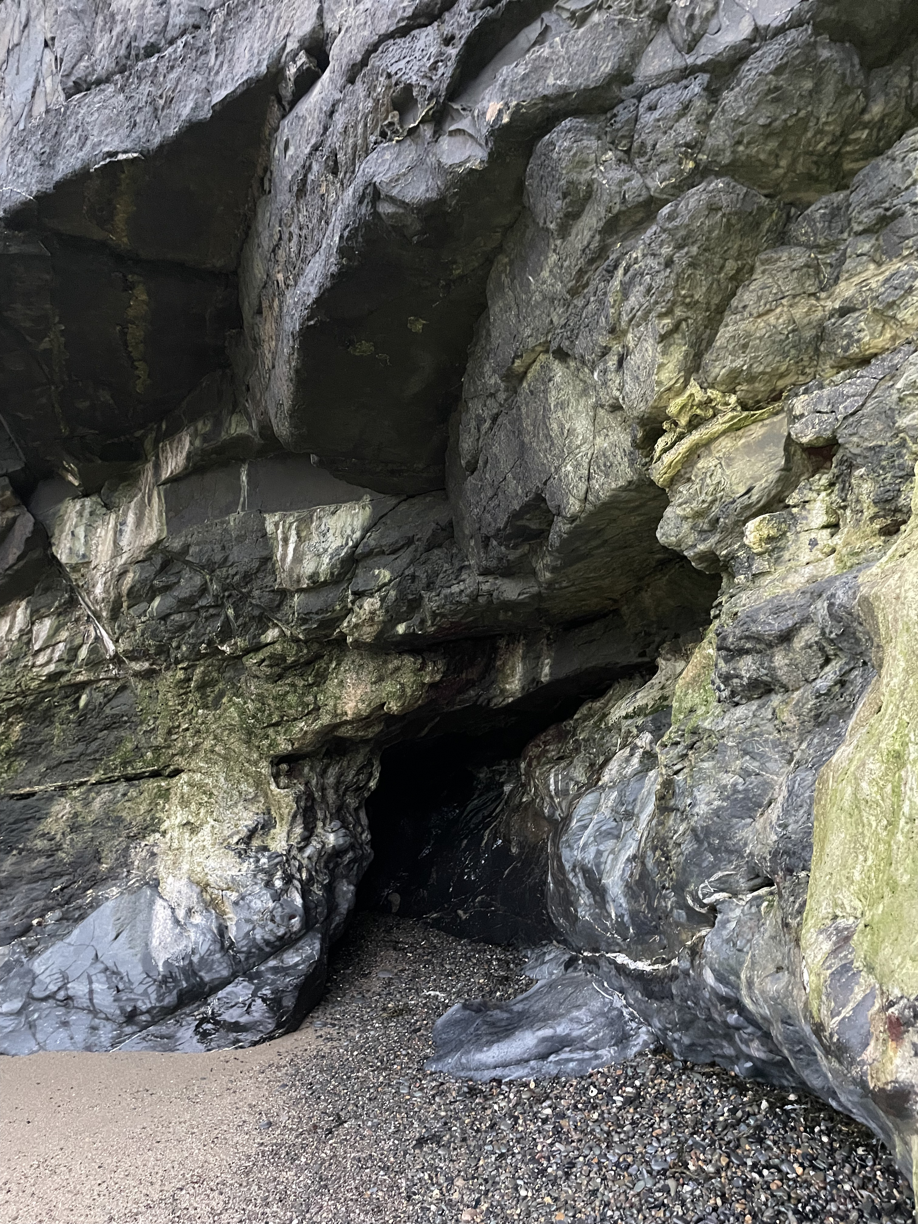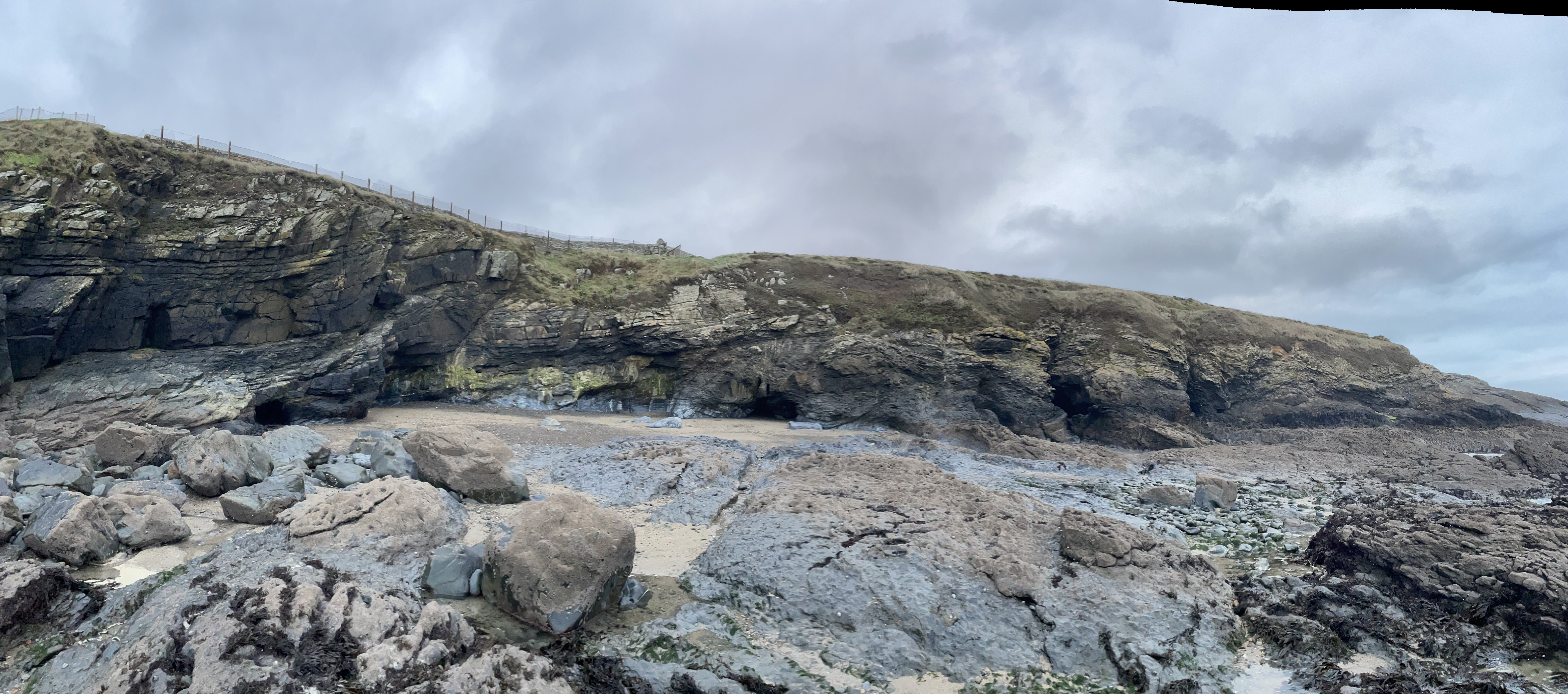 The caves are subject to the sea forces and erosion, but they are actually karst caves, formed through dissolution processes of limestone. Interestingly, Dublin has different types of limestone. I was north of Dublin, near Portrane. There the limestone is from the Ordovician period and is able to form caves, whereas elsewhere the limestone type doesn't tend to form caves as easily. Hence, there's really not much other caves in the Dublin area.