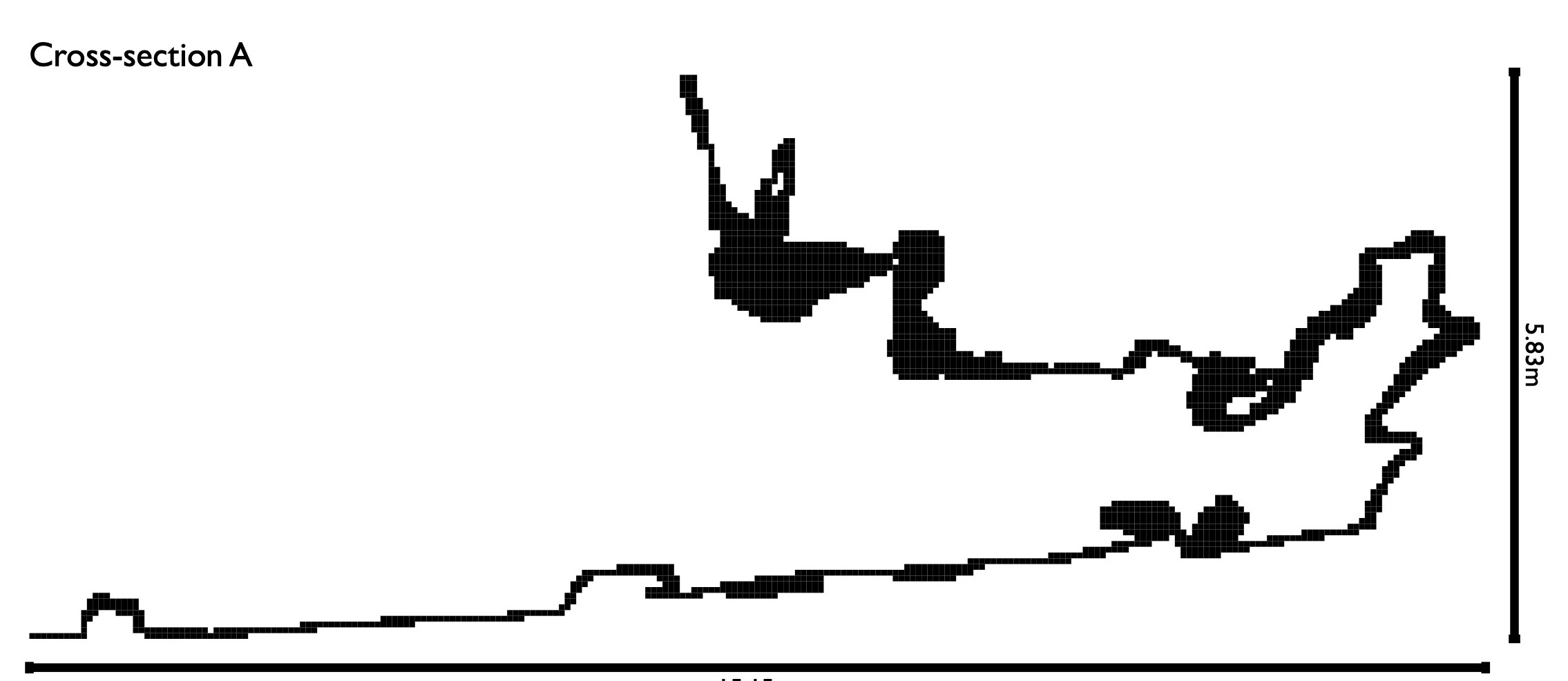 I used my Cave Outliner to convert the 3D model to a map. The full map in high resolution is in PDF format here. Here's the horizontal plane picture of that: