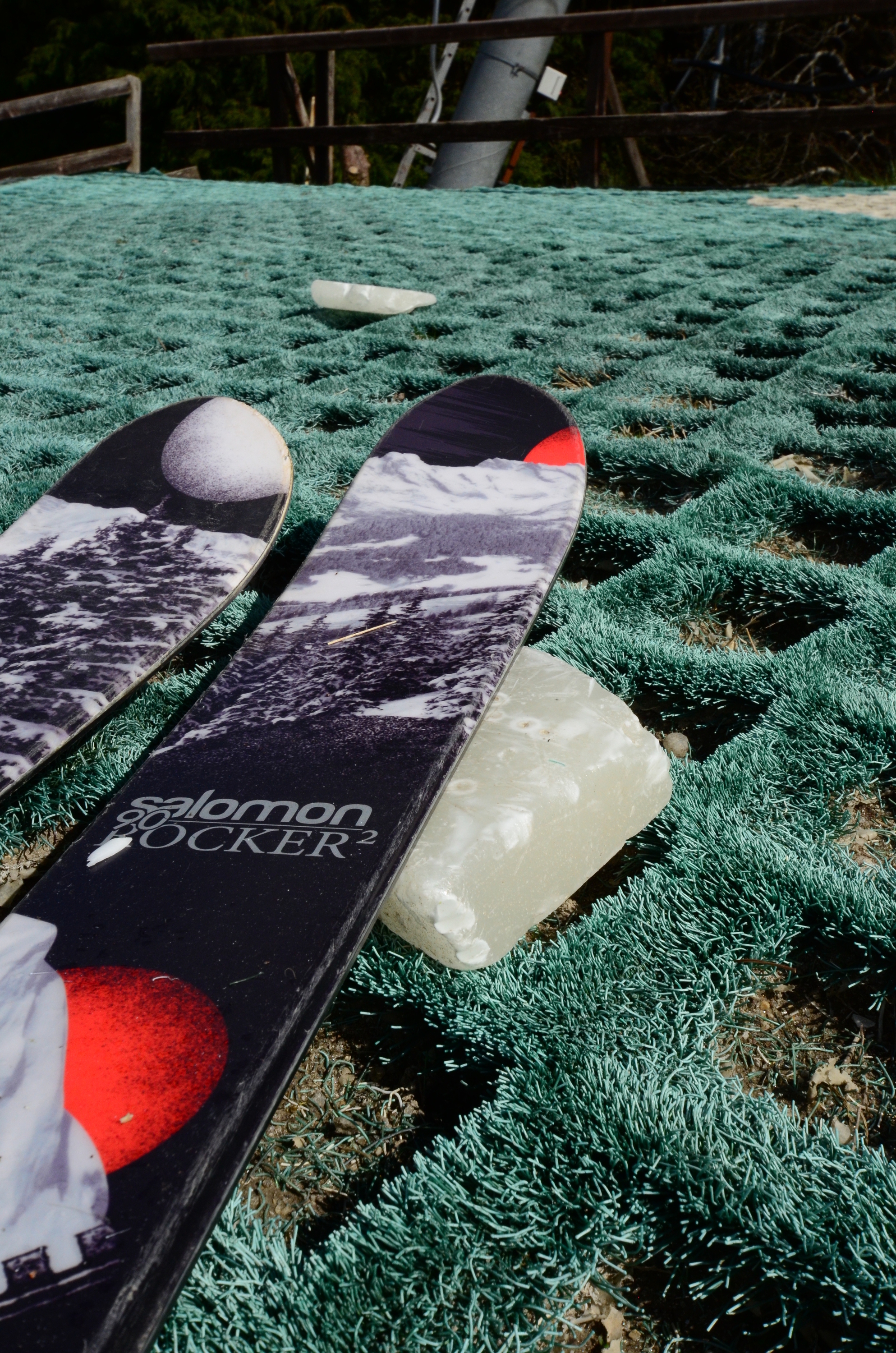 At the top of the ski area there are some ice-looking pieces. These are wax for the skis!