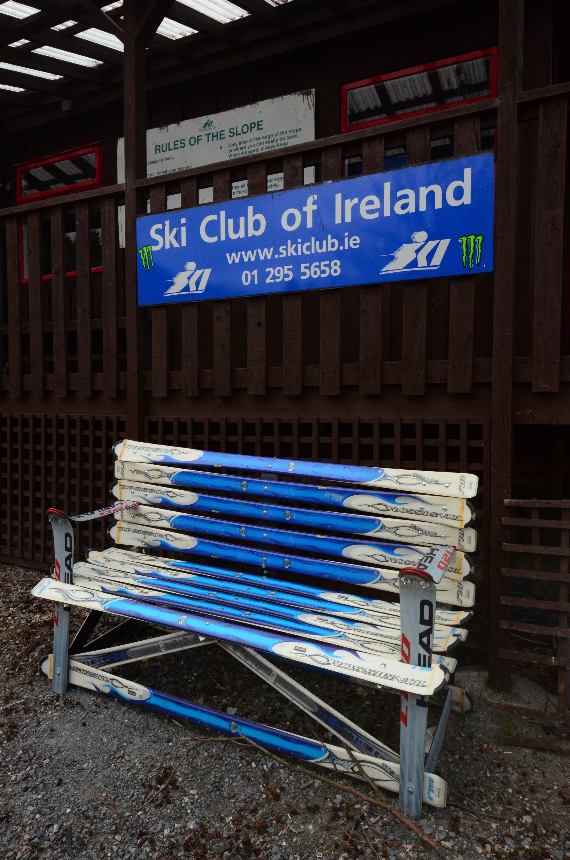 It is Sunday and I'm spending the afternoon with Matt Campbell from the Ski Club of Ireland. We are in the outskirts of Dublin, sampling different qualities of fake plastic snow in the club's ski hill. I like the hard, brushy surface better than the soft, white beginner's surface. The white plastic feels like packed powder, but somehow I find the surface a bit too soft. I can understand that the beginners like it though, the 40 cm of padding under the surface will ease the falls.