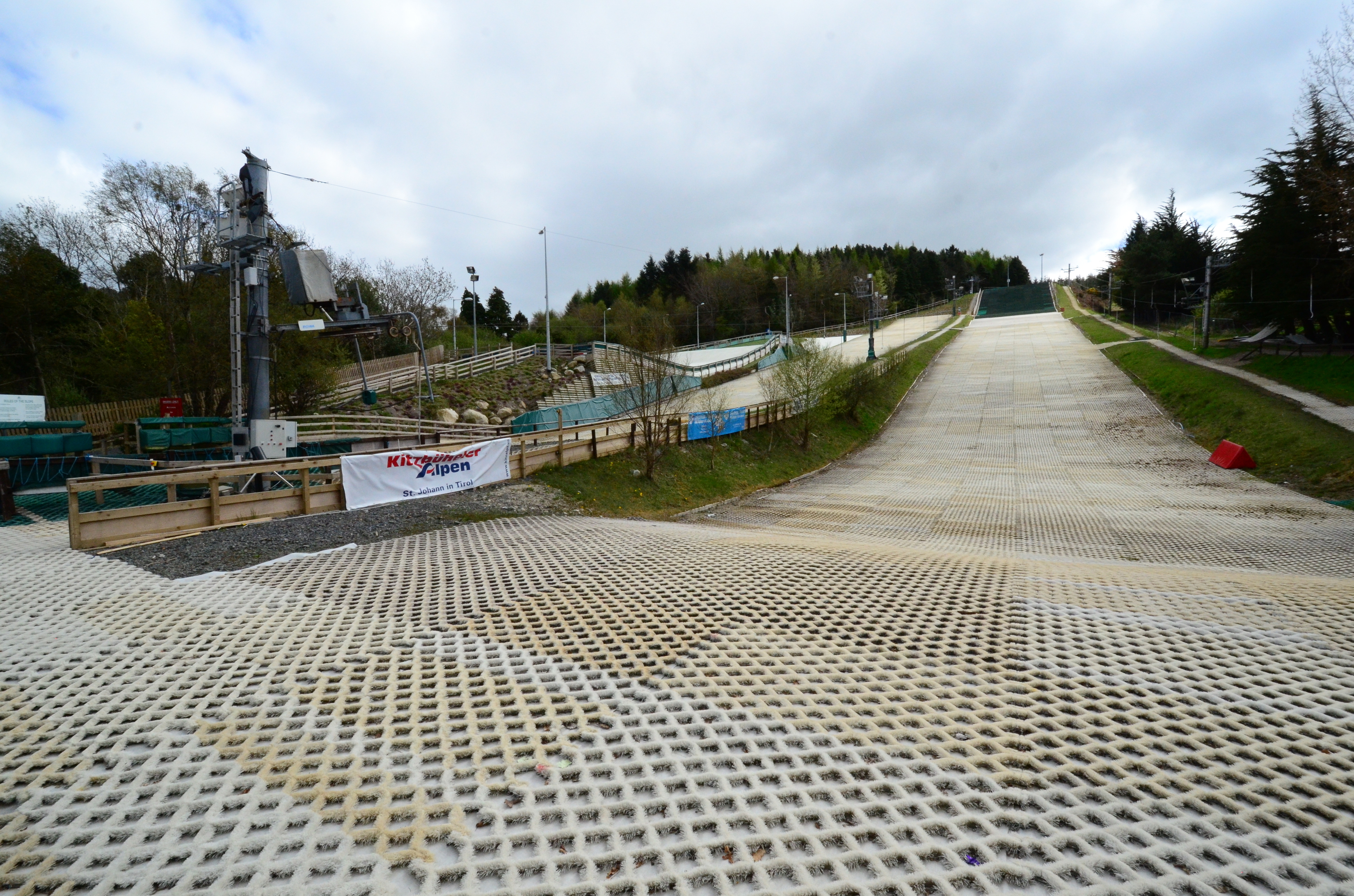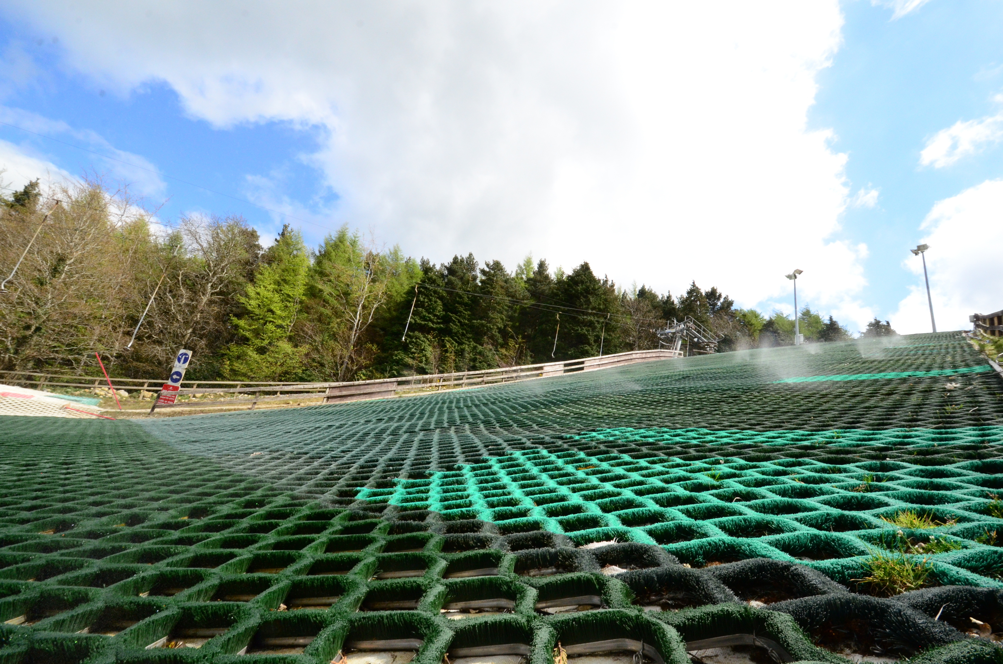 The harder surface feels like a groomed, icy slope. It works best at high speed and is fun to ski, but you have to be prepared for it to be very slippery. I am particularly happy with the effect the sprinklers have on the ski slope, this is much closer to a real snow feeling than what I got in Edinburgh last year.