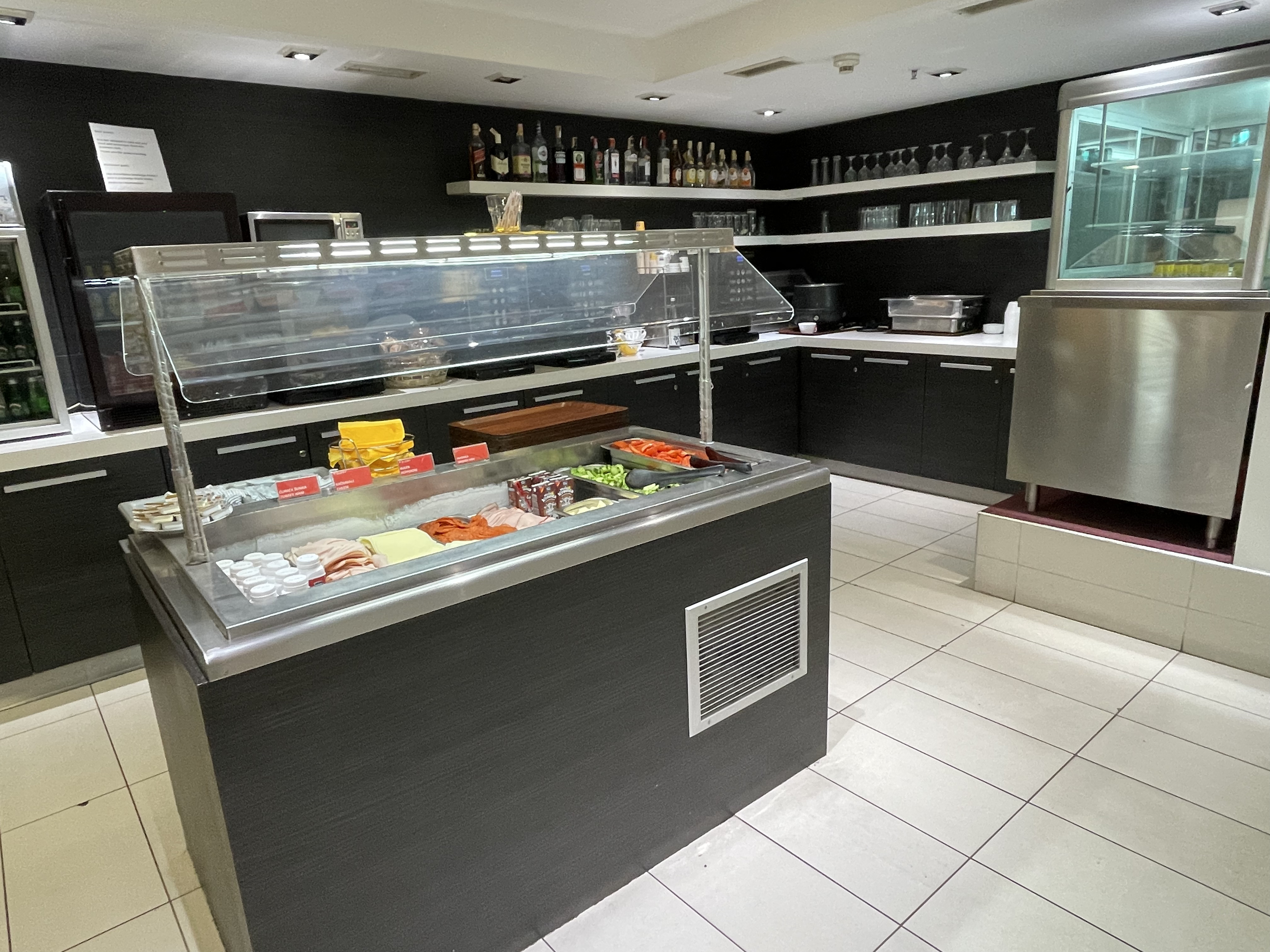 The main downside is that there are no bathrooms in the lounge, they are just around the corner but unwelcoming/busy/in bad shape.