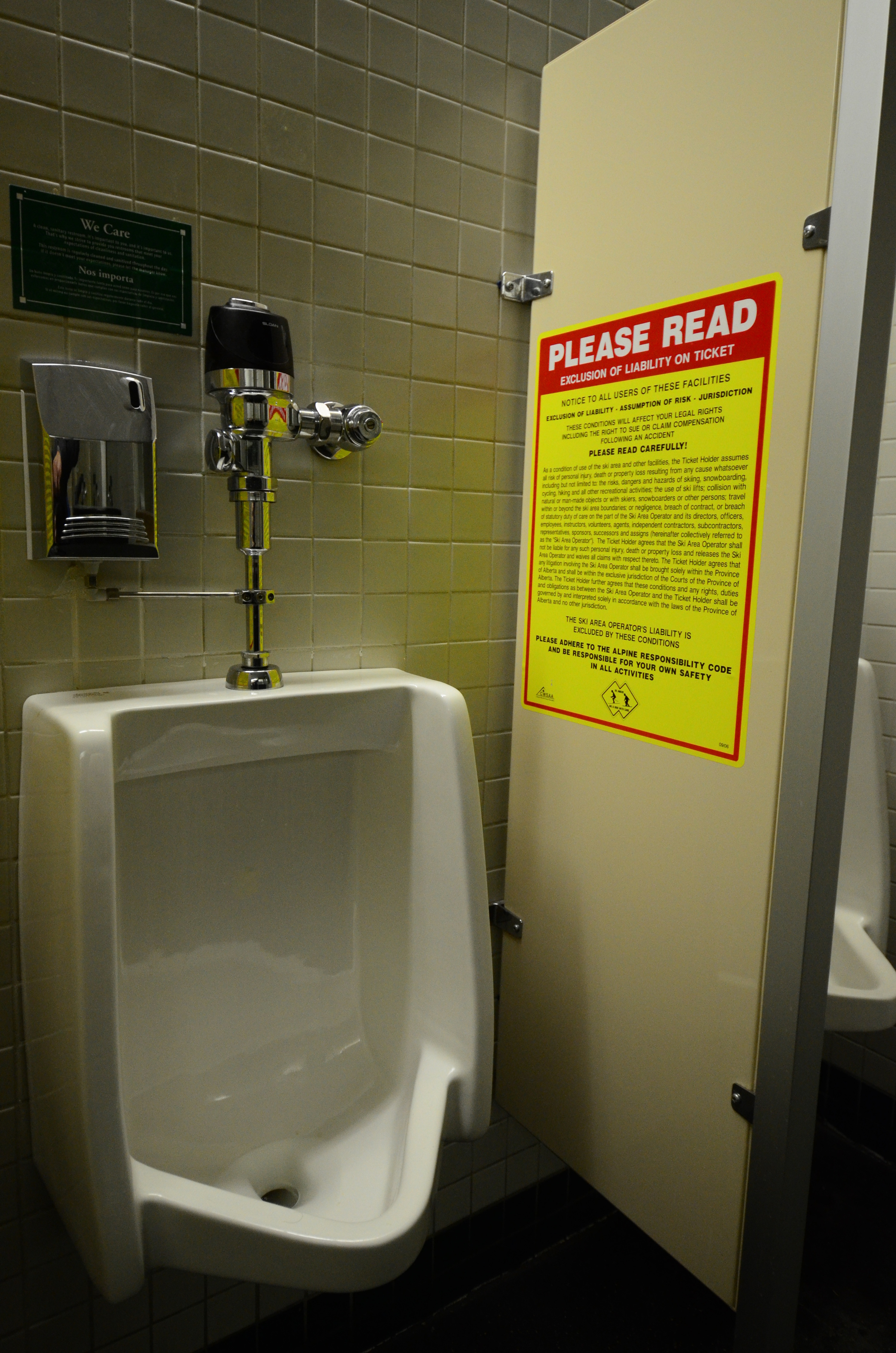 Even in Canada, the ski areas worry about liability lawsuits. But I thought Nakiska's placement of the legal disclaimer in the toilet was over the top. But come to think of it, I did not read the disclaimer. Maybe it was for the use of the toilet?
