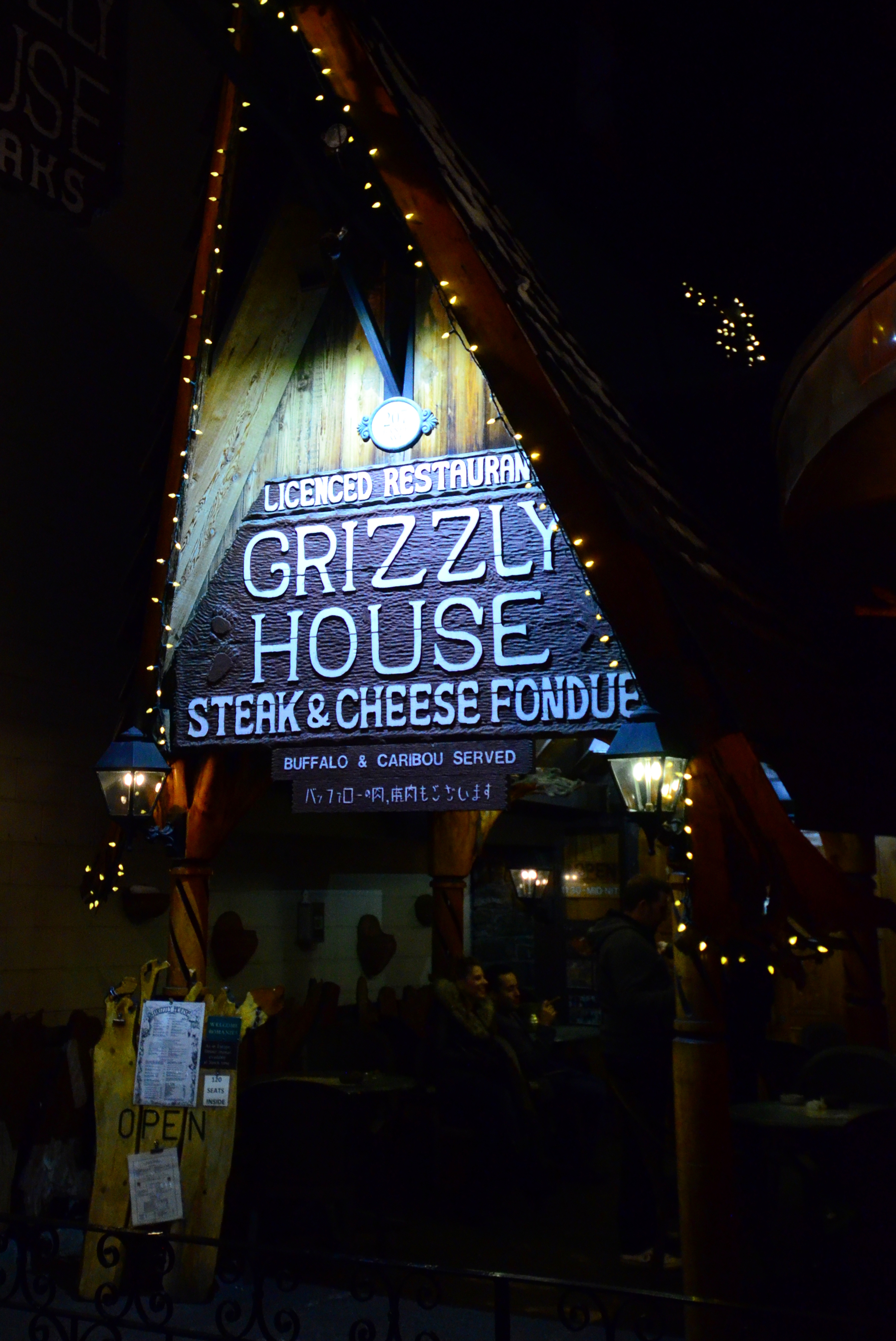 Once I had settled at my hotel, I set out to explore the small city centre. This was the weekend after the Banff mountain movie festival, so there were no movies to seen. But there were plenty of bars and restaurants. The only problem was that they were all full. I wanted to dine at the Grizzly House, which would have served rattlesnake fondue. Eventually I settled for the bar at Maple Leaf Grill and Lounge; they also served food.