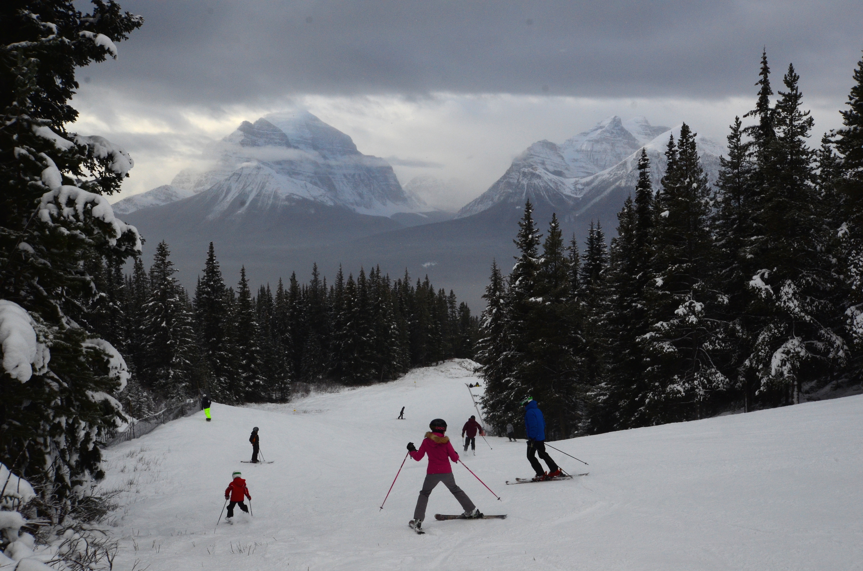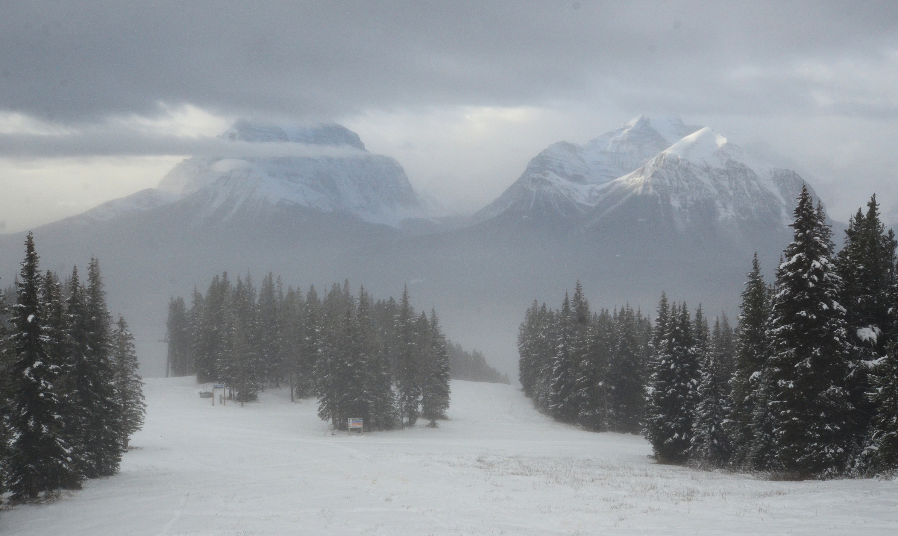 This is lame beyond belief, but while I knew there was great skiing in Canada, it had not occurred to me that the rockies extended this far north, and that they were perhaps the most striking, beautiful mountains that I have seen. And I only saw glimpses when the clouds parted for few moments.