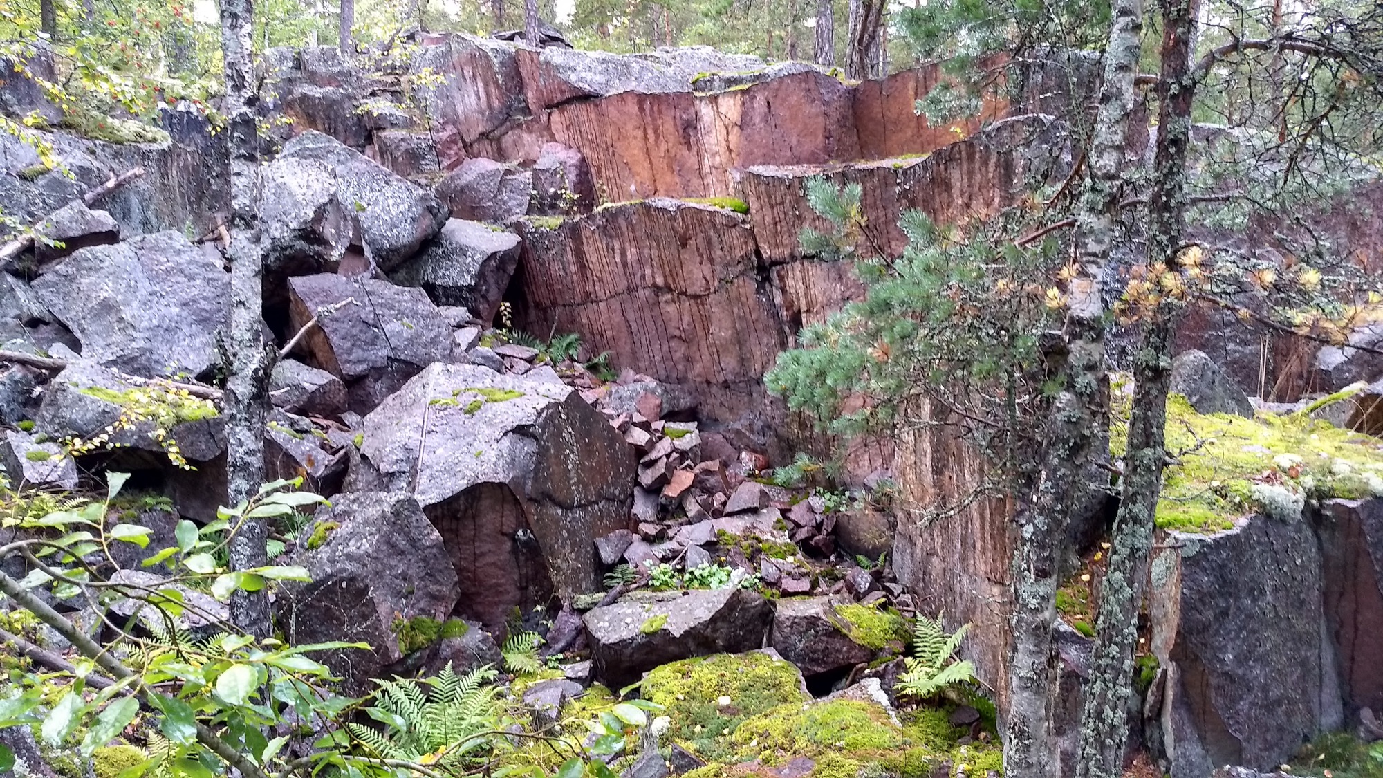 It is surprising how much mining activity there has been here in the last 400-500 years. Small mines, mostly, except in the Kaivoksela area where you have mine shafts running down 60 meters. In Elfvik, the quarries are for making granite blocks for construction. The quarries are recent, as the operations only begun in the early 1900s and ended in 1960s.