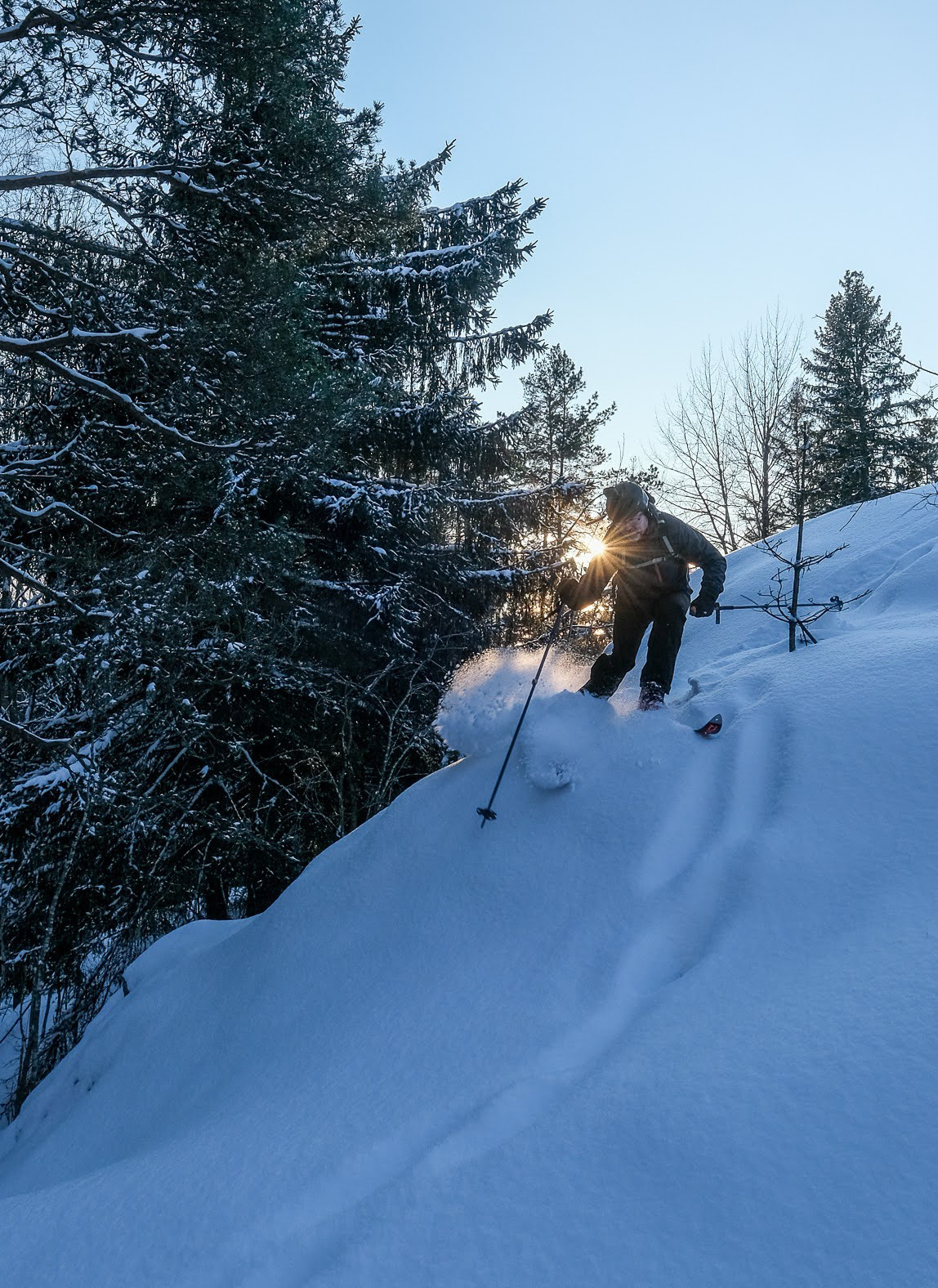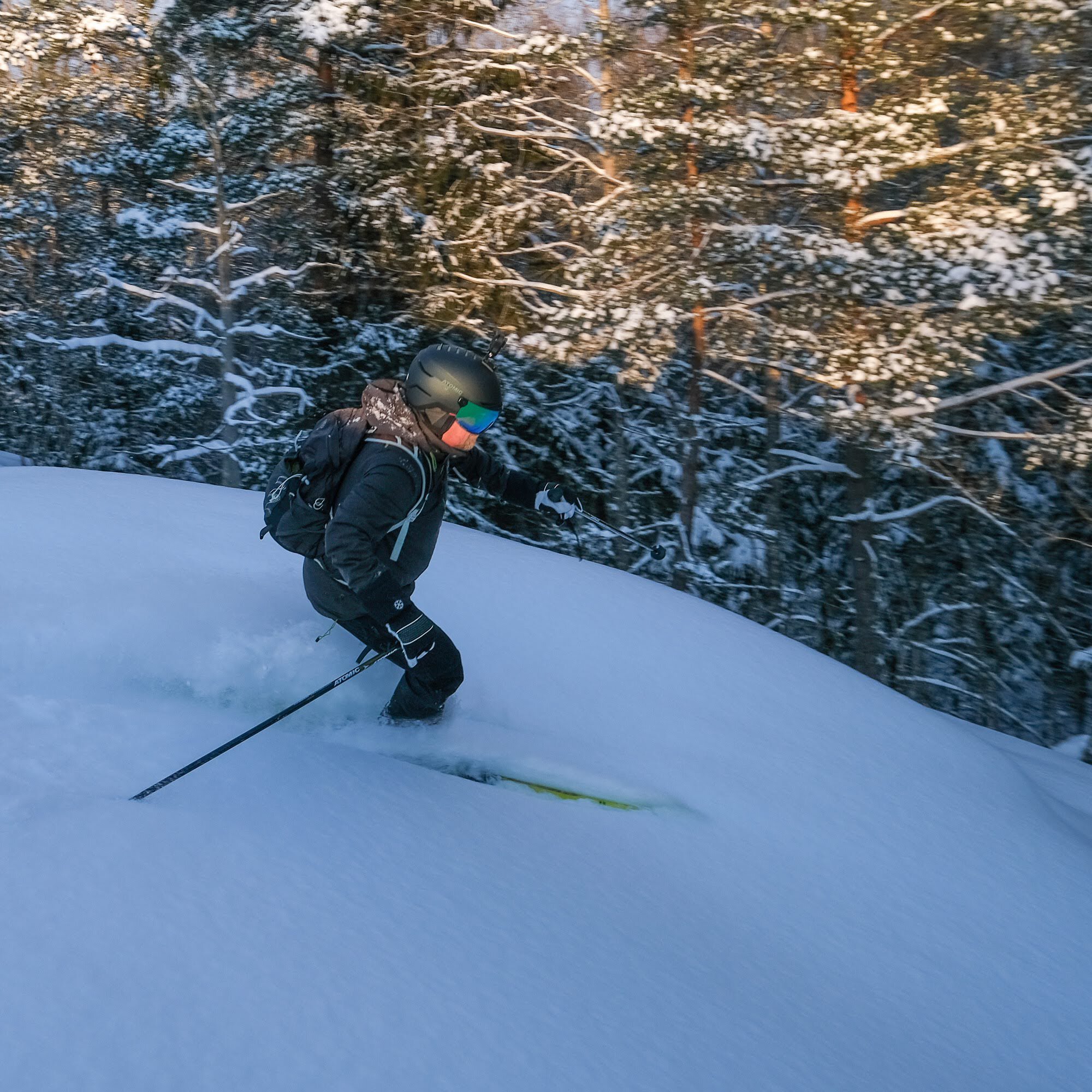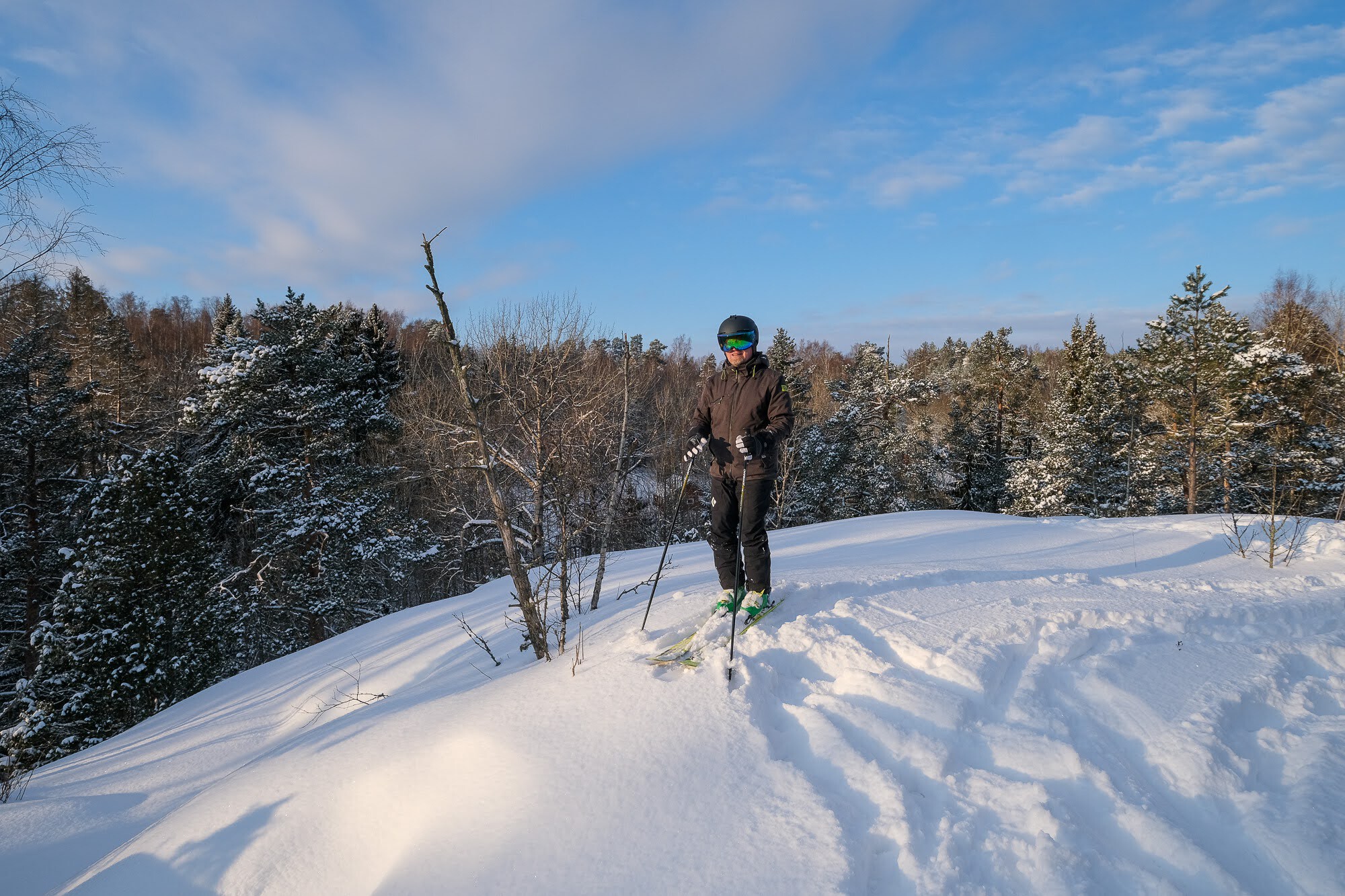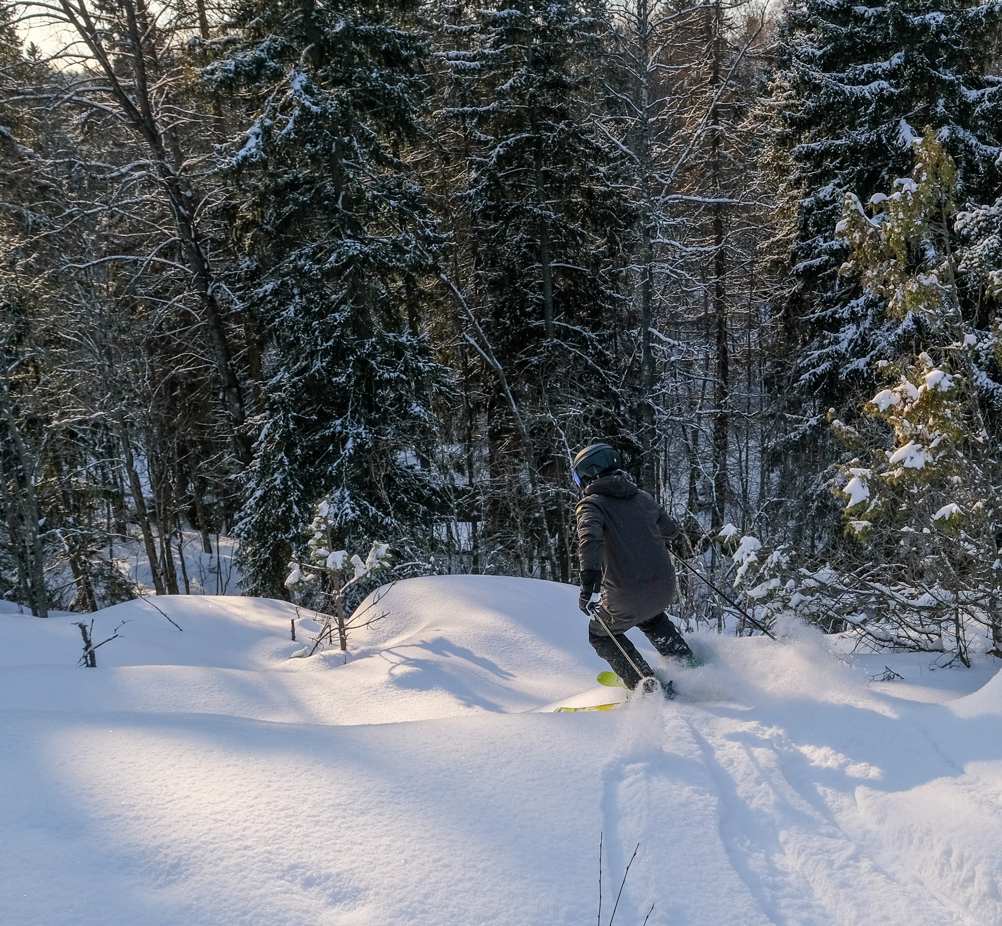 Covid. Lines everywhere. Commercial skiing... maybe not for us this year. Fortunately, Jarmo knew a place where we could get some forest skiing in. And even the sun was shining!