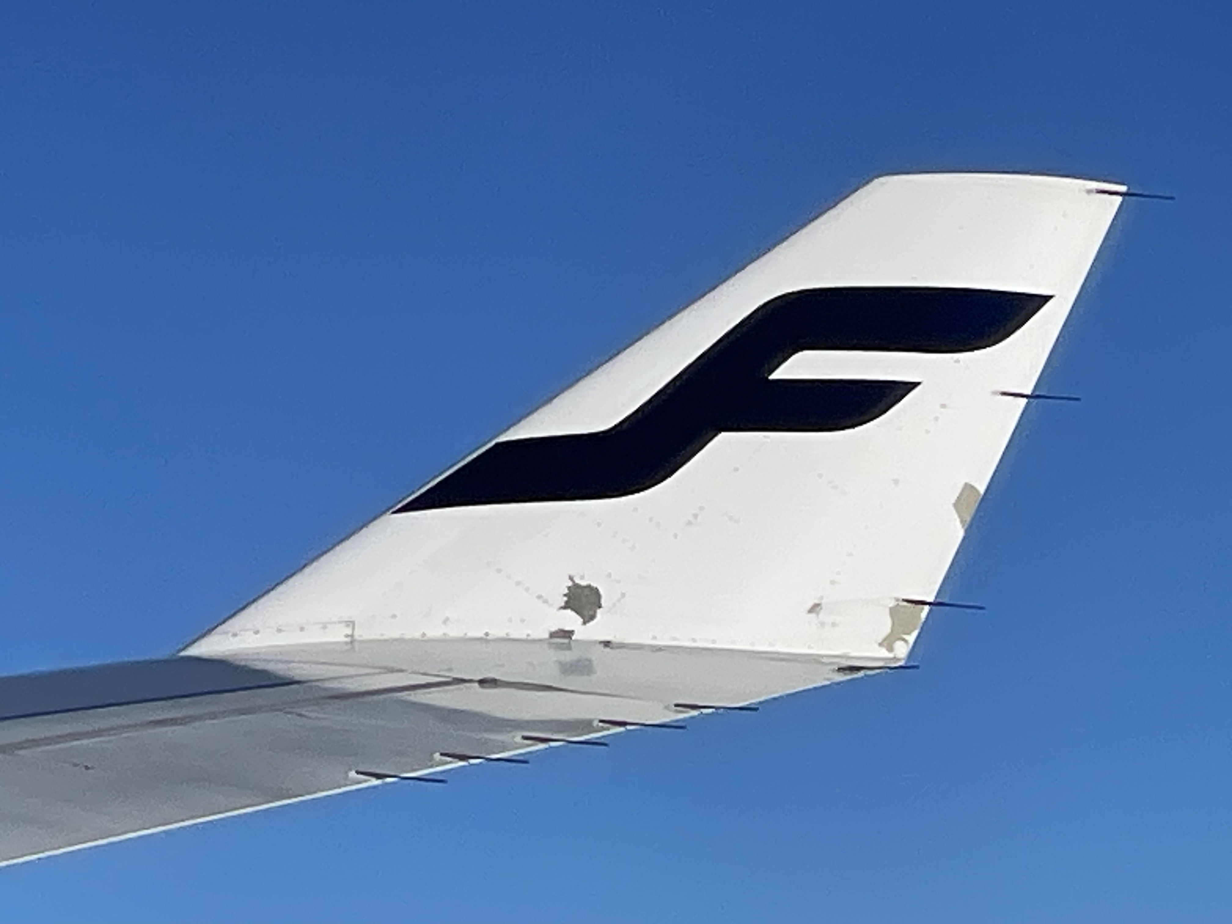 I was coming back from a business trip, on a flight from Amsterdam to Helsinki. I was kind of expecting an A350 ... I prefer to fly them if they happen to be on the routes I have to fly. It turned out to be an A330, however, which was very nice, too, and empty seat next to me at the back of the plane. Still wondered about the winglet paint being in less than ideal condition. I realize the paint nor the winglet are actually essential for flying.
