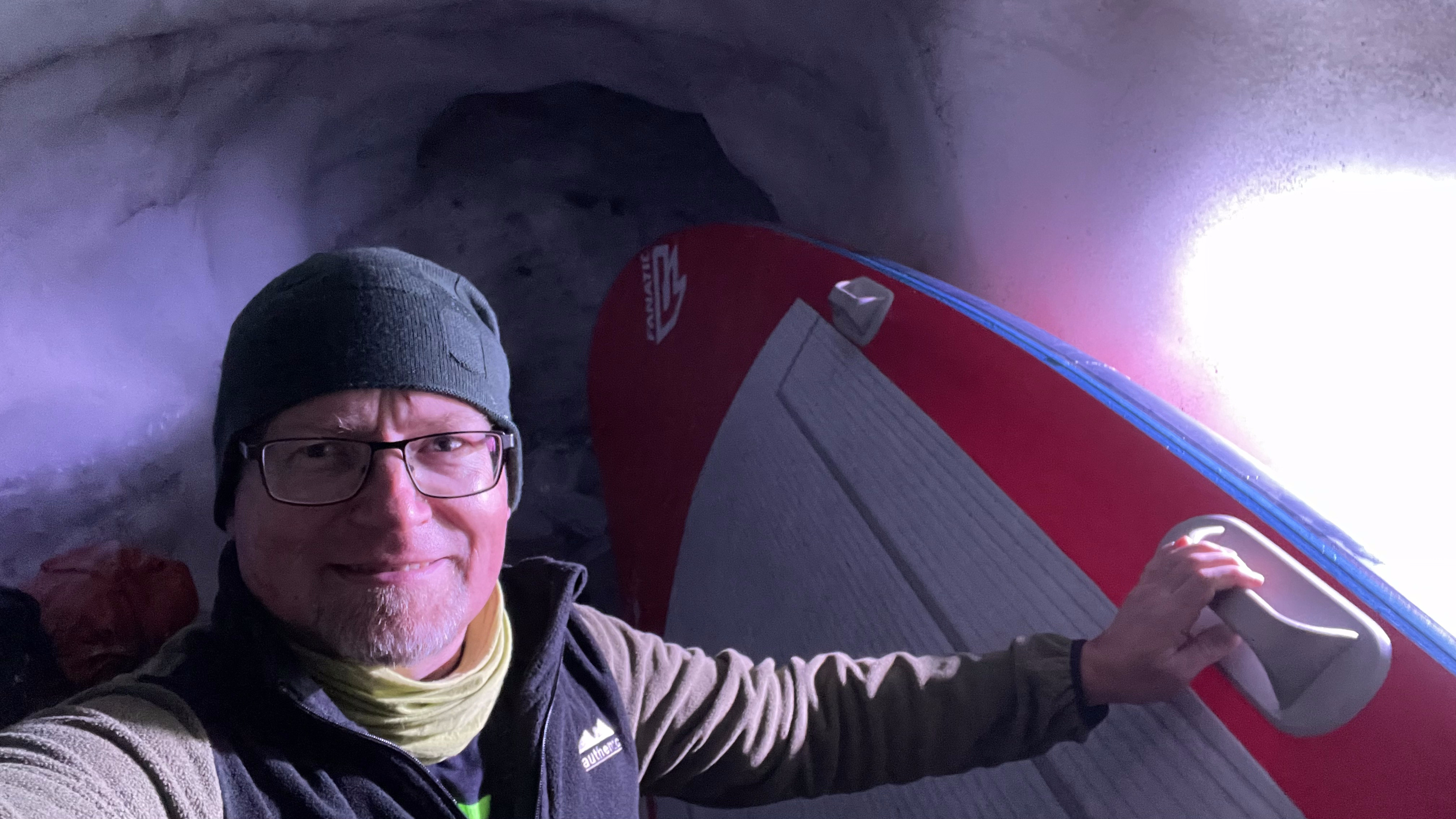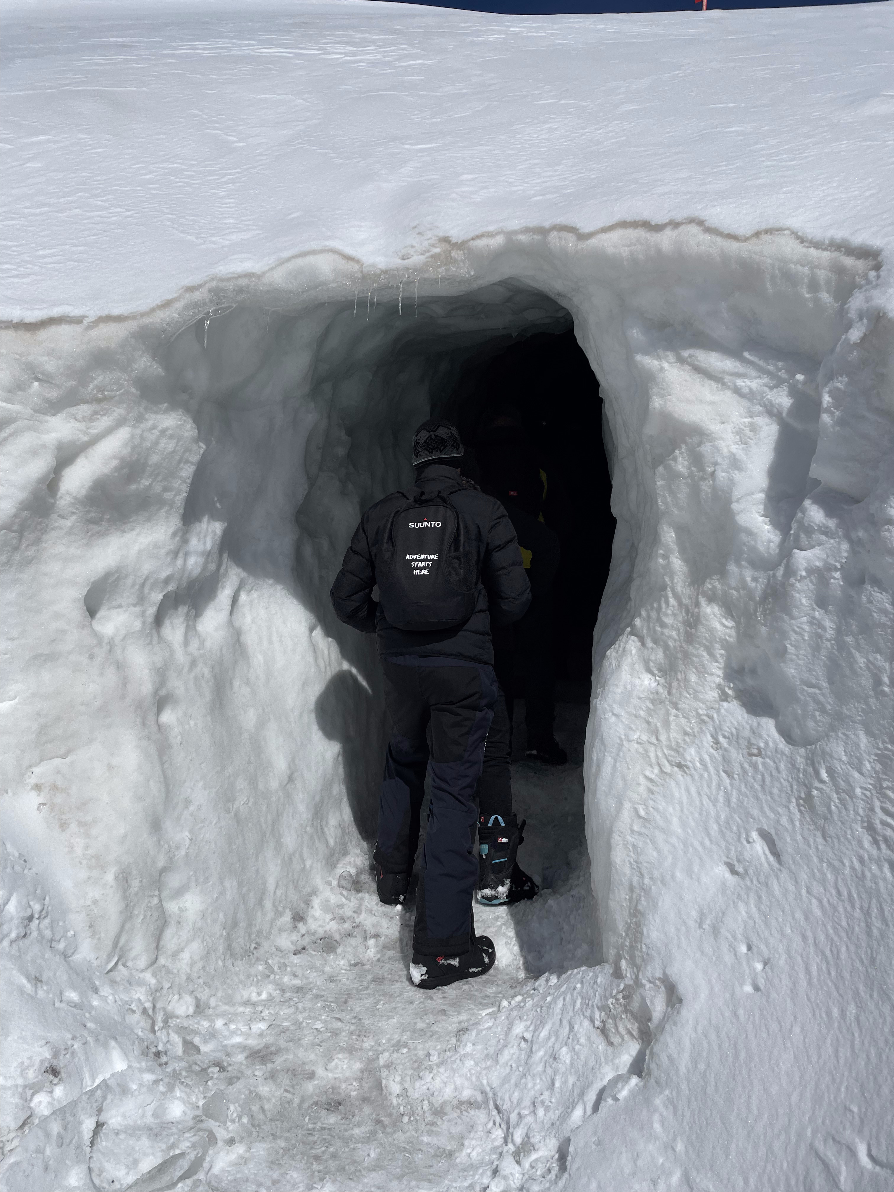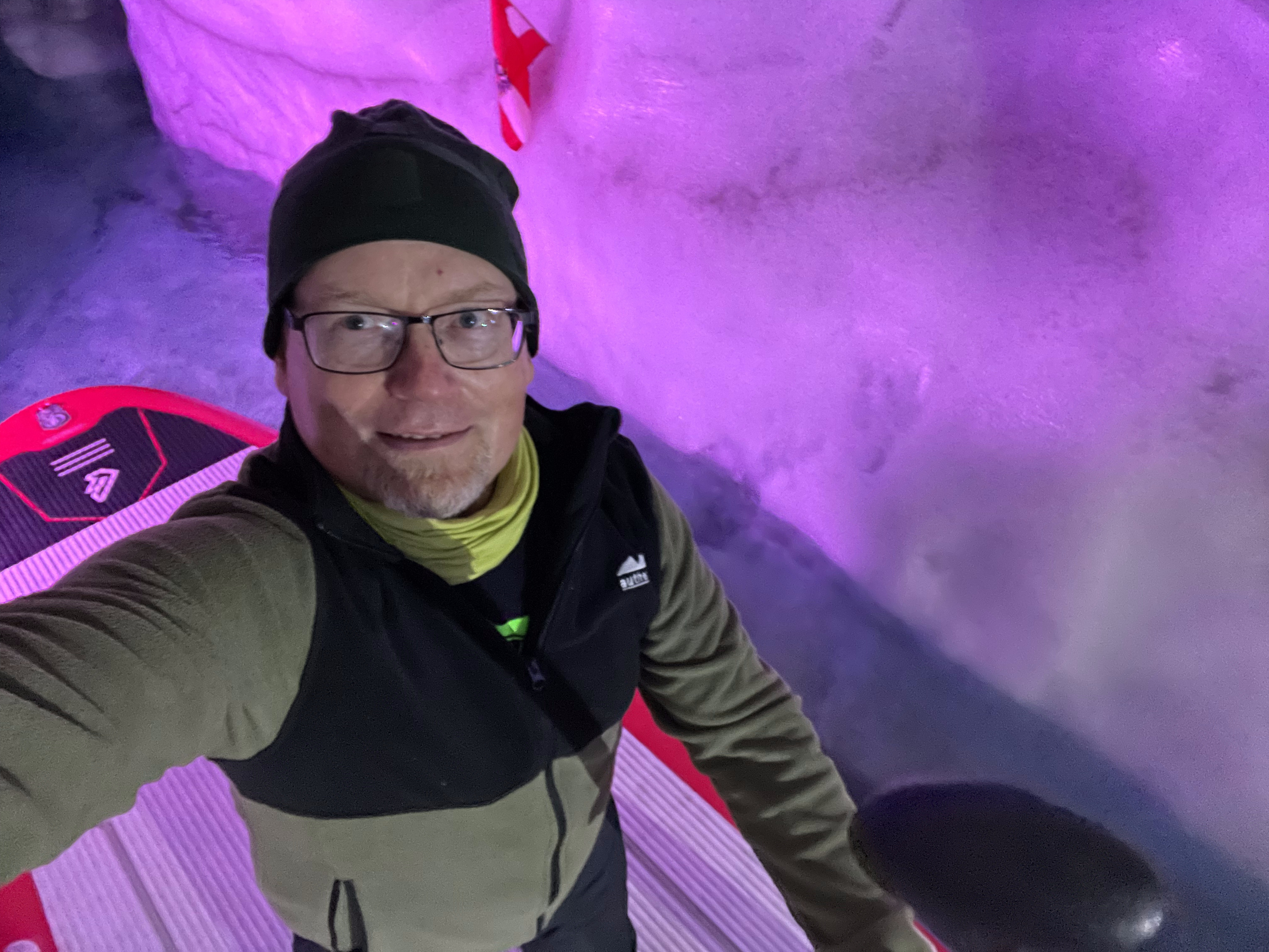 I had been to Eispalast before. It is an ice cave that tourists can visit, 30 meters under glacier, near the top of the Gefrorene Wand mountain in Hintertux, Austria. But when I saw they had an option for trying SUP boarding on the river or lake in the ice cave, I knew I had to go again.