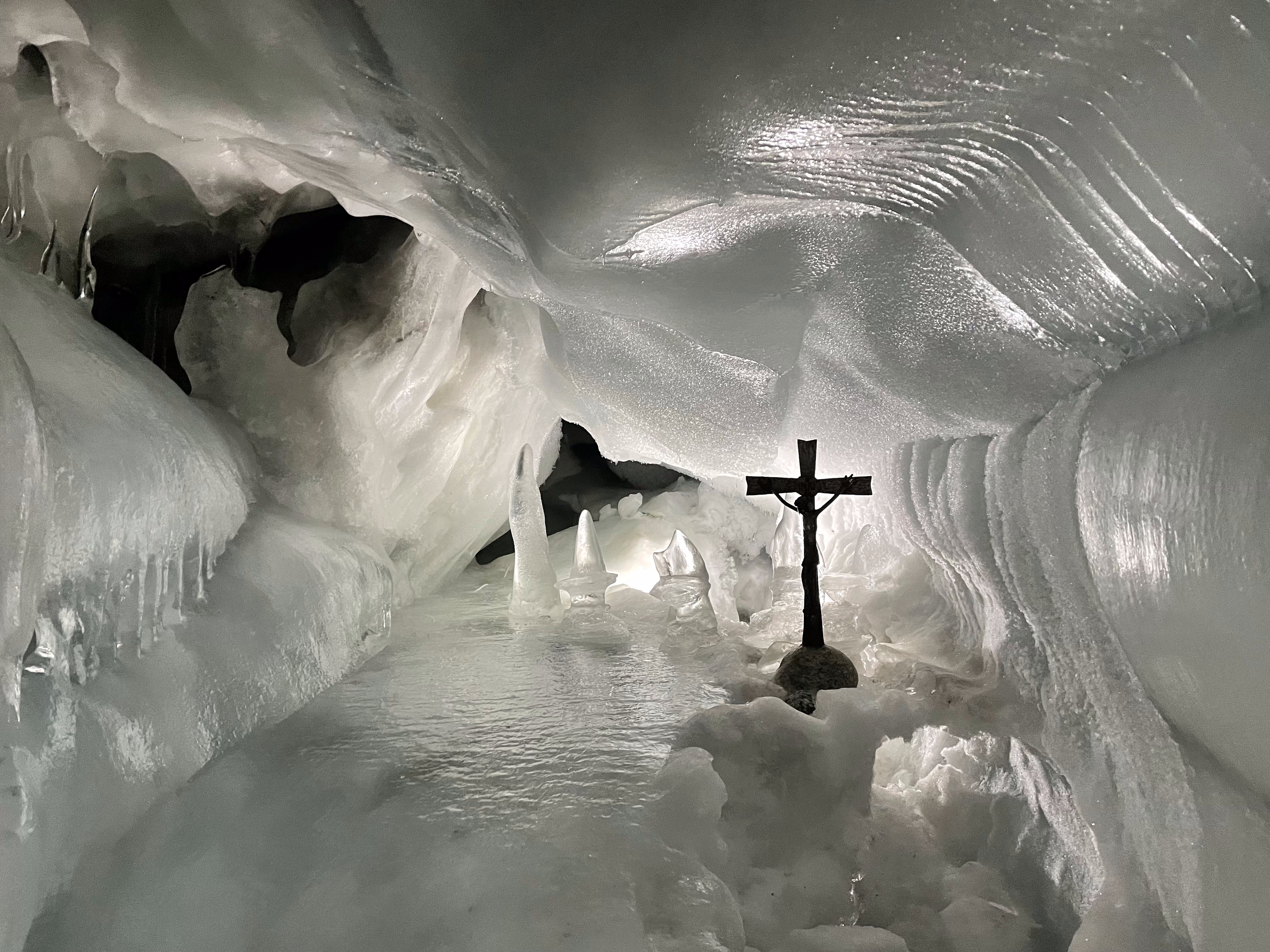 I also wanted to try 3D modelling parts of the cave, but it wasn't easy on a busy tour schedule. I in particular wanted to record the Eiskapellen, an ice chapel dedicated to three lost ski tourers.