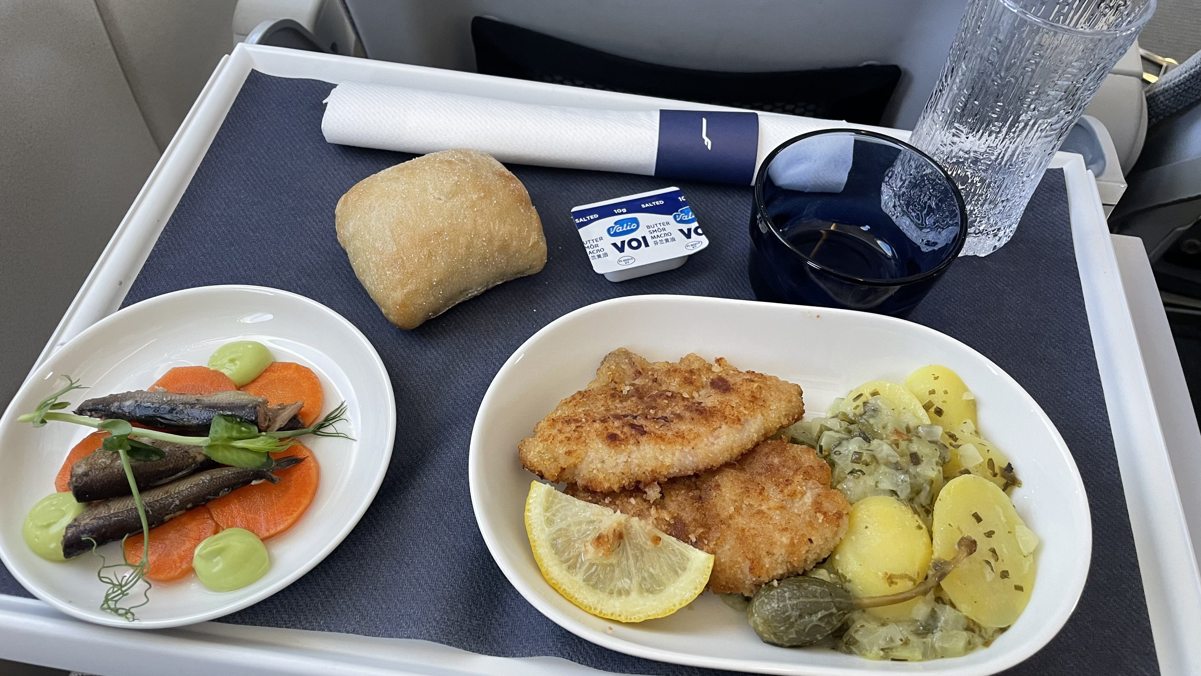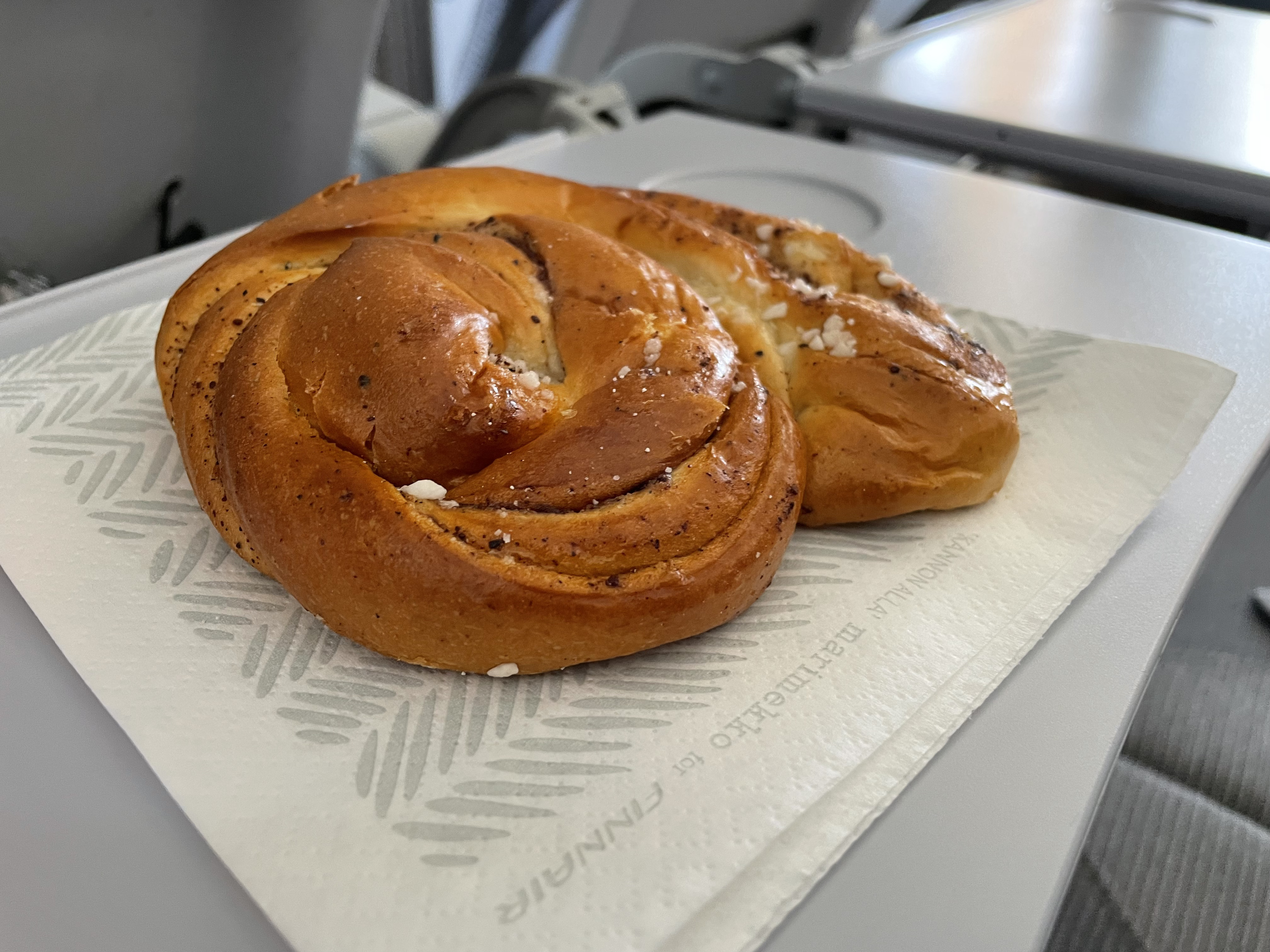 I took a Finnair flight from Split recently, upgraded myself on points to business class to try and stay away from the crowds in the back, given the again surging flu and covid infections... and since I need to be at the hospital for an operation soon, I can't afford to get sick. But, I was surprised how the business class service was improved by a very simple thing: after a meal, they served a bun, the "korvapuusti" (a cinnamon roll). And it was massive! Almost the size of the tray :-)