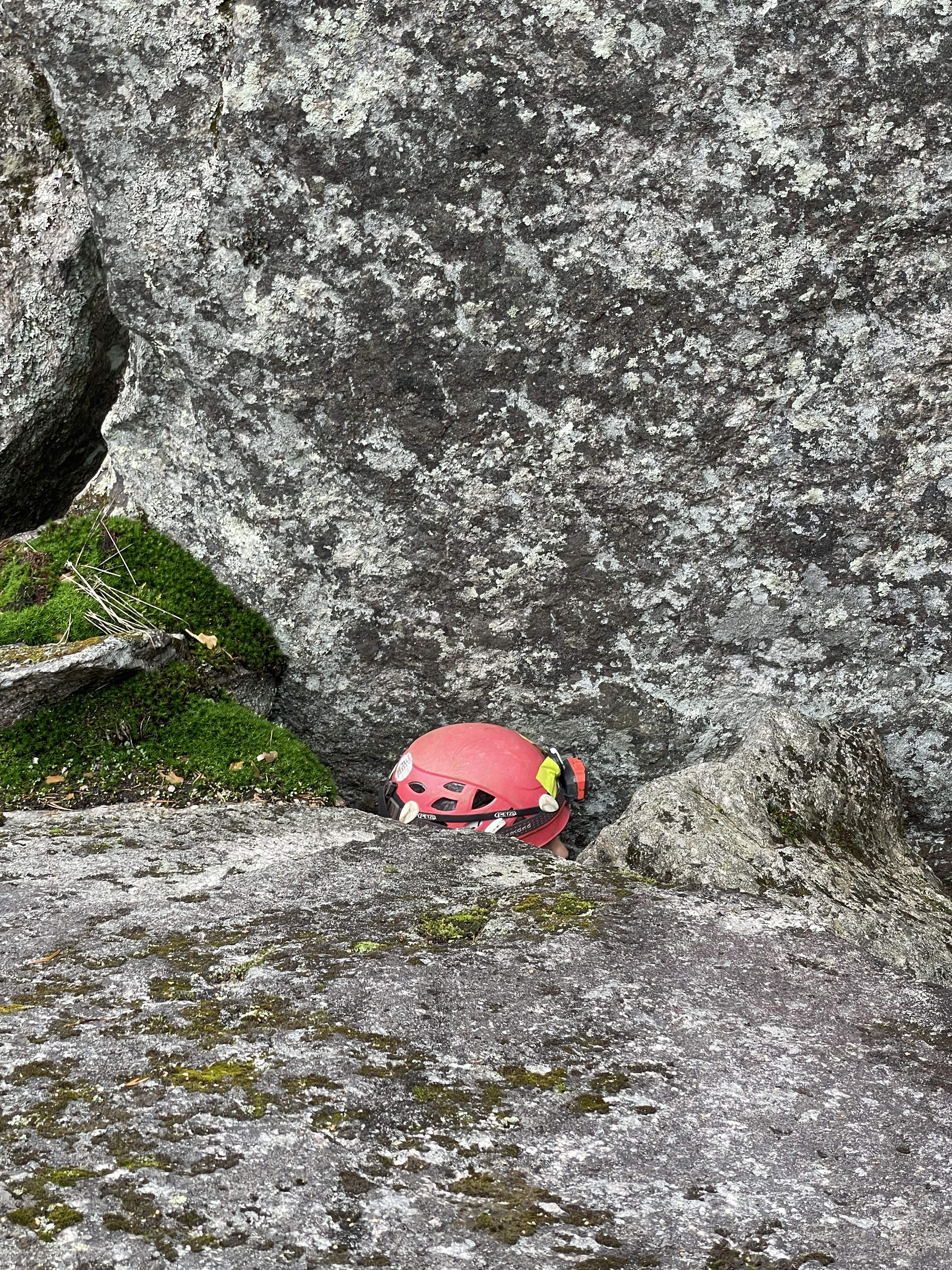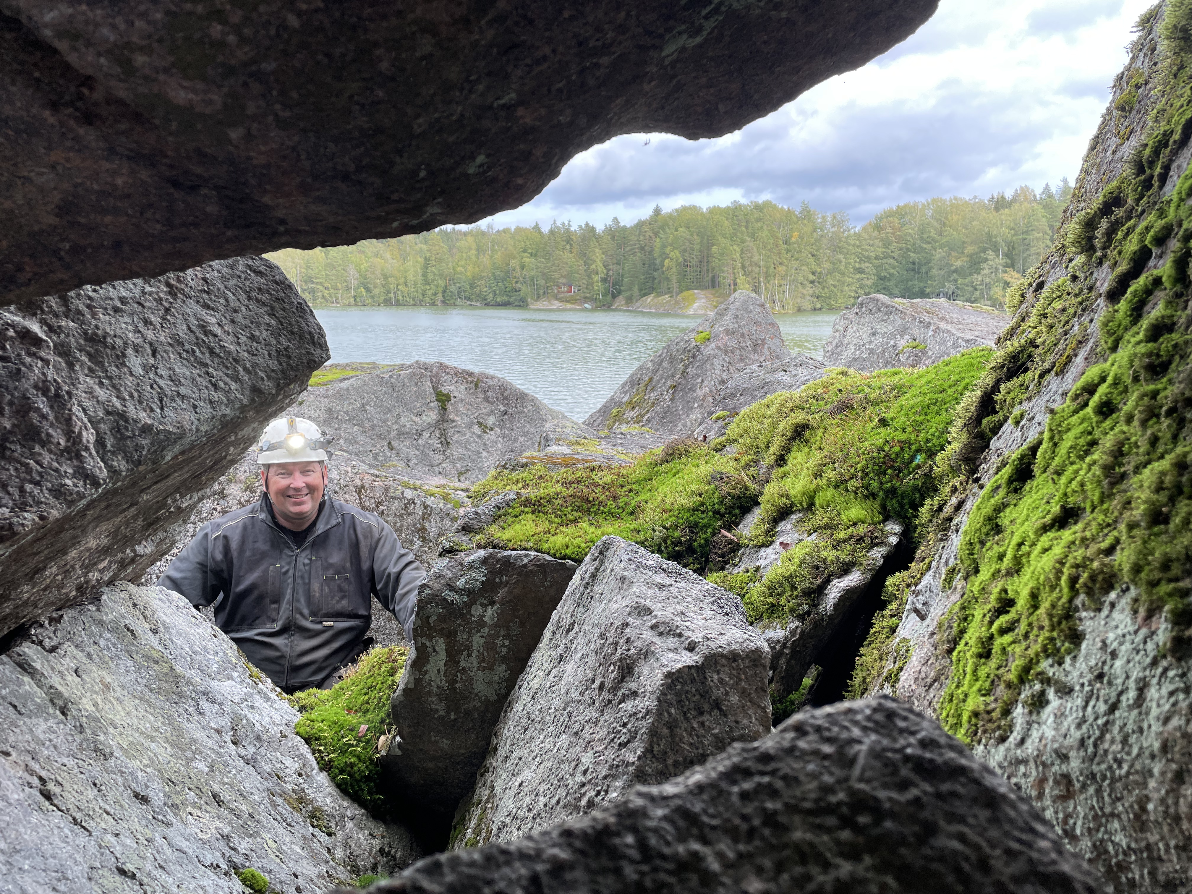 But the meal continues! The seventh course was the onion-shaped Högberget cave in Kirkkonummi. Not sure I know what the fuzz is about this cave. Onion looks... why is this so interesting? But the cave is otherwise super interesting. Actually, there are other similar shapes and rock forms around in the same neighborhood. And interestingly all are at the Litorina sea water level, so our theory is that these are ancient beach caves.