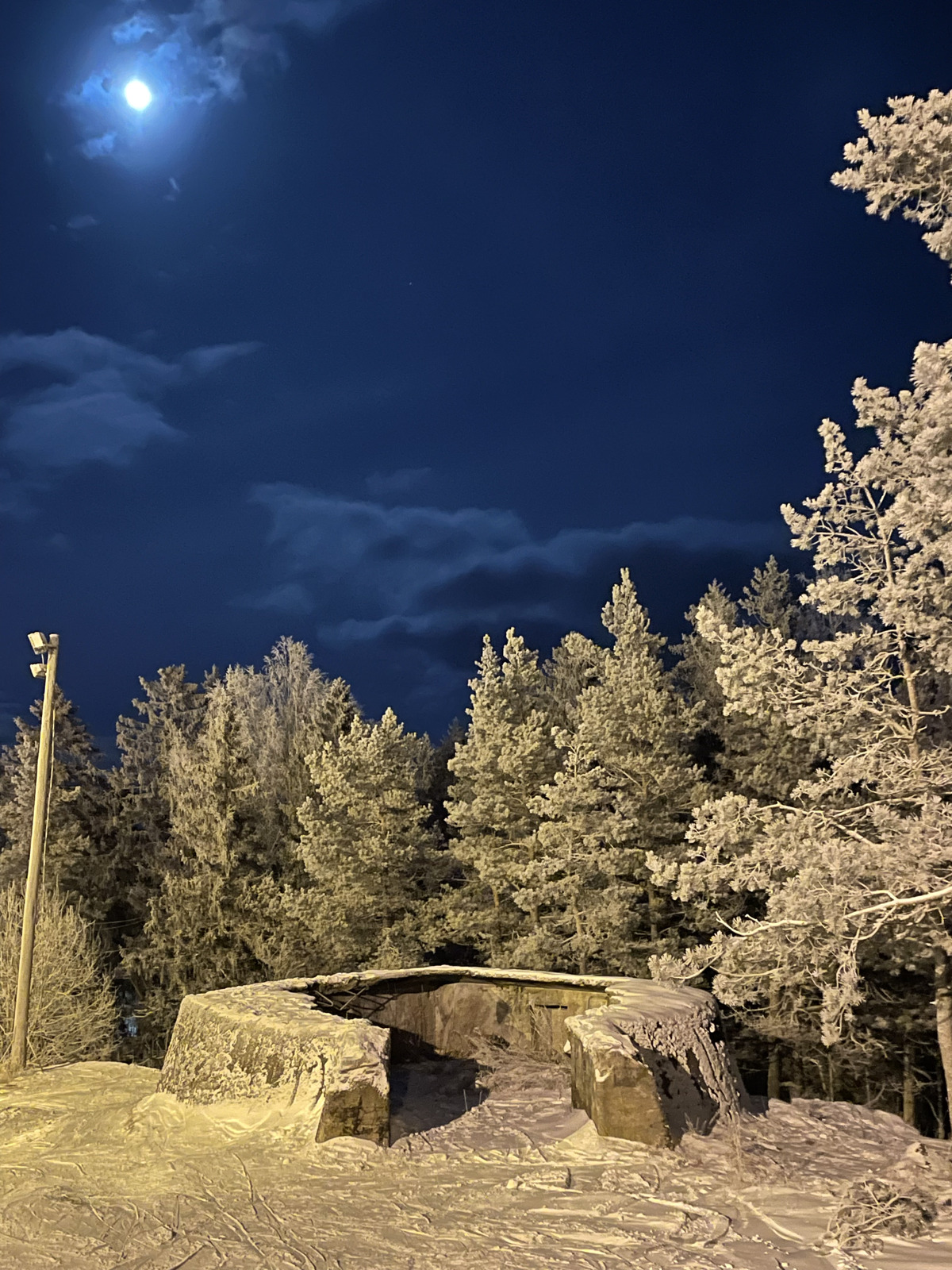 There's a steeper main slope and one side that goes to the skier's right in a roundabout way. Along the way there are some old concrete ruins. I was unable to find any information about this from the Internet, but to me they look like the concrete base for a gun position from some old war. But I have again not been able to confirm this anywhere. However, there's plenty of other history about Kokonniemi that you can read in Finnish here. Interesting that there's been some old burial sites, including one at the top of the hill (now no longer visible after the hill was raised some years ago).