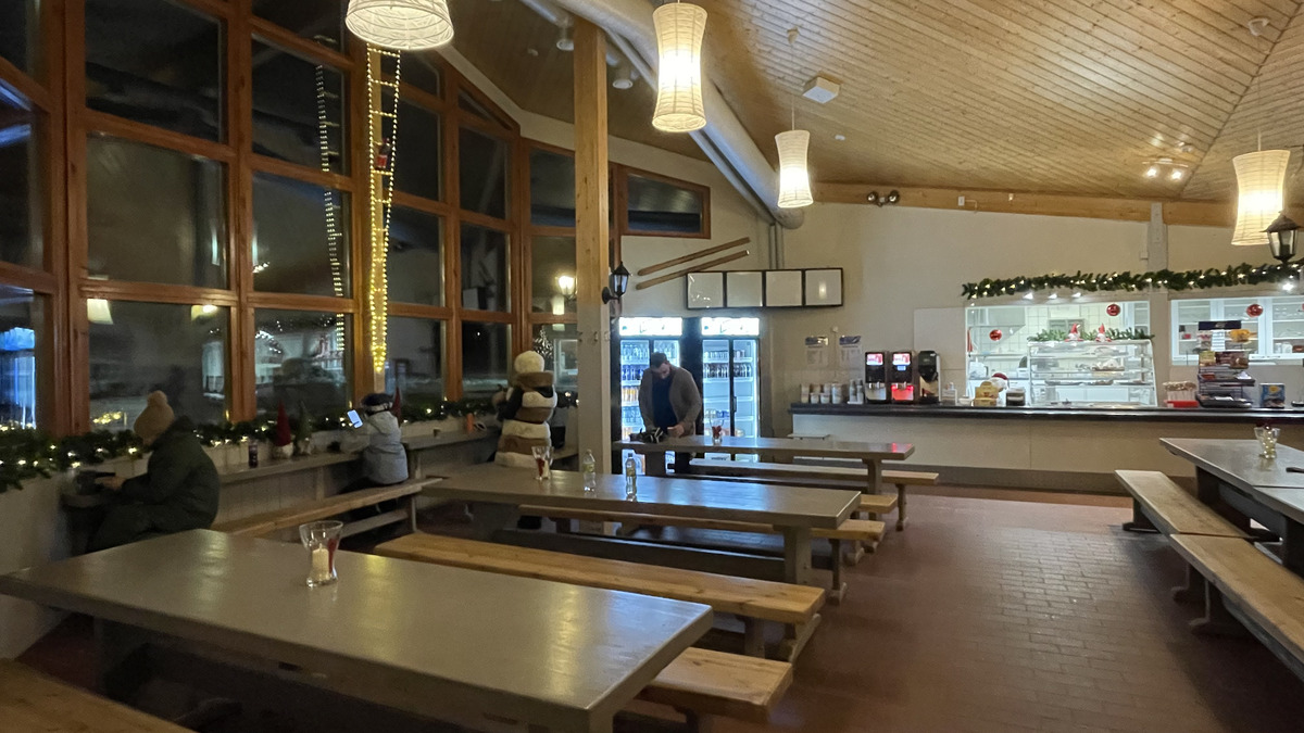 Usually, Finnish ski resort huts are depressing, but here there was a very nice cafeteria, with both indoor and outdoor space. Offerings food-wise were limited, however, more in the usual Finnish style. See my earlier reporting about this discrepancy to French ski resorts here (alt. link) :-) But the hut was nicely decorated: