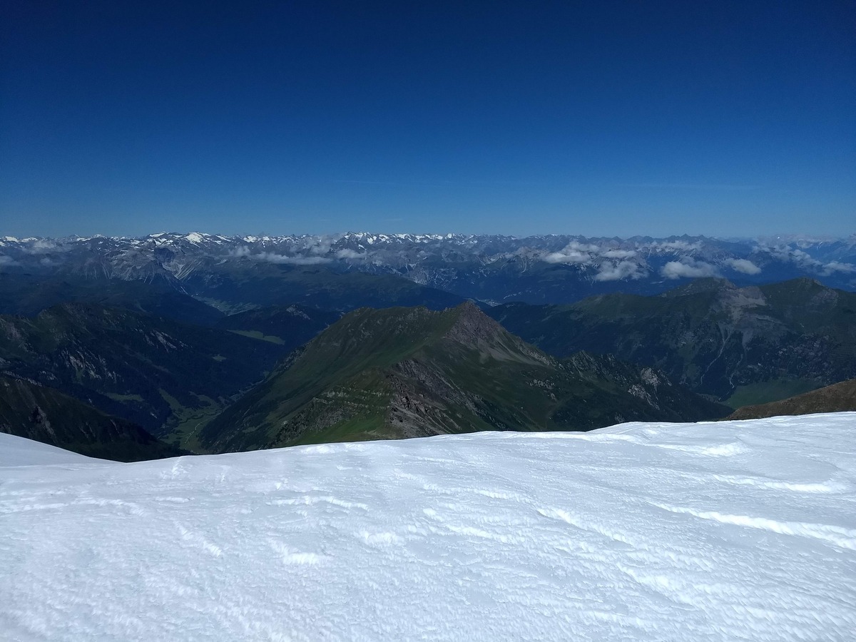 Up top, chilling out above the Hintertuxer Gletcher slopes. Very sunny, very nice, great snow. At least in the morning and outside the slopes.