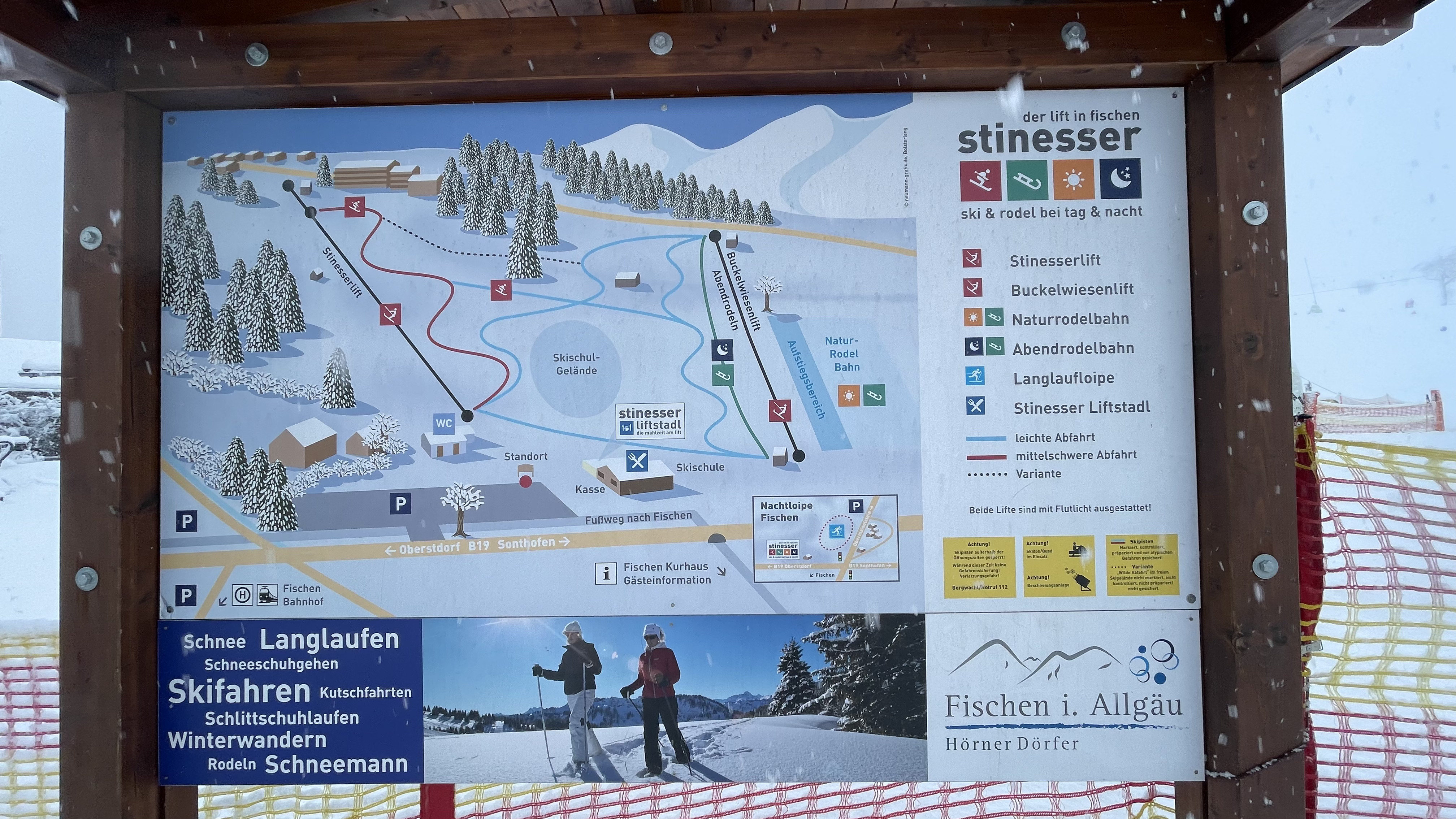 Stinesser Lifte is a ski hill near our hotel near Obertsdorf on our January visit to German and Austrian ski resorts. A maybe a "hill", it is just a small hill. Maybe even smaller than my local hill back home. Ah, no, according to skiresort.info it still has 130 meter vertical difference, three times as much as my local hill :-)