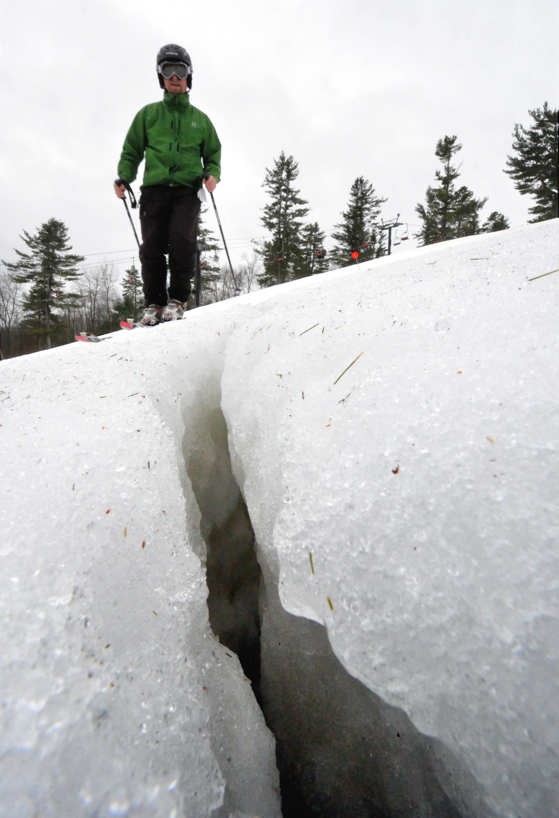 Another perspective to the Nashoba crevasseWhat about the crevasses? The melting snow and ice had created cracks in the ice at Nashoba. But how large they were... the first and and last picture on this blog entry is taken from the same crevasse. What a difference perspective makes on a 10mm lens! For those that have not heard of Nashoba, its a local hill outside Boston, maybe 100 feet high.