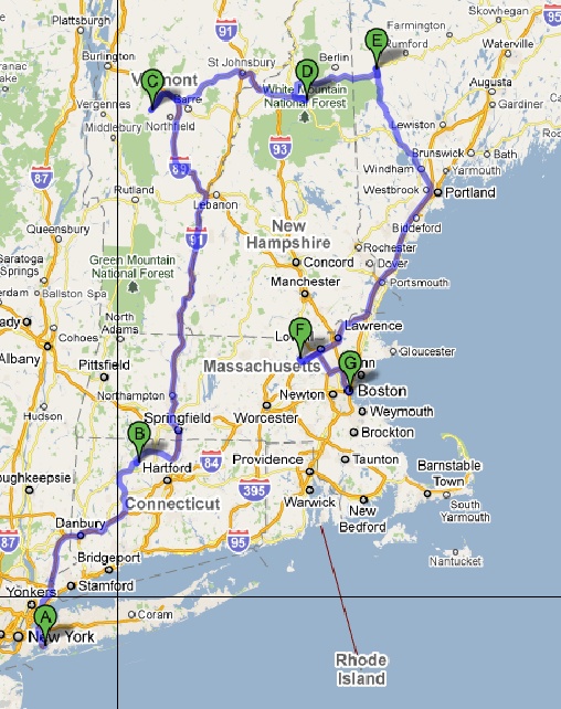 I found all my hotels from the roadside when I needed them, staying first somewhere along the I-91 for the first night, and then in Bethel, Maine for the second night. In Bethel I can recommend the Chapman Inn for its excellent breakfast and friendly service, not to mention the open Wi-Fi.