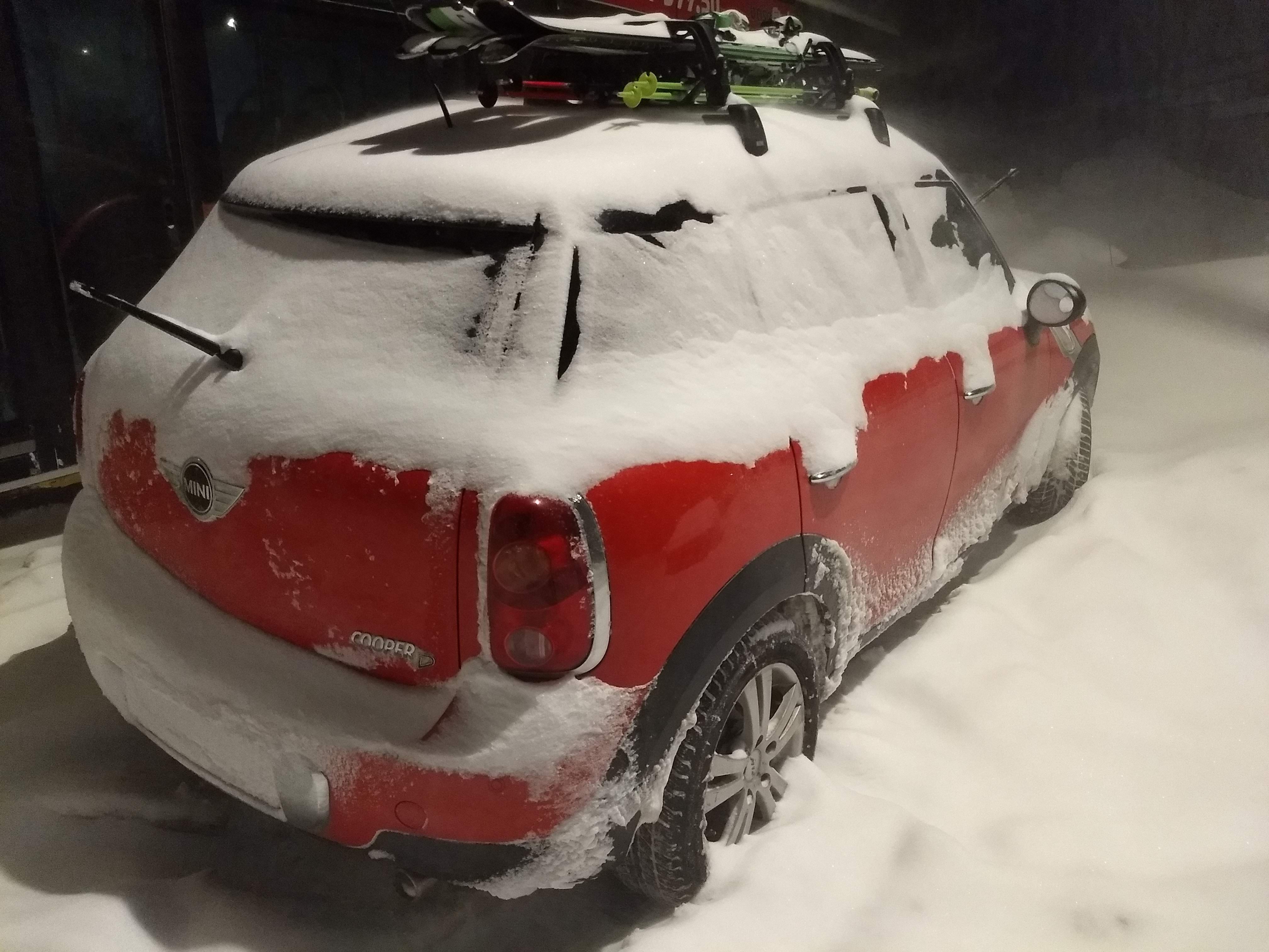 To get to Kopaonik, one has to drive. It was fun watching the various cars in the heavy snowfall. My car was a brand new Mercedes (even if I had reserved the smallest possible car, thanks, Sixt!) but its sensors kept going crazy. It was not too difficult to see why, the outside of the car was cover in literally an inch of ice.