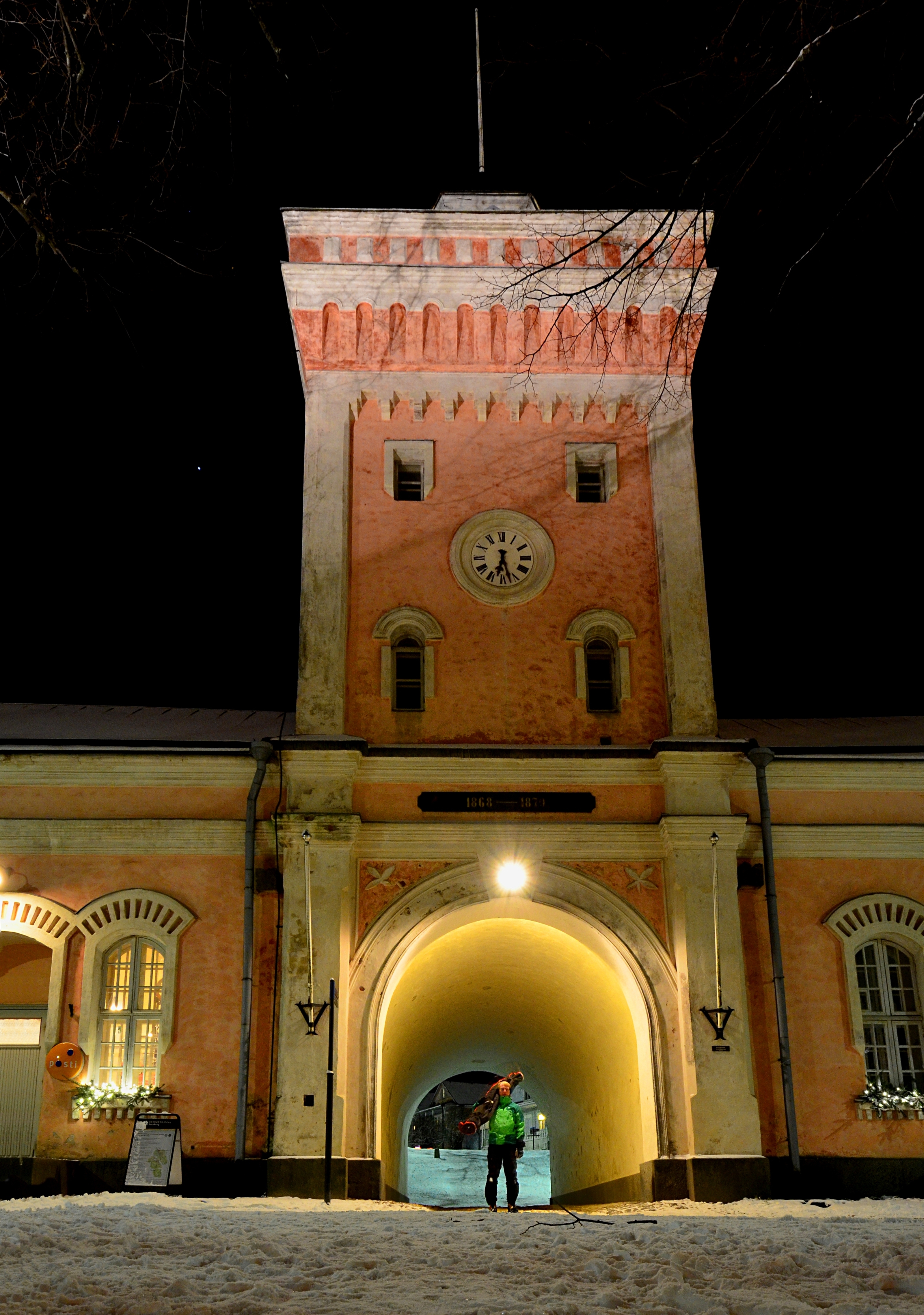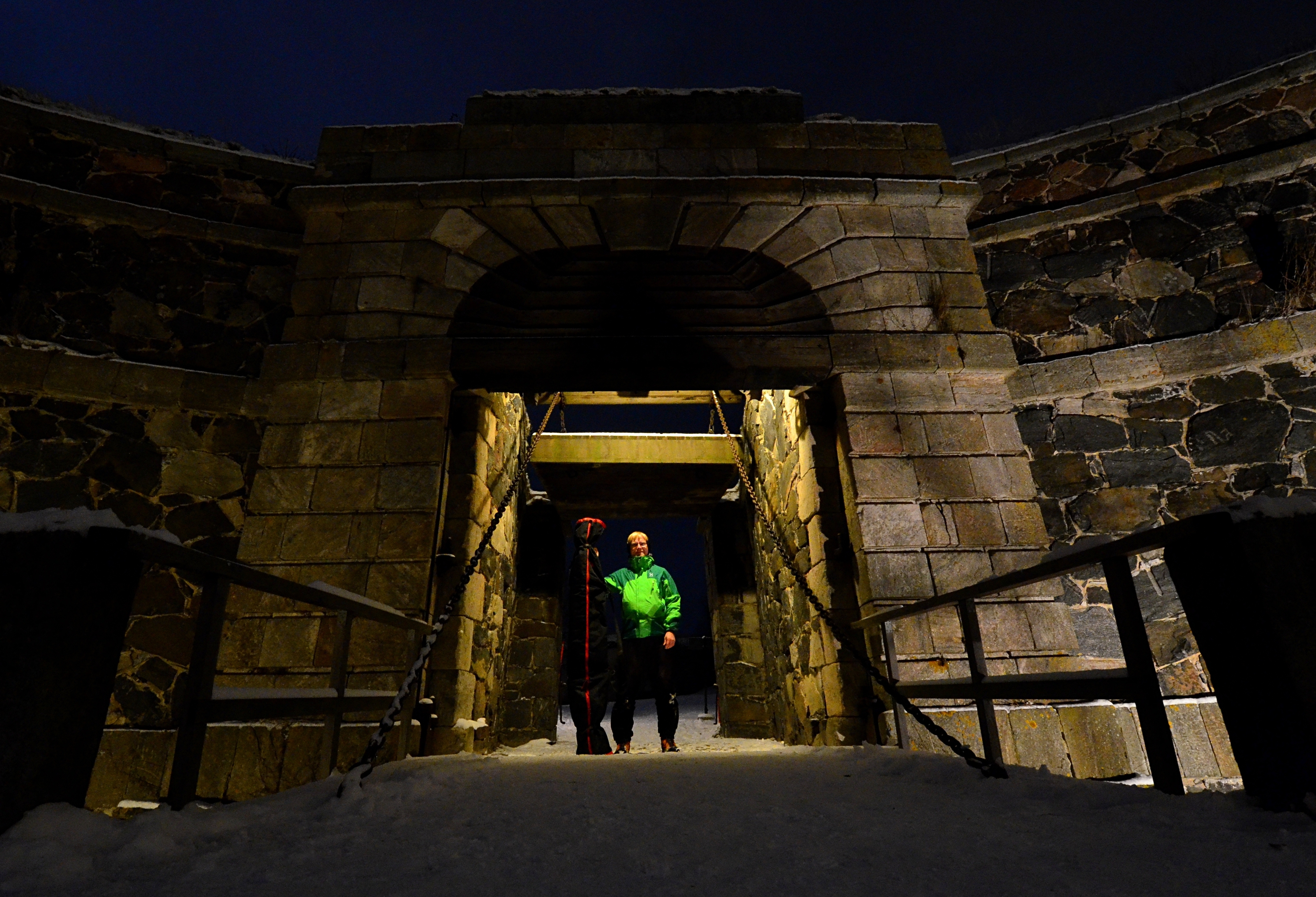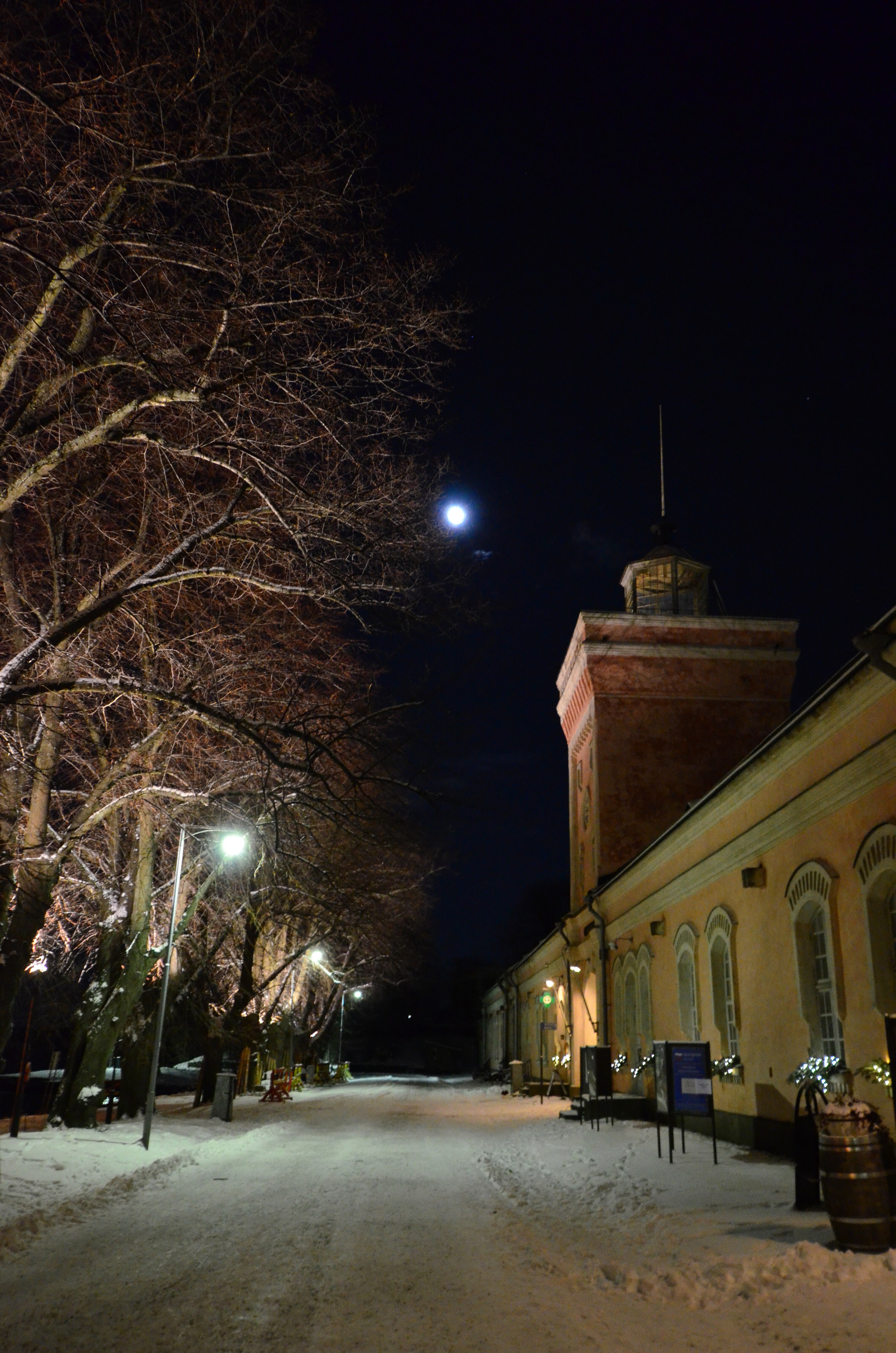 Yet, it makes perfect sense. I am in Suomenlinna, a fortress island outside Helsinki. Suomenlinna is one of the most beautiful places in Helsinki and a particularly good place for photography in snowy winter nights. Moreover, I really needed the exercise and I could not motivate myself to go out to the darkness unless there was something interesting.