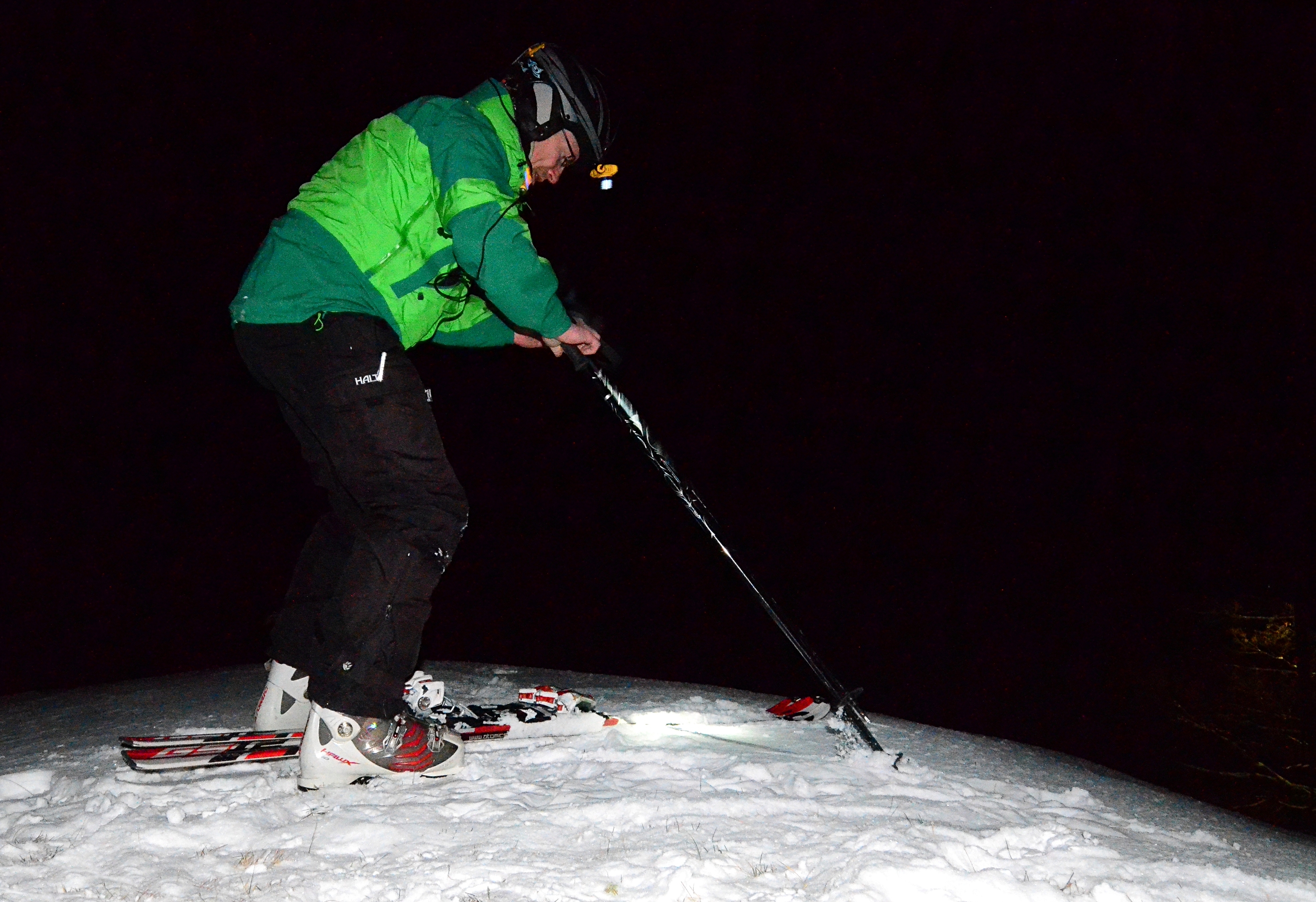 This makes absolutely no sense. Spending four hours to make one run down a hill of ten meters. And destroying my skis in the process.