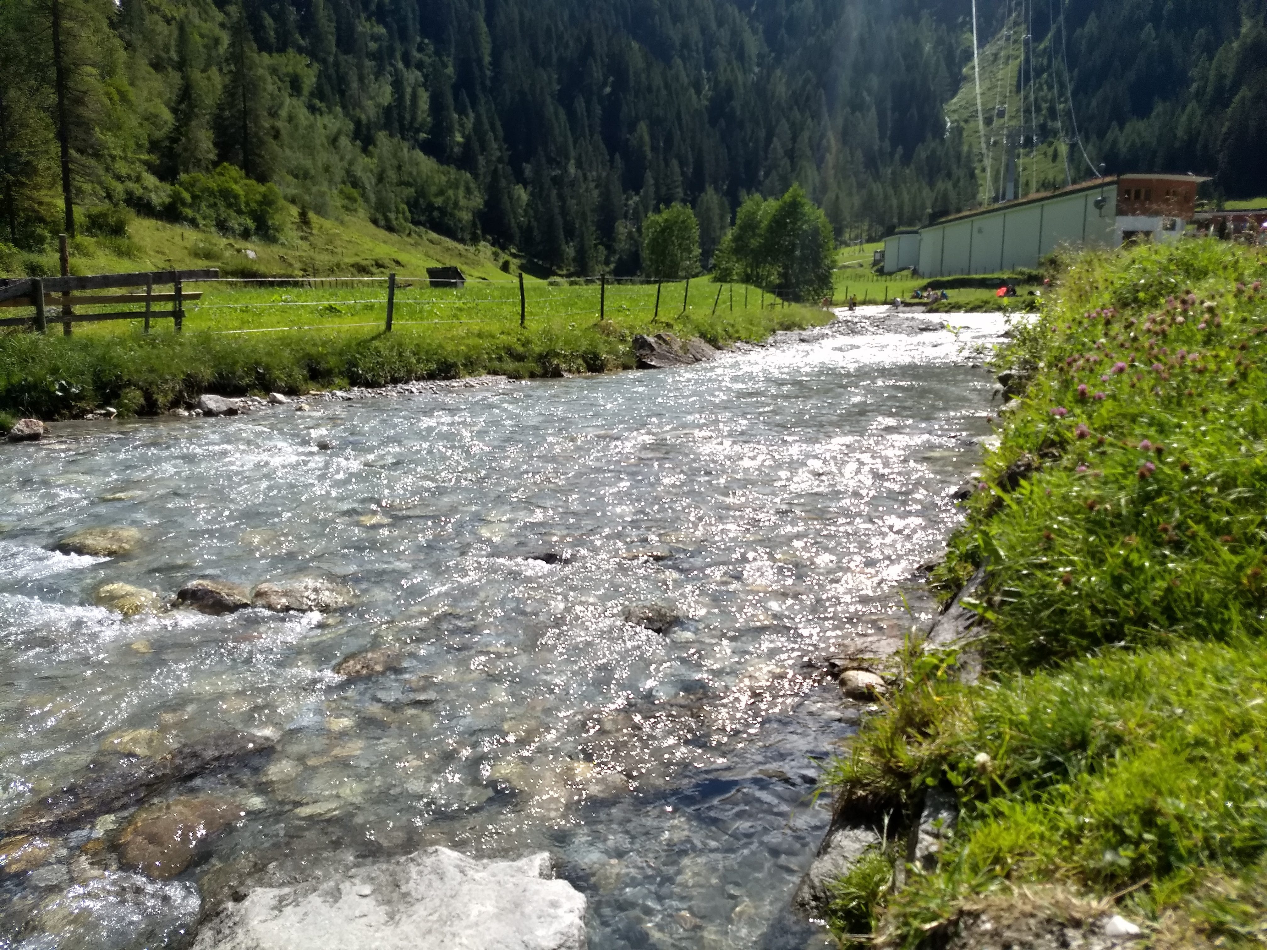 But boy was it refreshing! No sign of the green-blue algae we had been suffering from in Finland. This water was freshly made, and just a few degrees, probably melted in the last hour from the glaciers above the valley :-)