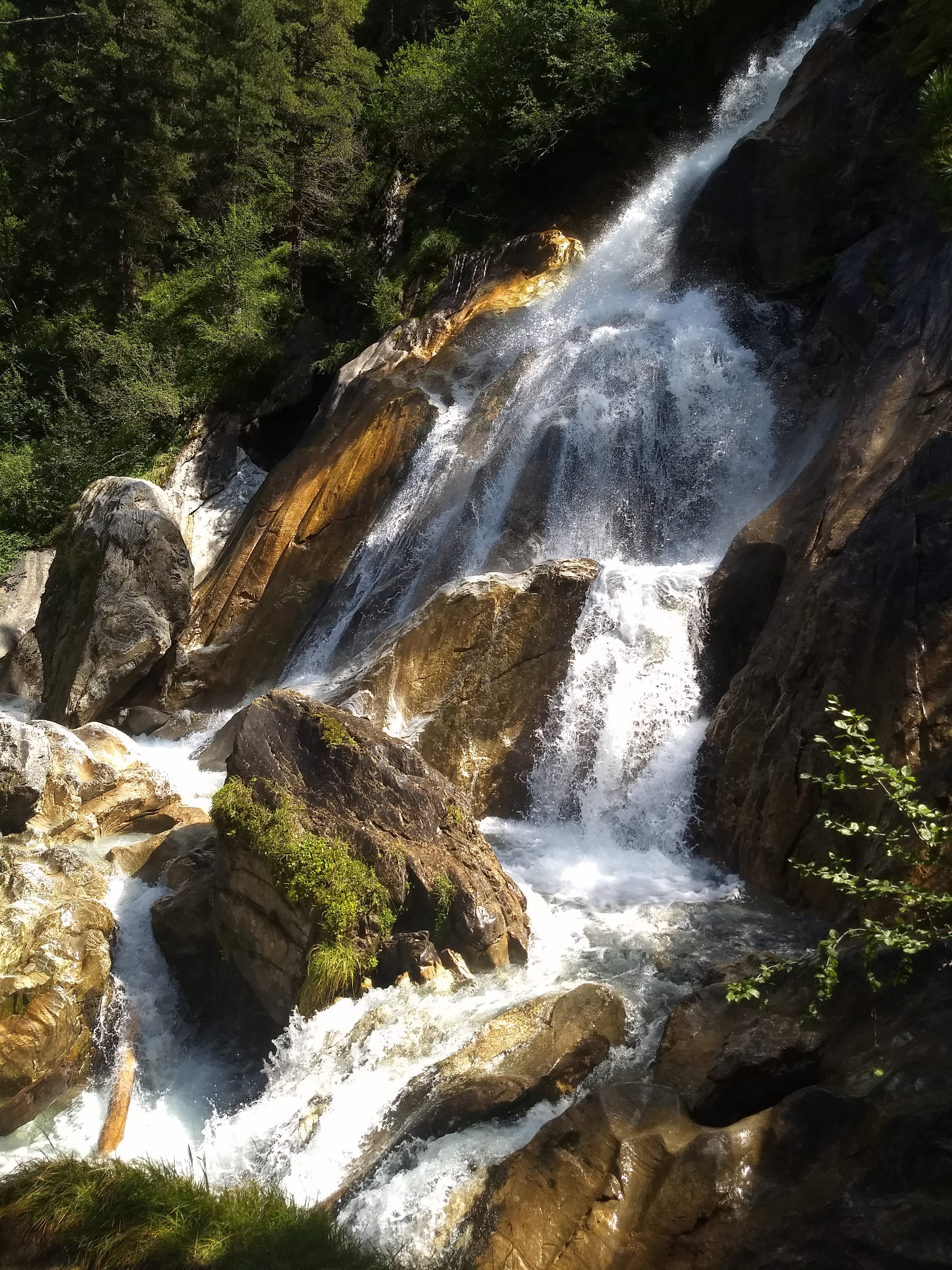 What do you need after a hard day of skiing on the glacier? A small refreshening, perhaps? I wanted to swim at the waterfall in Hintertux, but it turned out to be both forbidden and not feasible. However, the water from the glaciers falls through the waterfall and then onto the Tuxbach, the river running through the Hintertux valley.
