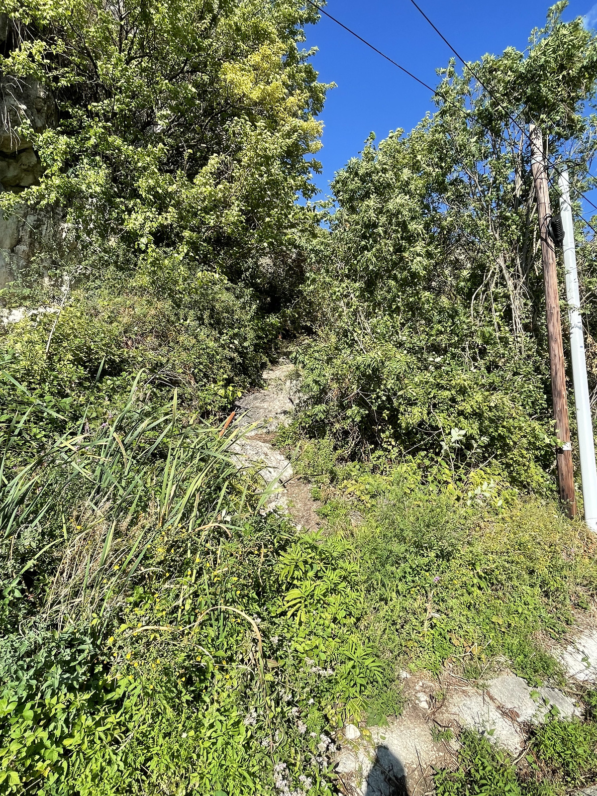 Here's a view from the wrong path towards the river. Very nice, but I don't recommend, it is too steep, the rocks are beginning to be unstable under your feet.
