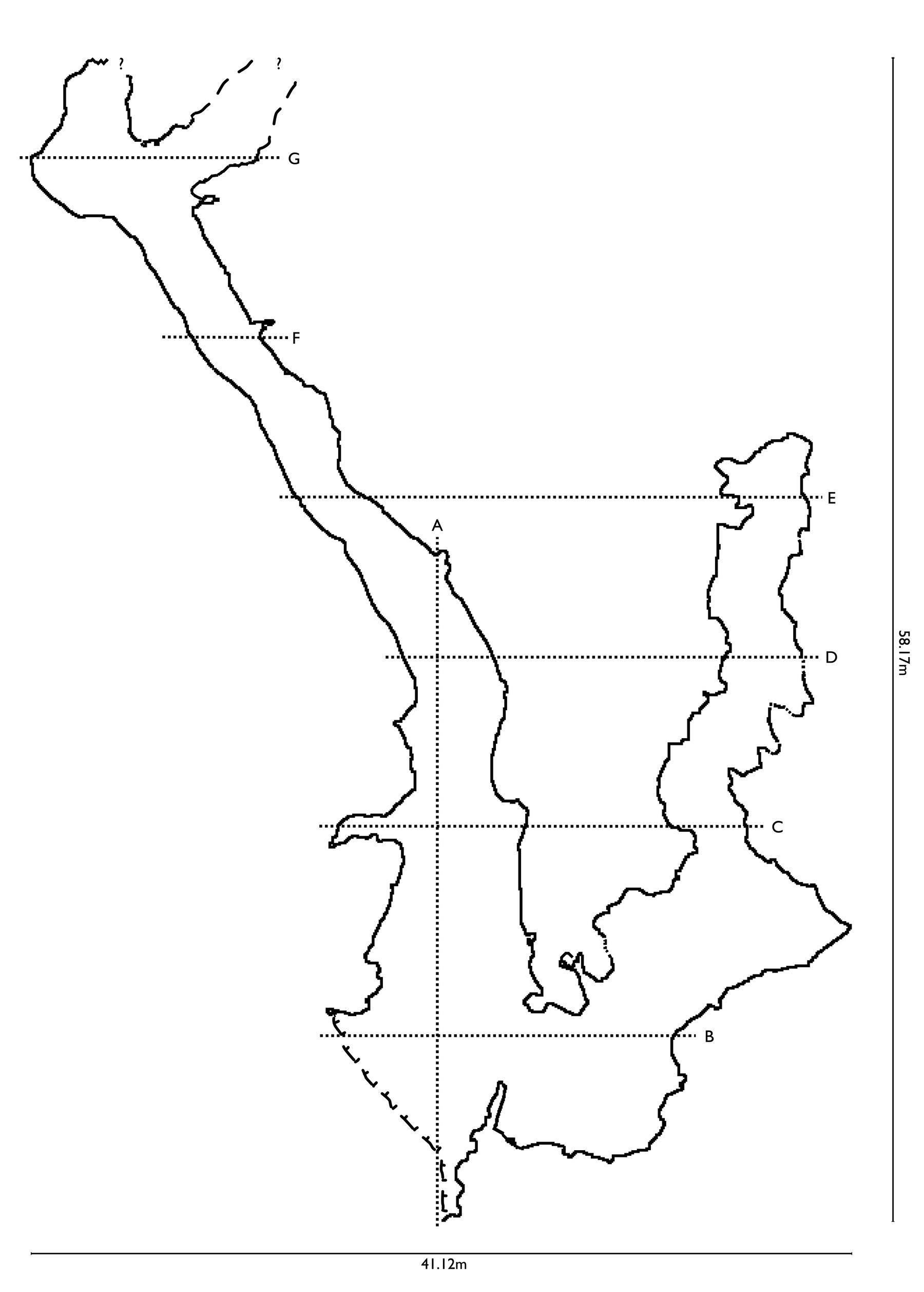 I scanned both caves using my iPhone's lidar sensor, and then processed the resulting 3D models to a plan view map, like here for the main cave:
