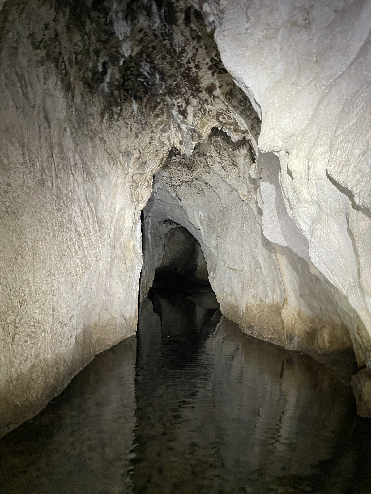 Here's what the water-filled cave looks like. While the water level is, well, level, the bottom isn't, there were shallower and deeper parts.