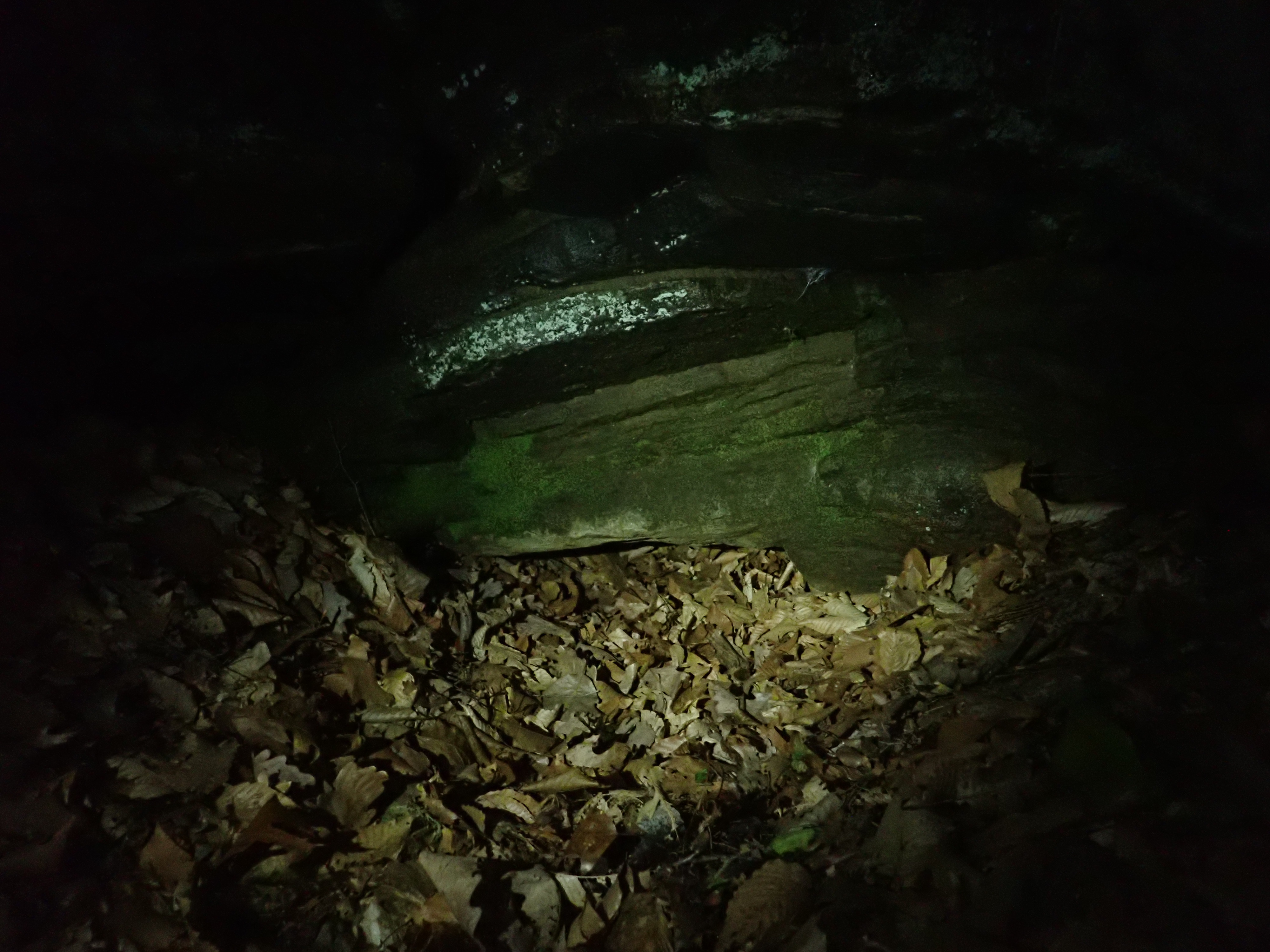 After some searching, I finally managed to find this place at roughly the coordinates N 40.0434 W 75.2132. However, as I entered the cave in the darkening evening, the thunderstorm headed to Philadelphia started to be threatening. I was worried about flooding in the deep canyon I was in. And I was worried about the computer I was carrying in my backpack for not wanting to leave electronics in the parked car... at some point I started running and managed to get to the car with only about 1 minute of rain falling on me.