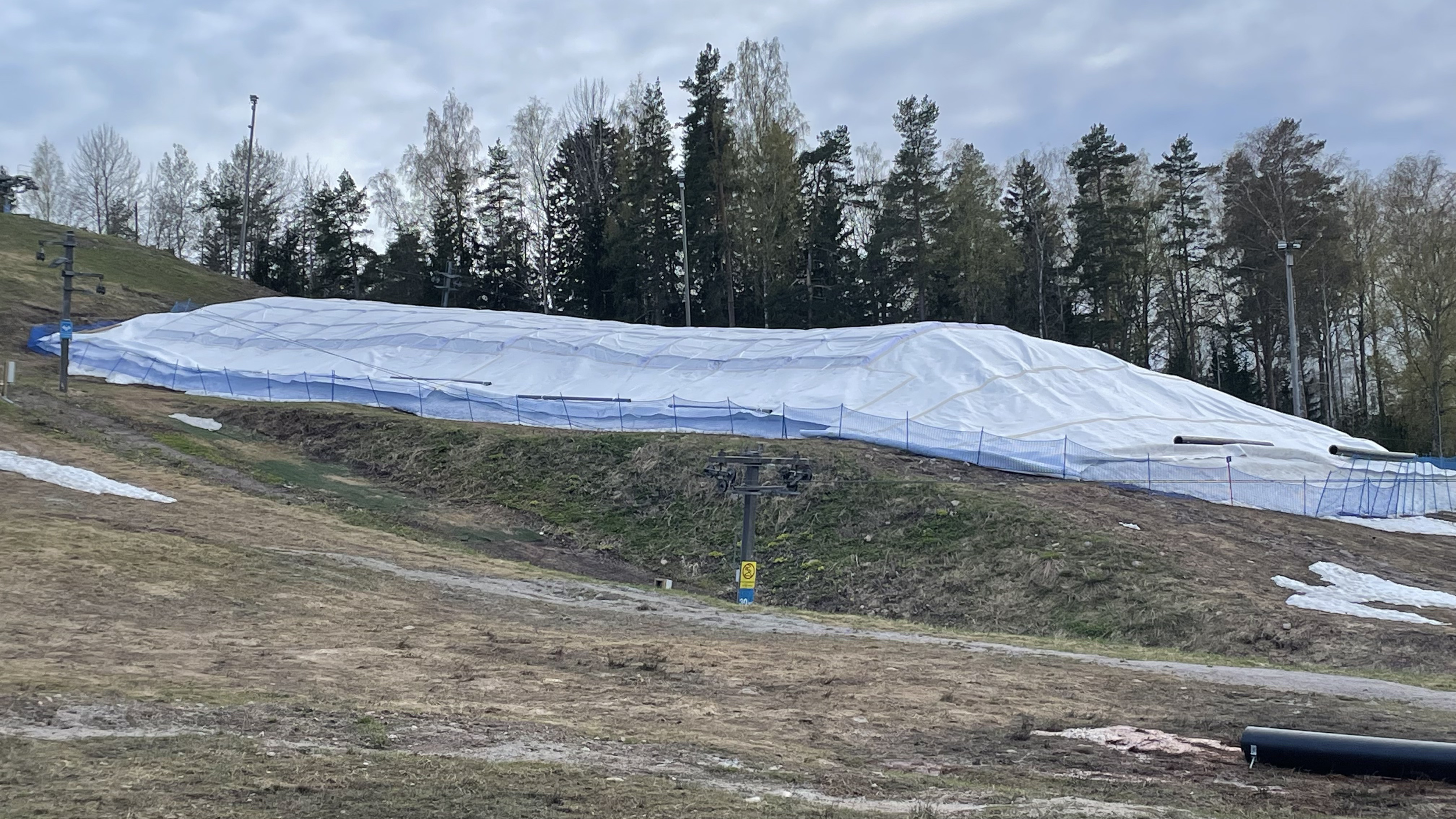 There's an article about the stored snow in Helsingin Sanomat. There's a Finnish company, Snow Secure, that is specialized on snow storage solutions. First year's storage is 50-100K "introductory price" :-)