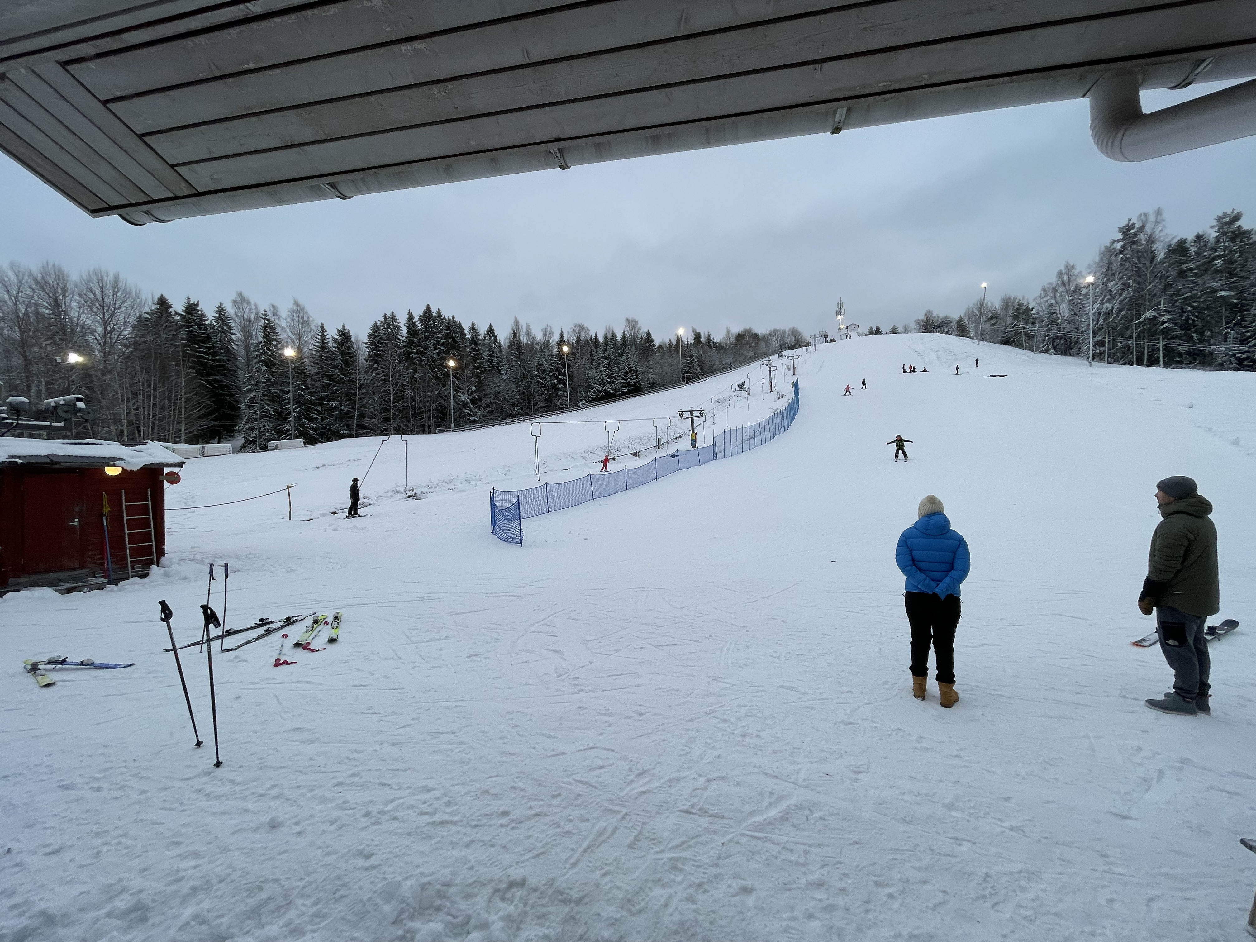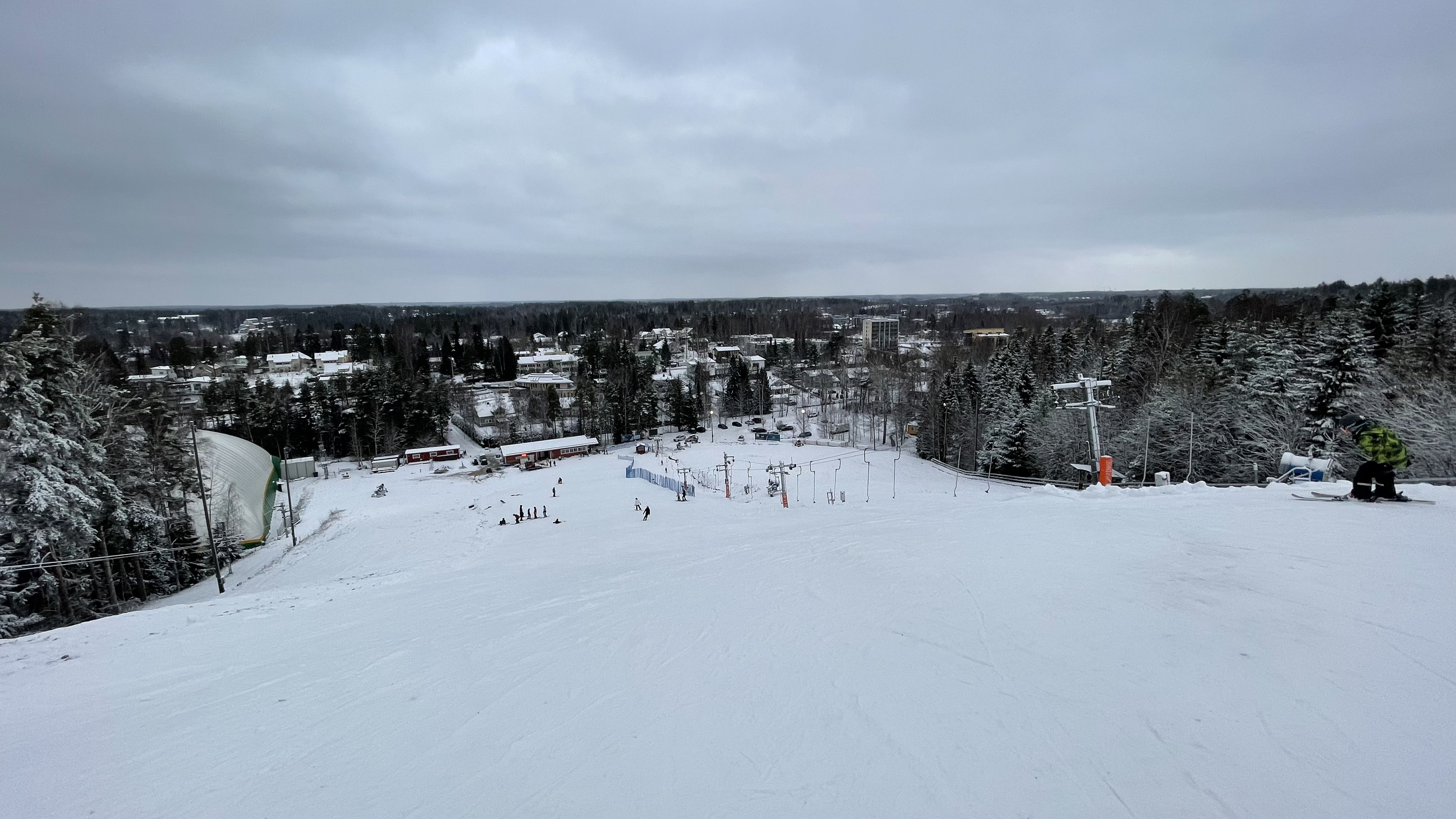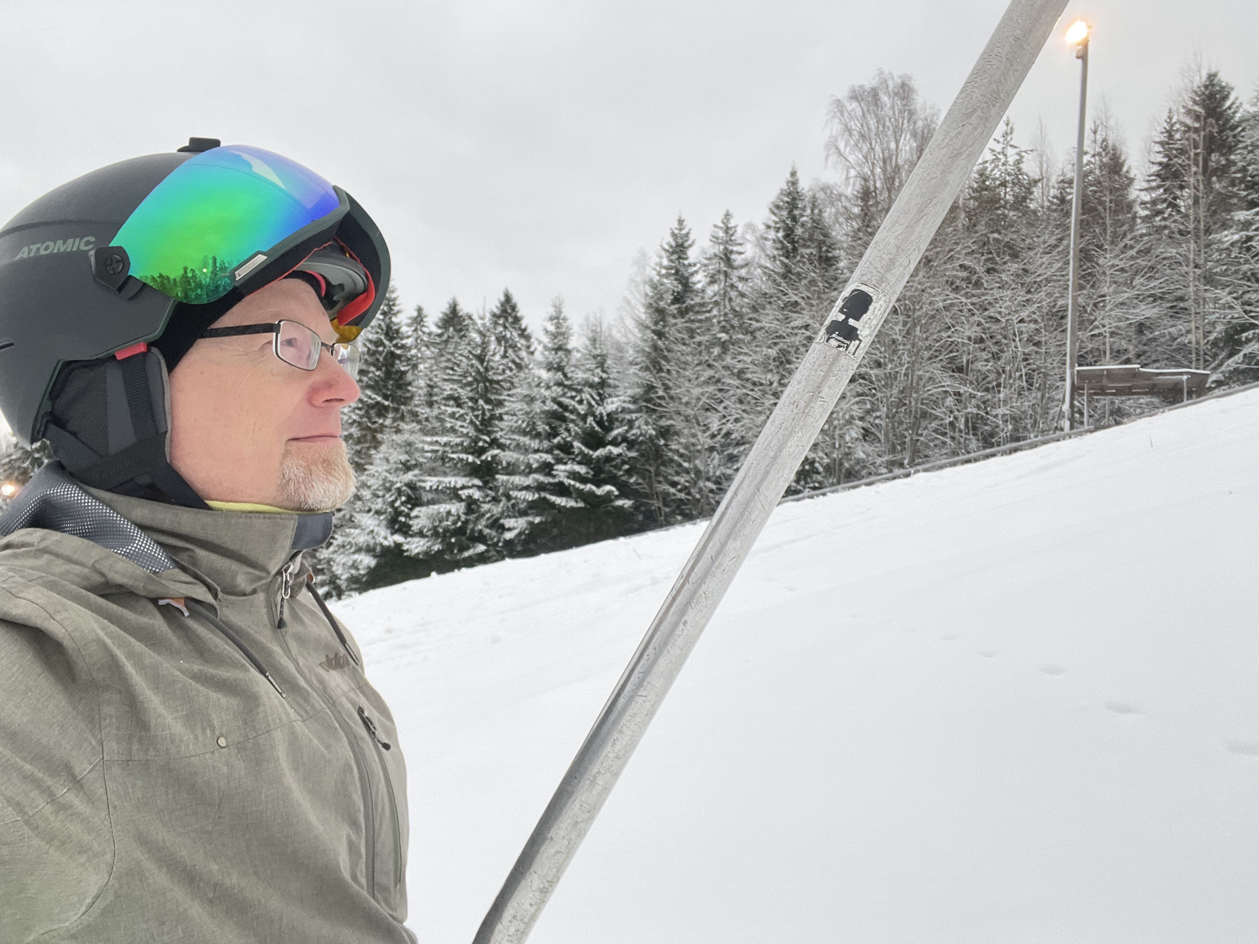 My November and December ski outings werer brief visits to Vihti- first one to open in my region - and Kauniainen- my local hill, opened today Dec 7th. Brief visits because still recovering from post-C additional health issues. Vihti was foggy snow spot in otherwise snowless muddy darkness, reported in the other article. Kauniainen was wintery as colder conditions have returned to the area. Both opened with help of stored snow from last year.
