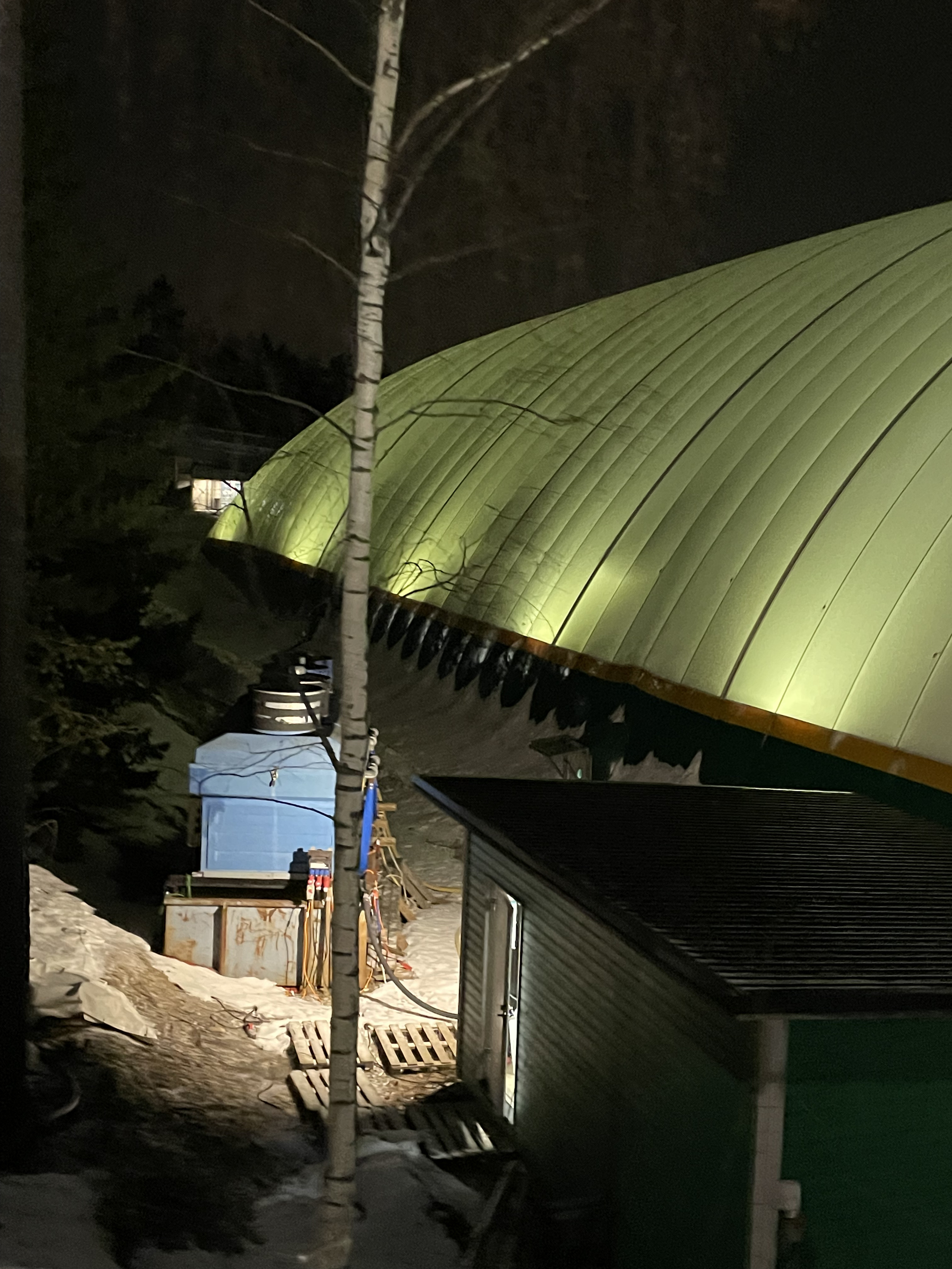 I did not know this, but it turns out the Kauniainen installed cooling towers to assist in snow-making. See the picture below. For more information why this works, read this.